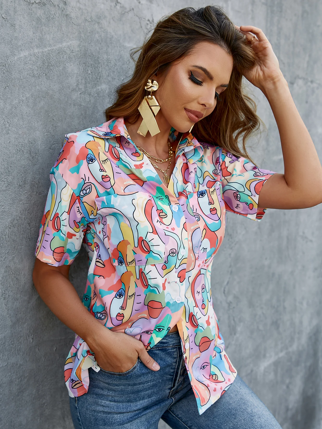 victoria’s vogue High street color block women blouse shirt Y2k vintage pocket blouse sation blouse Casual holiday female top shirt 2022