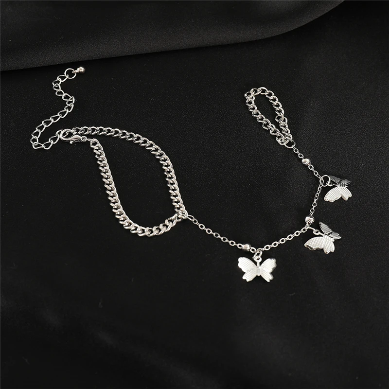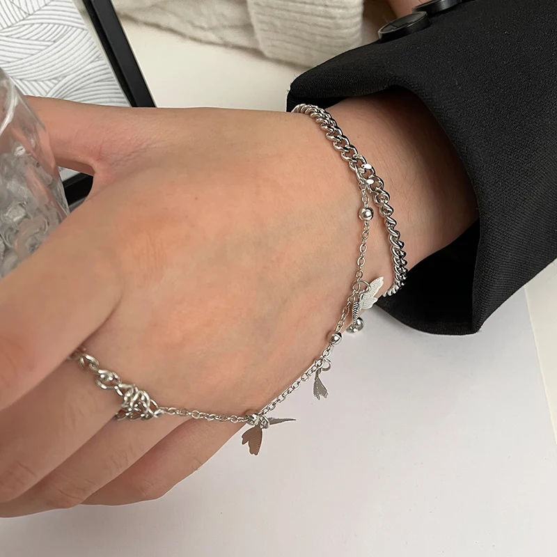 victoria’s vogue Hiphop Silver Color Chain Ring Punk Butterfly Rings for Women Party Jewelry Gift