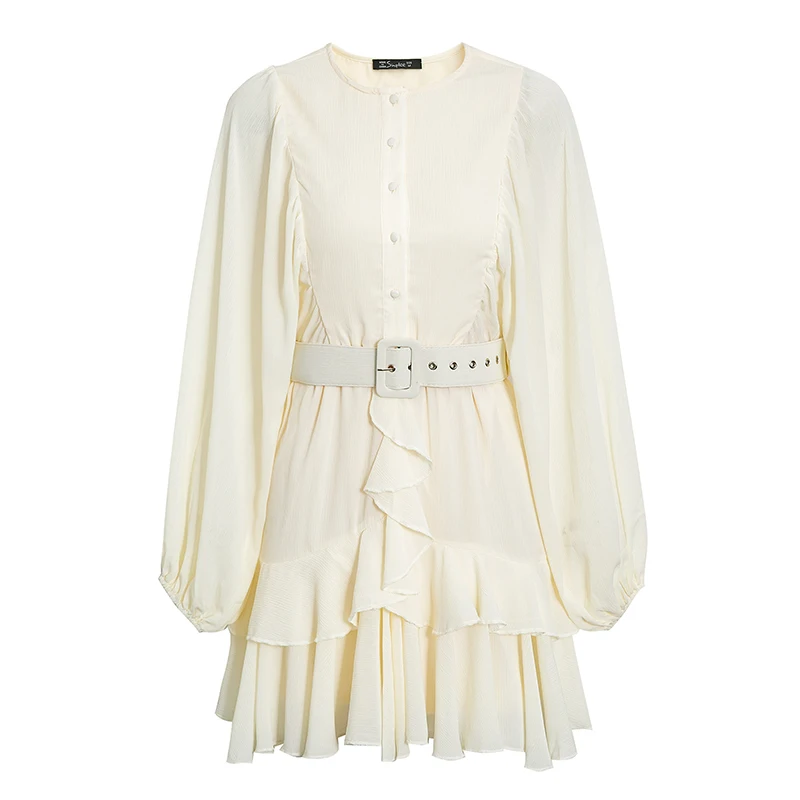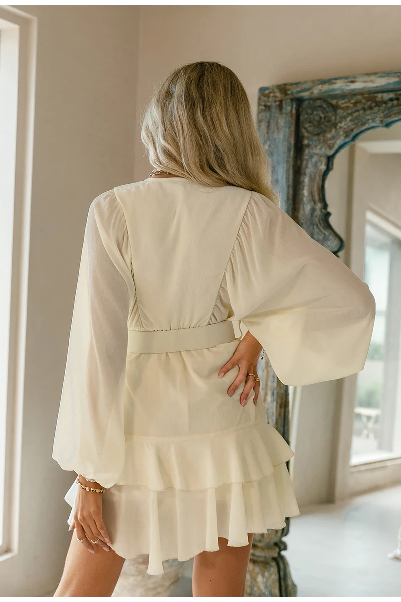victoria’s vogue Holiday A-line chiffon ruffled mini dress women summer Boho solid long batwing sleeve dress women elastic waist vestidos