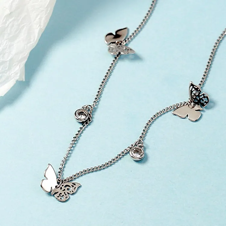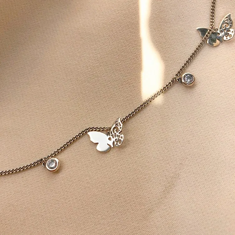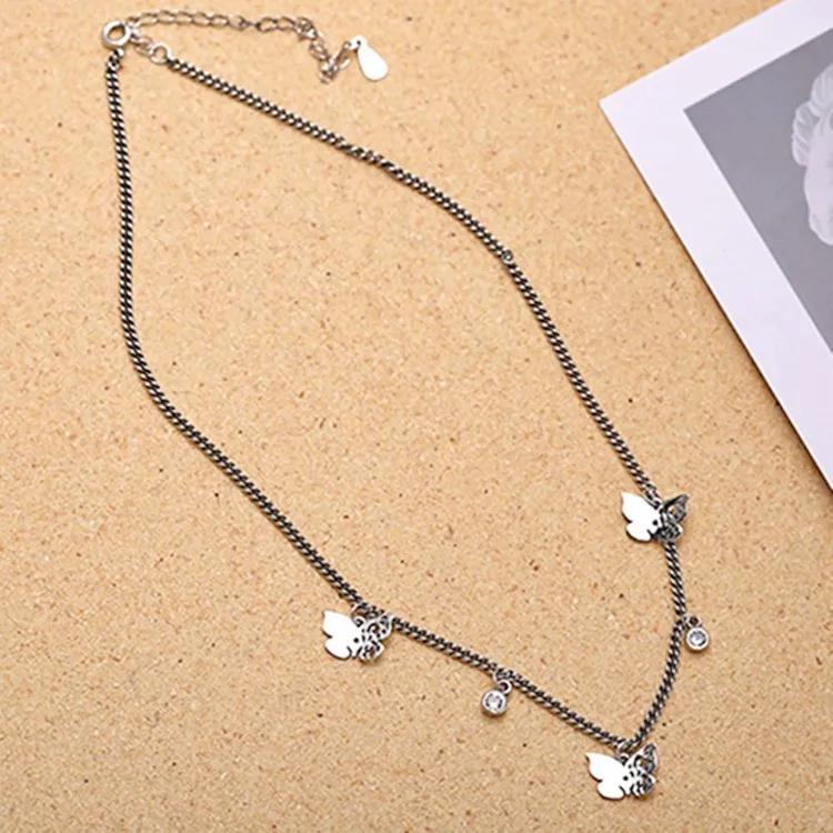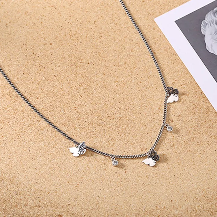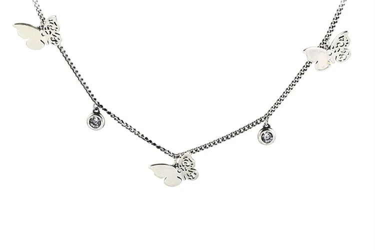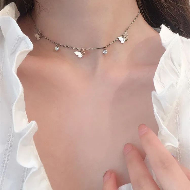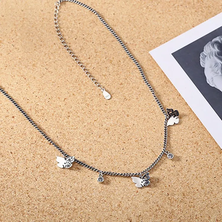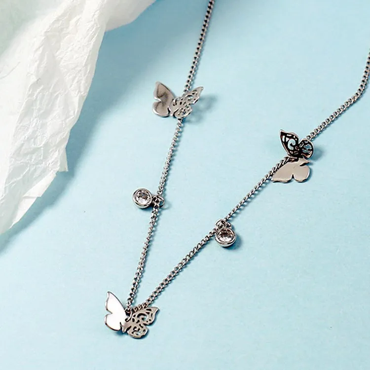 Victoria’s Vogue Hollow Butterfly Female Simple Temperament 925 Sterling Silver Jewelry Inlaid Zircon Clavicle Chain Retro Pendant Necklaces