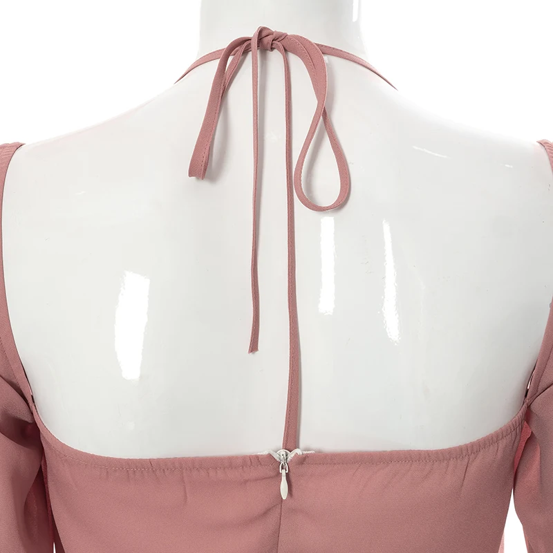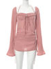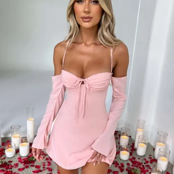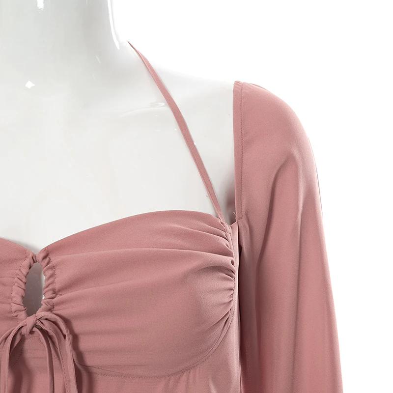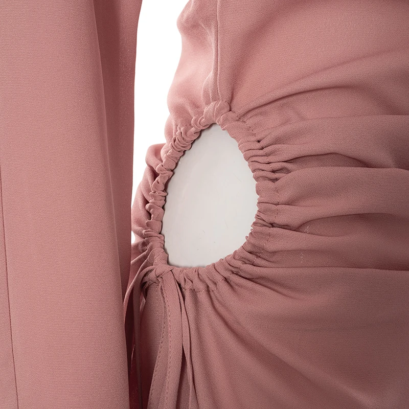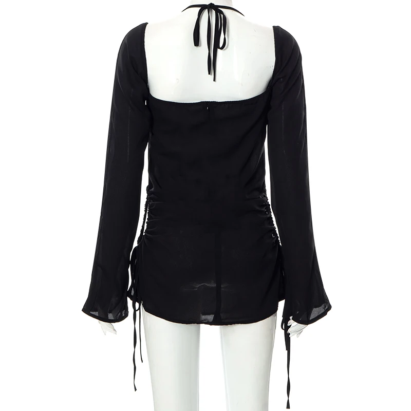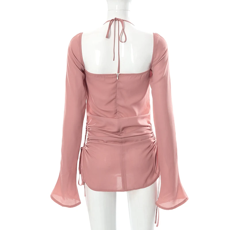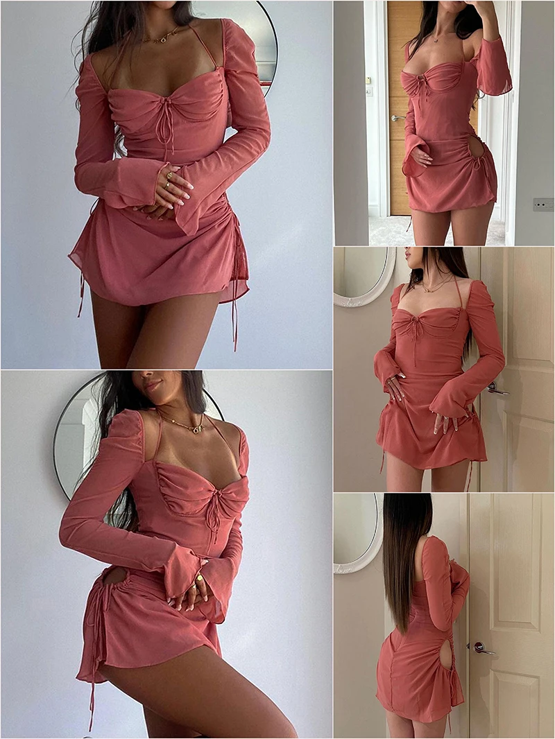 victoria’s vogue Hollow Out Ruched Dress Women 2022 Spring Sexy Slim Flare Sleeve Female Clothing Solid Backless Drawstring Dress Mini
