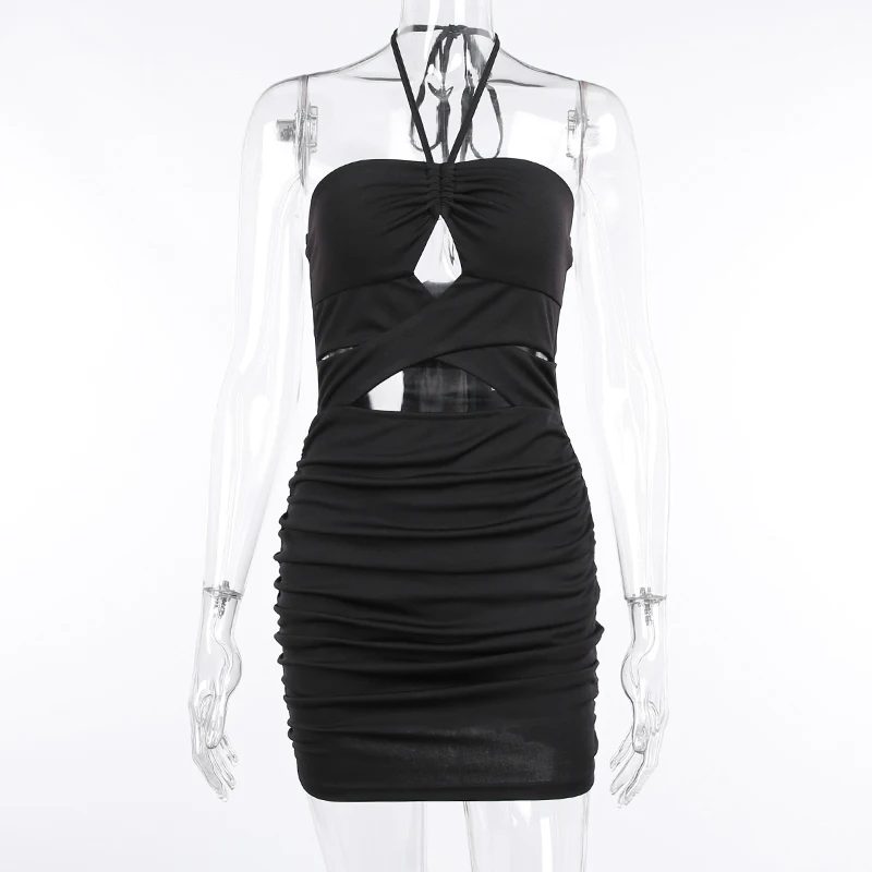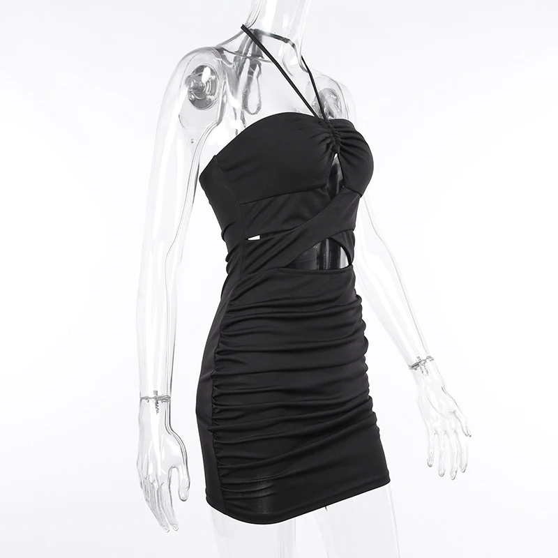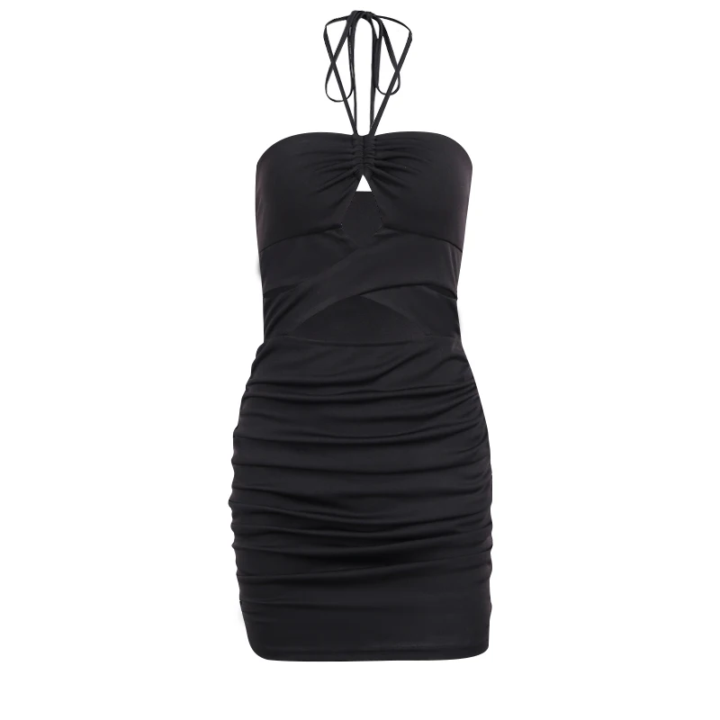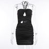 victoria’s vogue Hollow Out Sexy Women’s Mini Dress Halter Shirring Sleeveless Summer Bodycon Fashion Party Dress Soft Female Dress2021