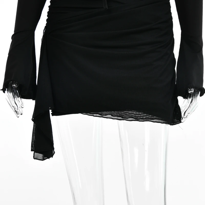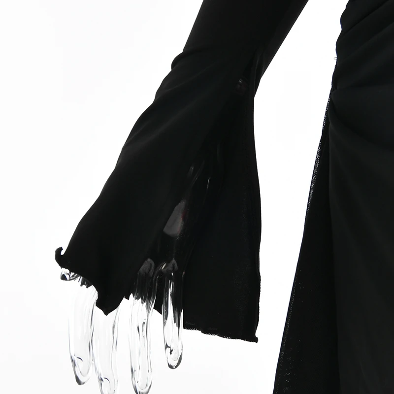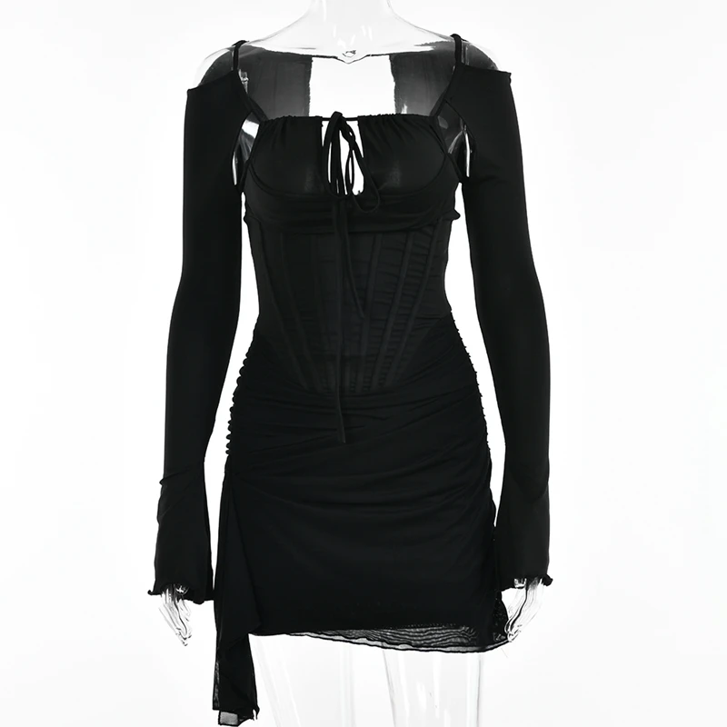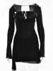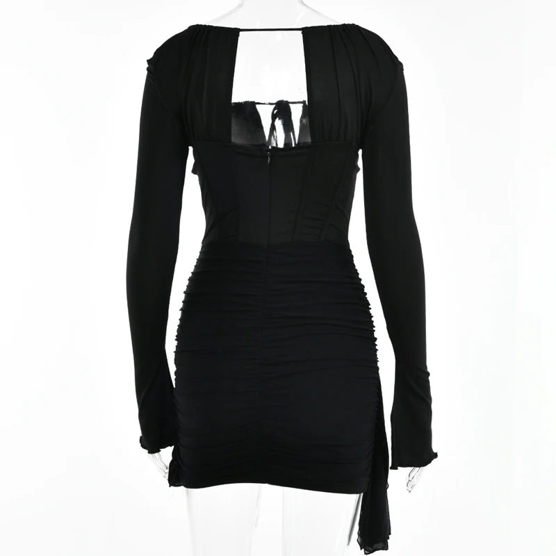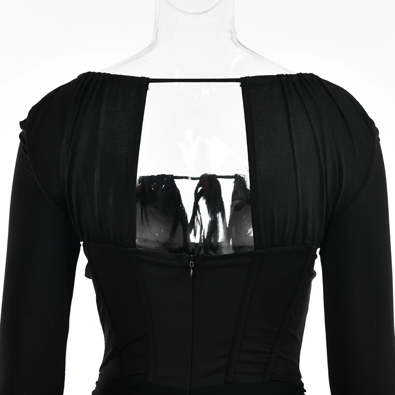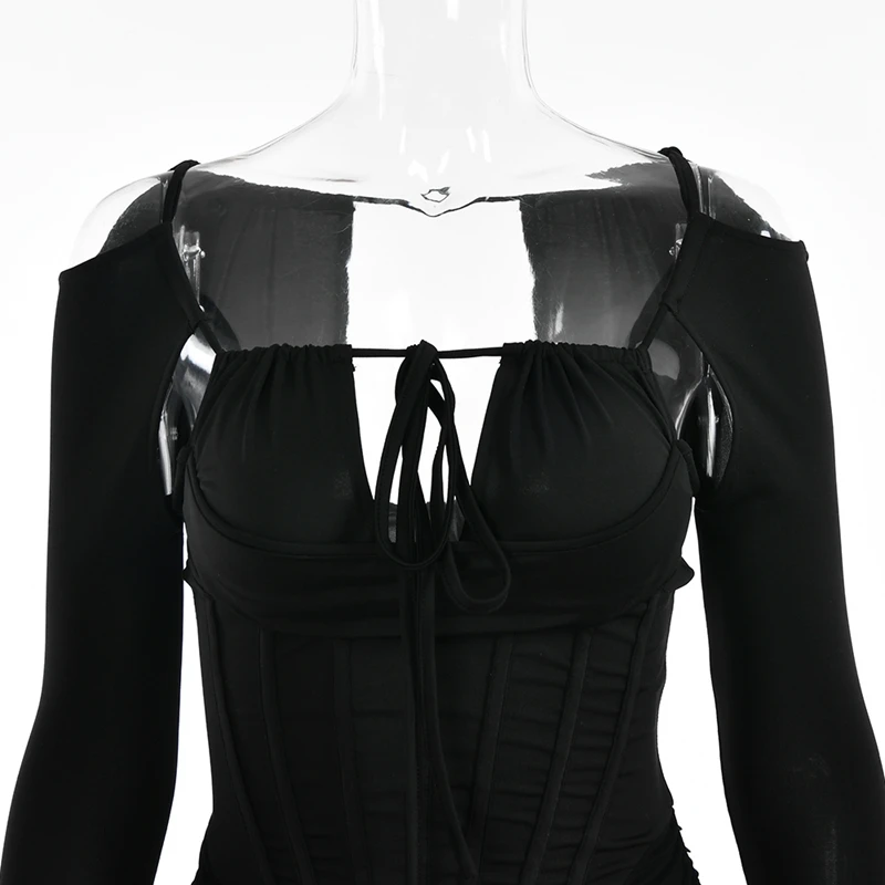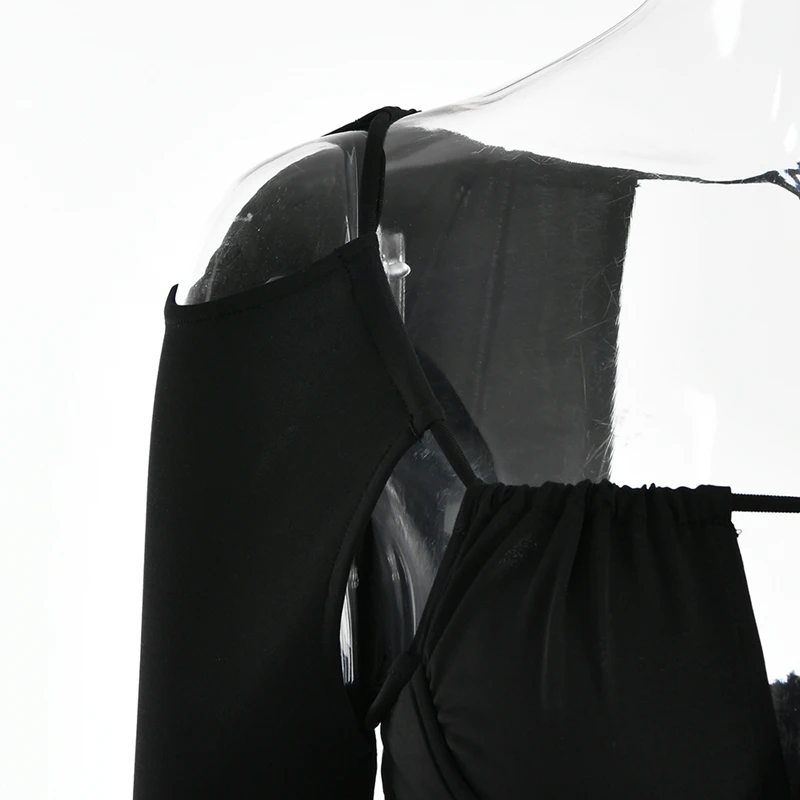 victoria’s vogue Hollow Out Spaghetti Strap Dresses Women Sexy High Waist Long Sleeve Party Outfits Solid Backless Black Fishbone Dress