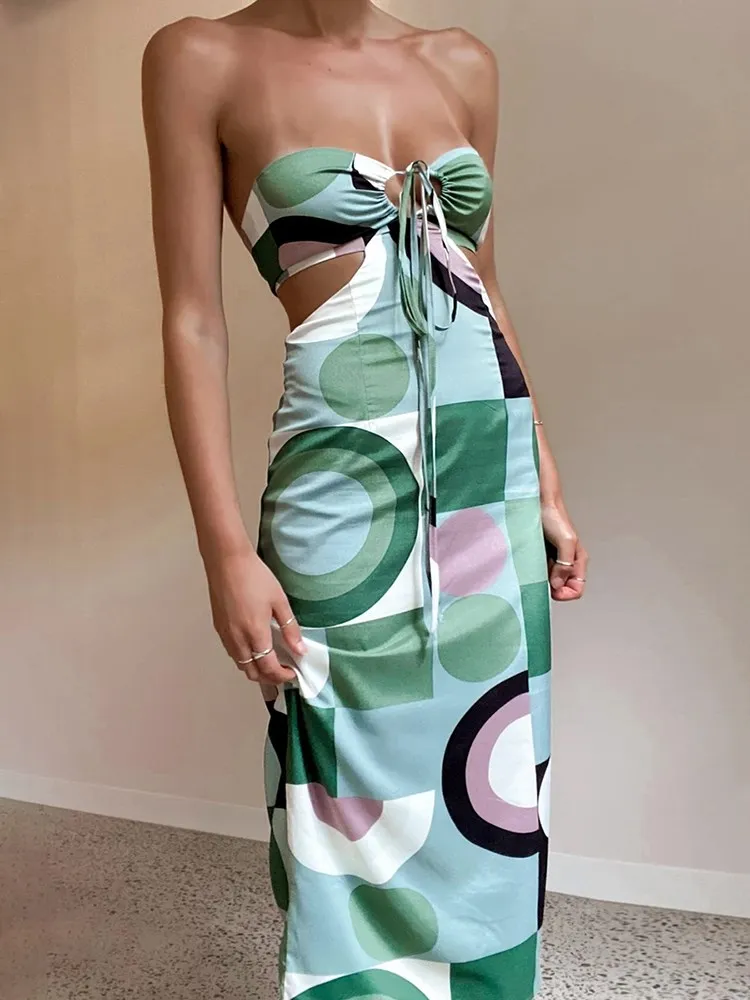 victoria’s vogue Hollow Out Women Plaid Print Midi Dress Backless Sleeveless Lace Up Bodycon Sexy Party Club Beach Street Chic Dresses
