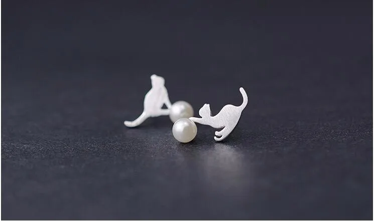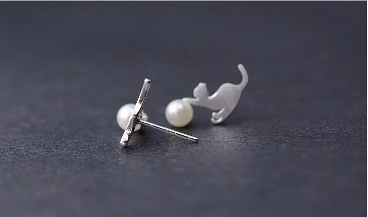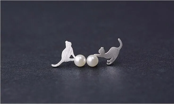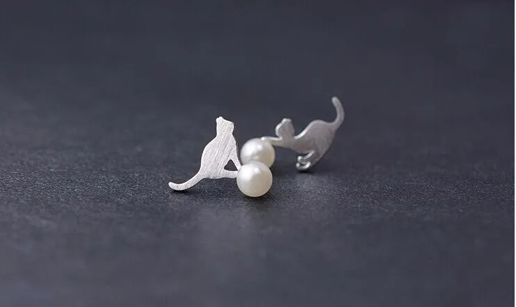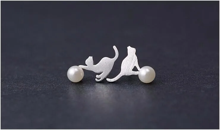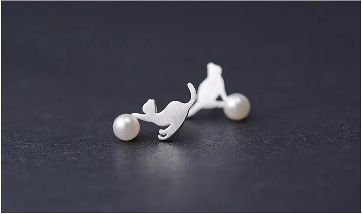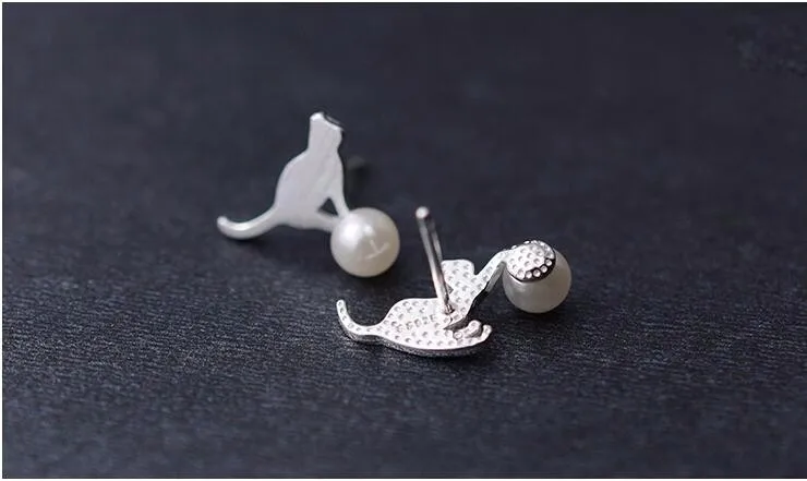 Victoria’s Vogue Hot Beautiful Distinguished Noble 925 Sterling Silver Jewelry Cute Animal Pearl Cat Female Earrings