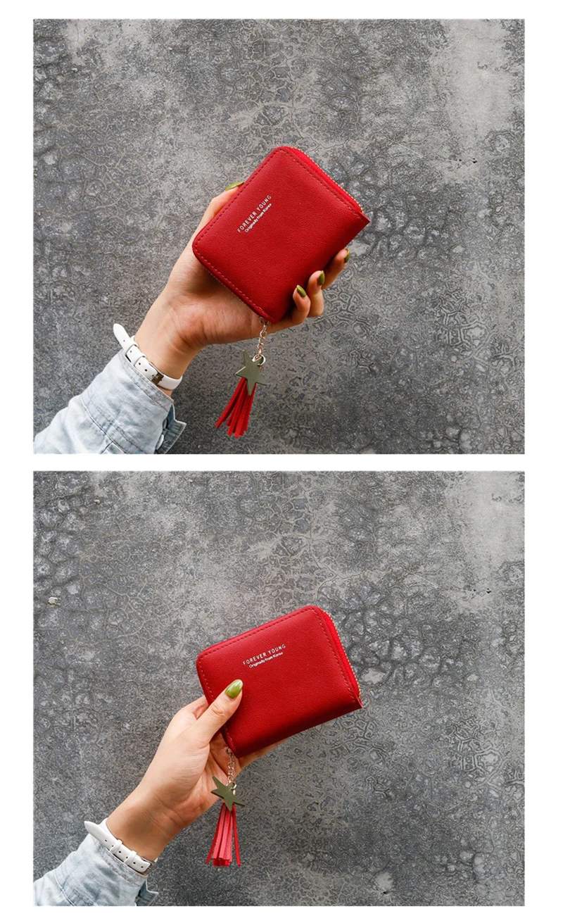 Victoria’s Vogue Hot Luxury Leather Wallet Cute Tassel Ladies Purse Card Holders Women Zipper Money Pocket Female Clutch Bag