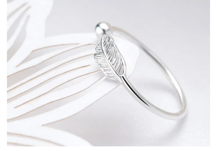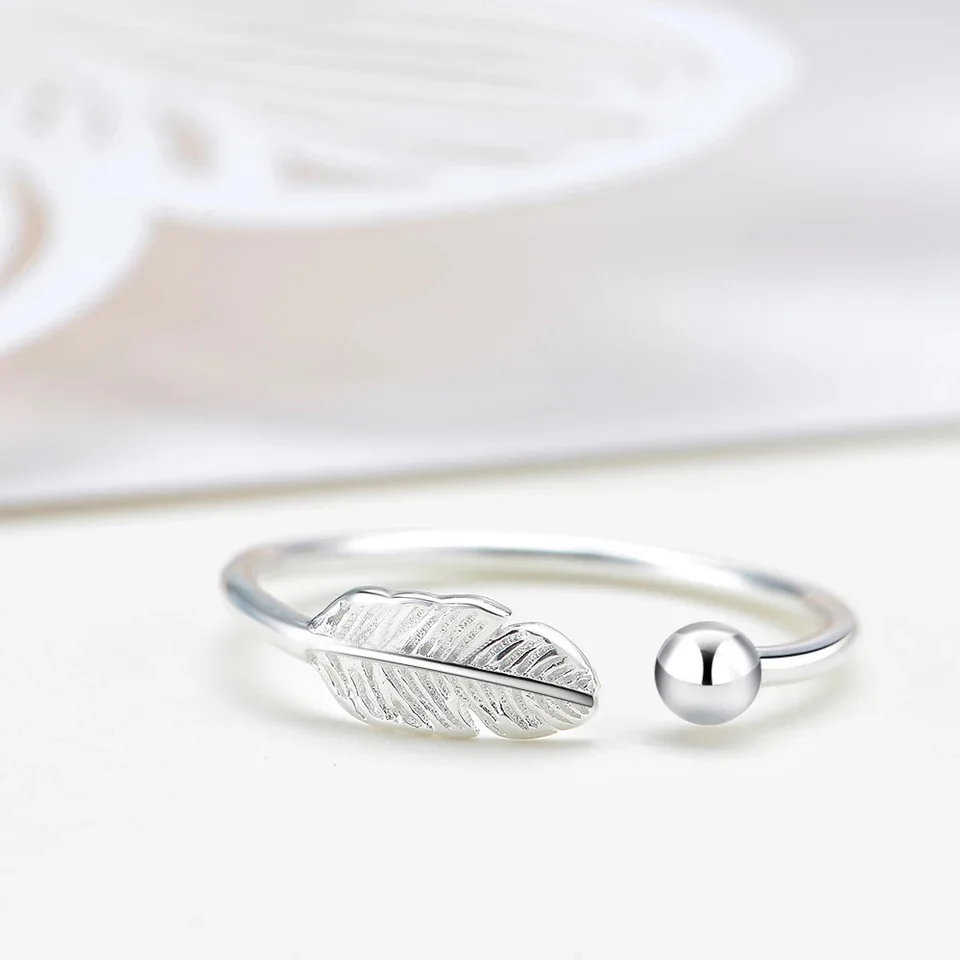 victoria’s vogue Hot Sale 925 Sterling Silver feather Ring For Women Original Fine Jewelry Gift Open Adjustable Finger Ring