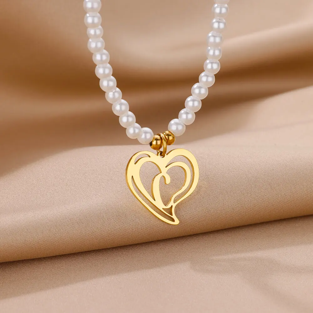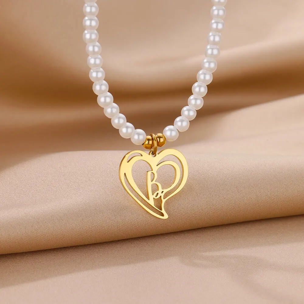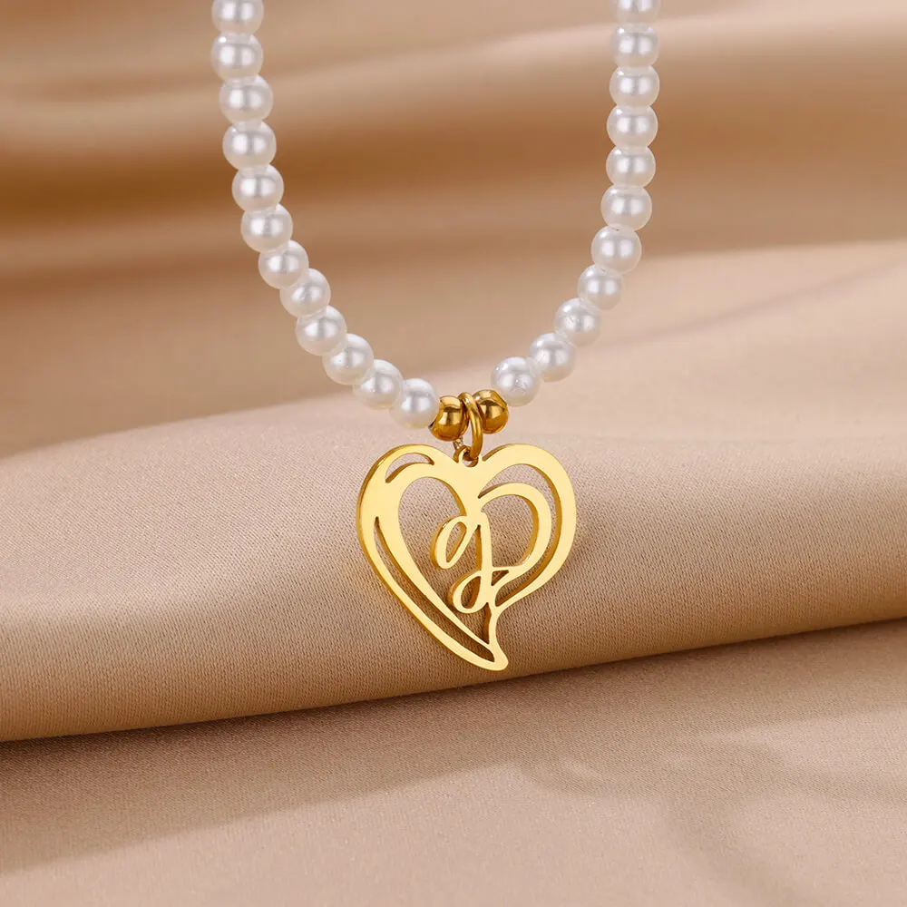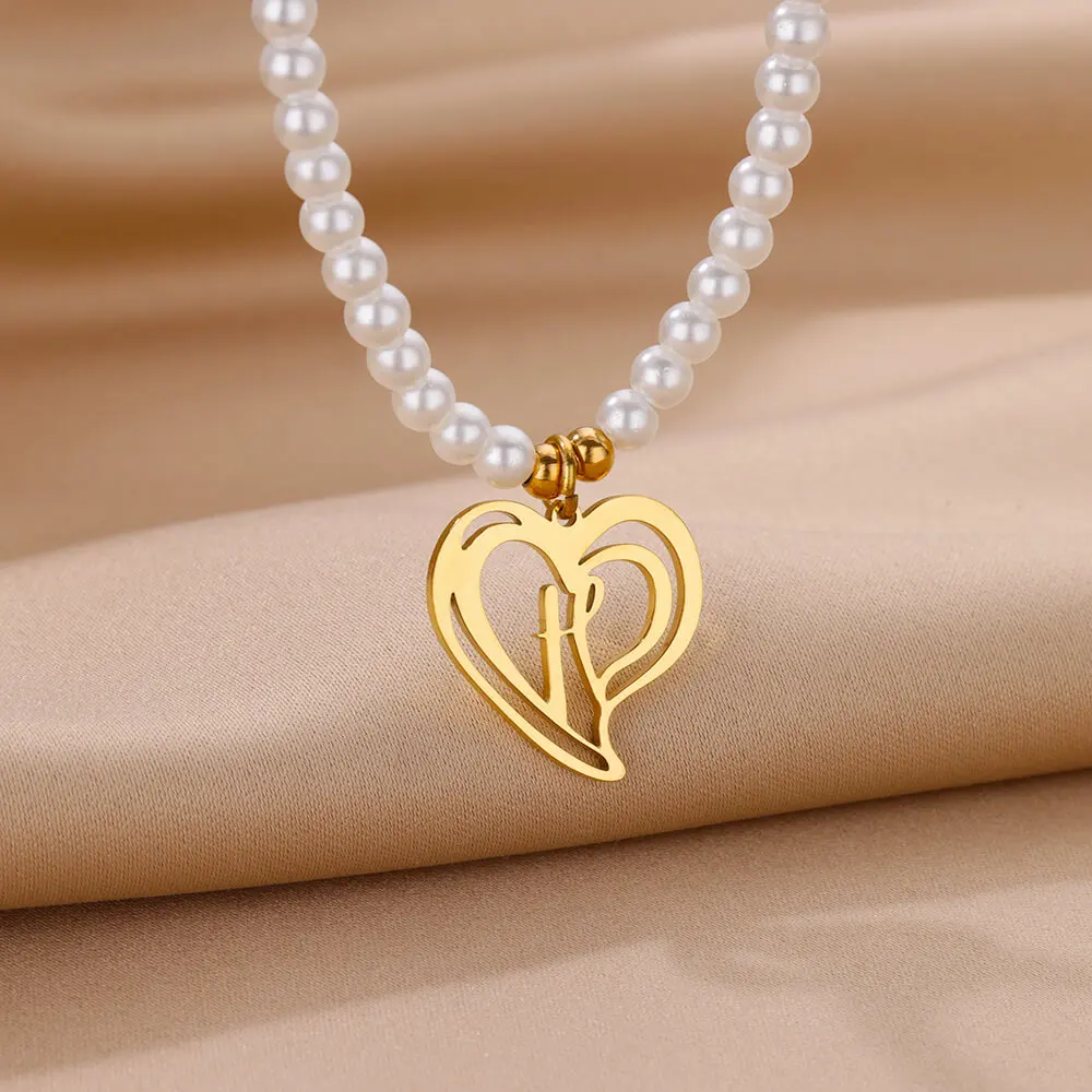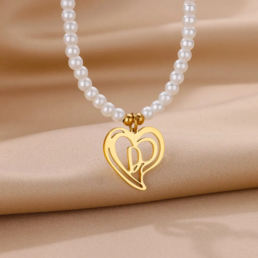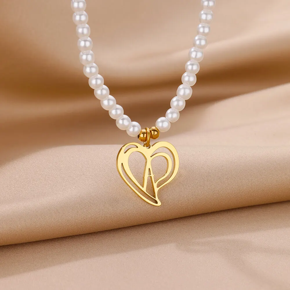 Victoria’s Vogue Imitation Pearl Alphabet Heart Pendant Necklaces For Women 26 Letter Choker Pearl Chain Wedding Jewelry Mother’s Day Gift 2024