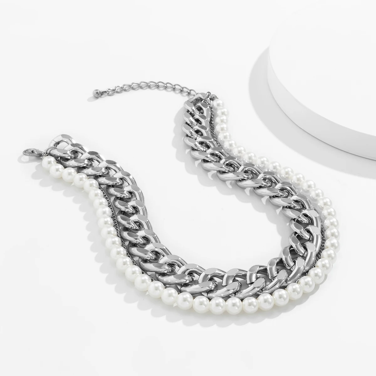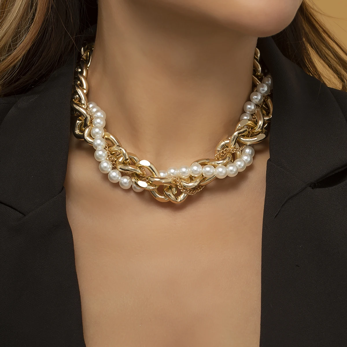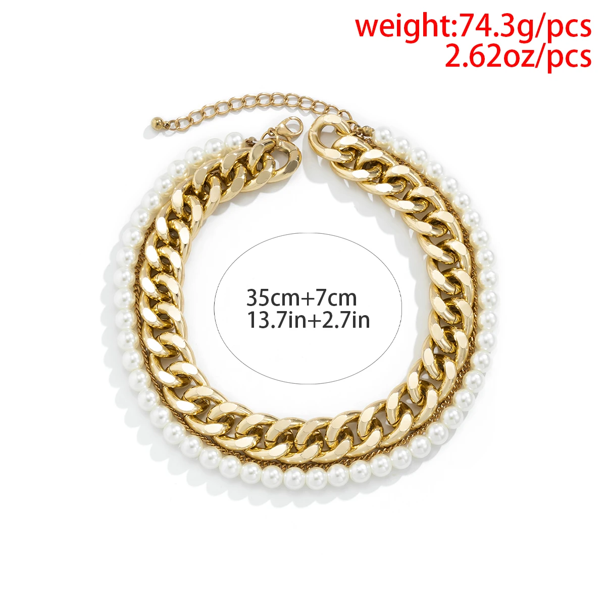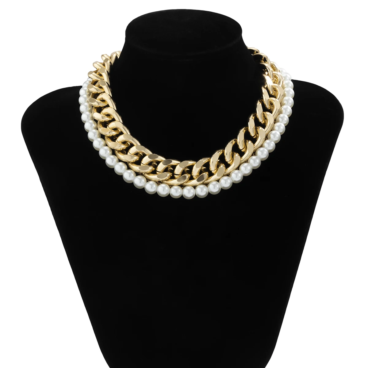 victoria’s vogue Imitation Pearl Chain Chunky Thick Choker Necklaces Women Heavy Metal Neck Necklaces Multi Layered Collier Jewelry