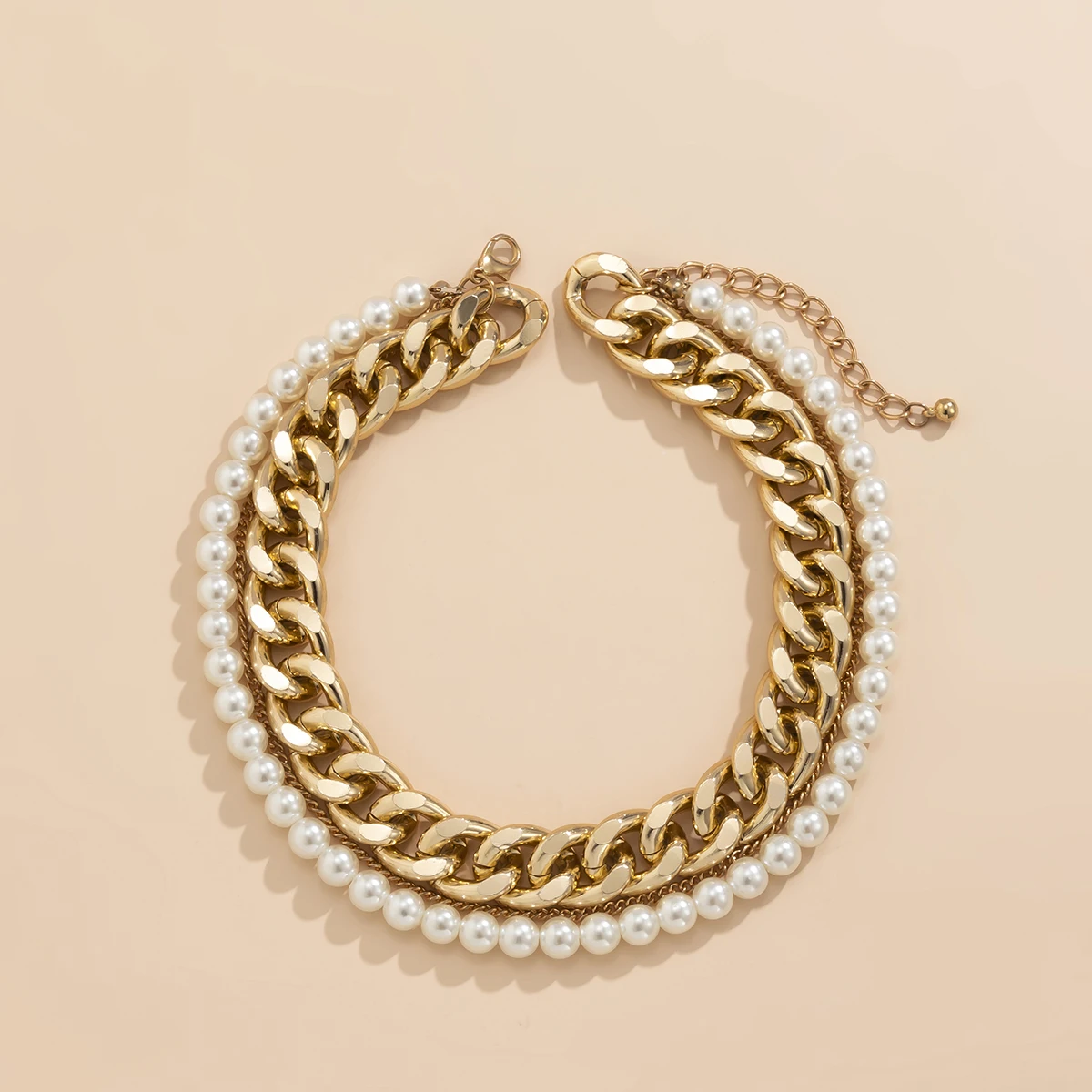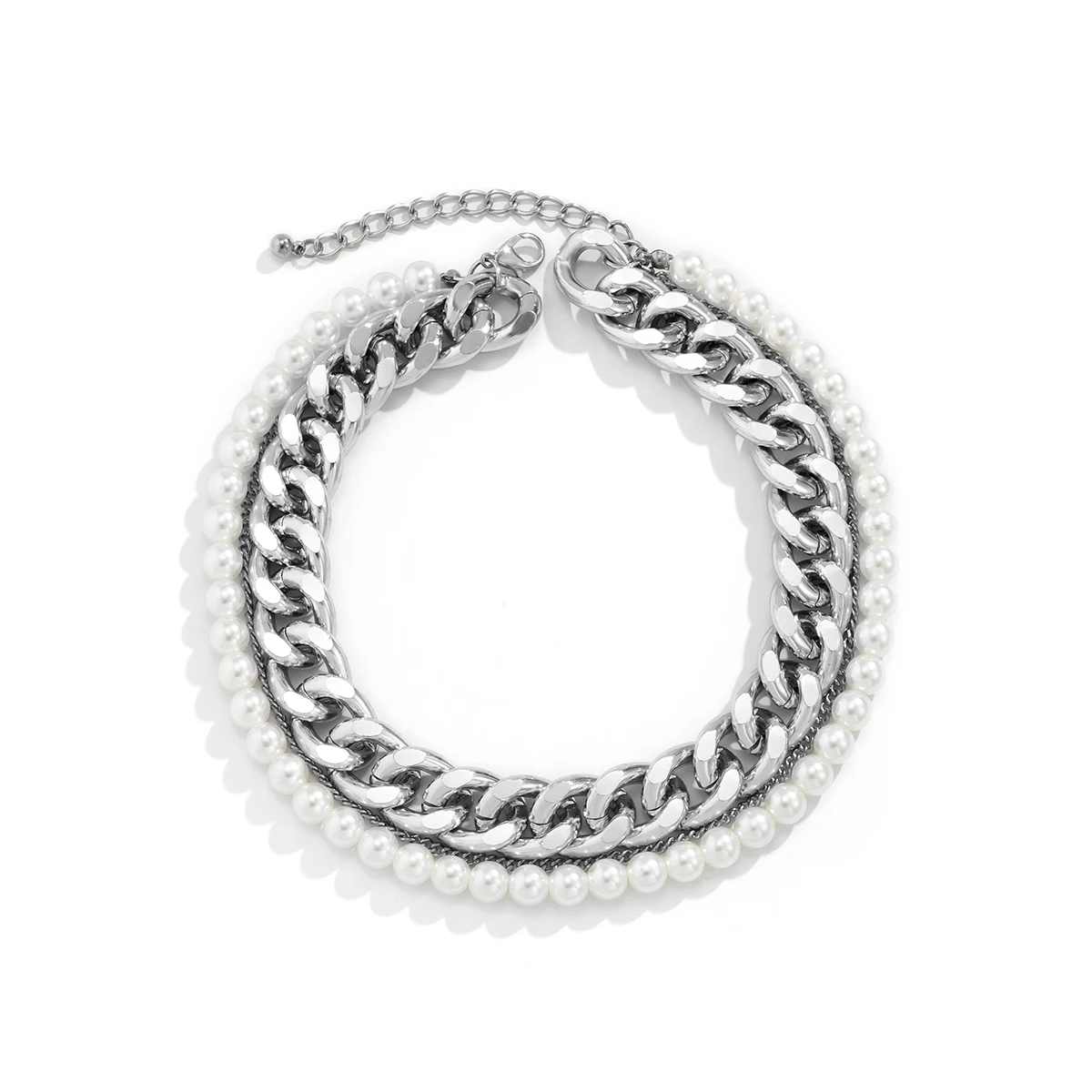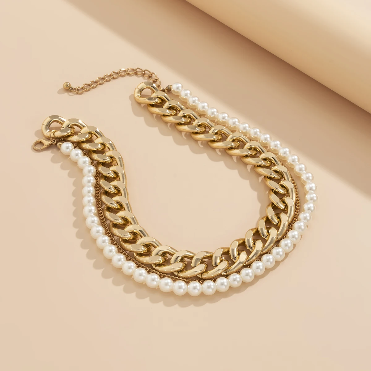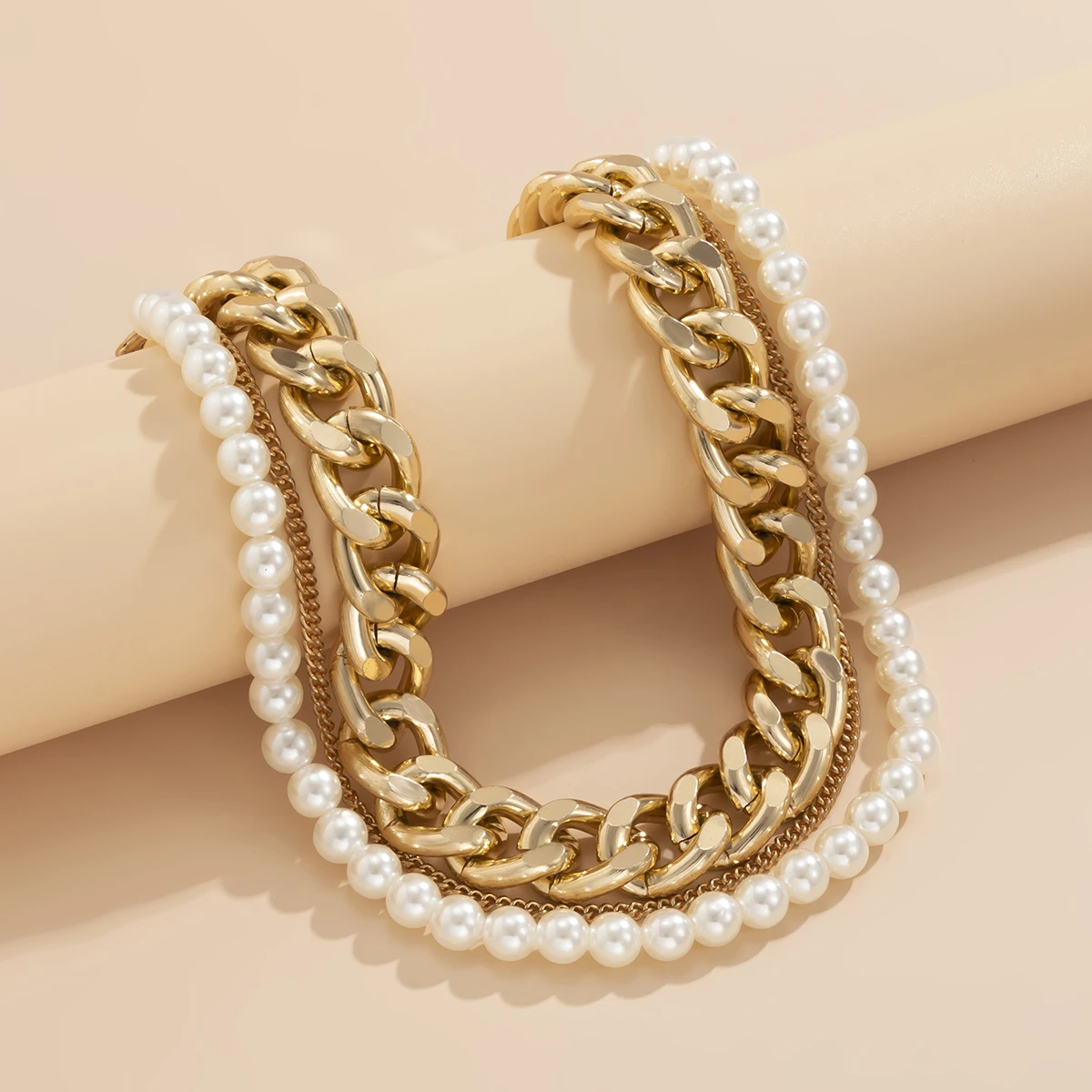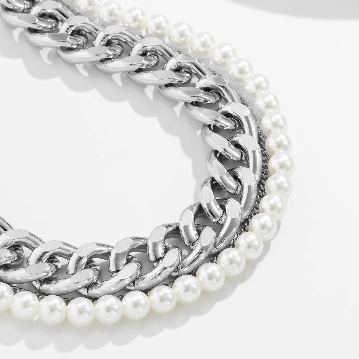 victoria’s vogue Imitation Pearl Chain Chunky Thick Choker Necklaces Women Heavy Metal Neck Necklaces Multi Layered Collier Jewelry