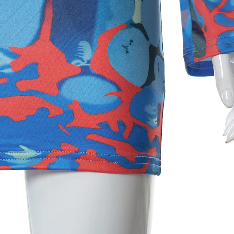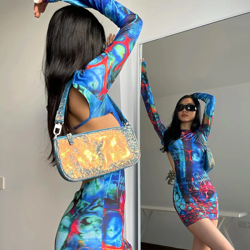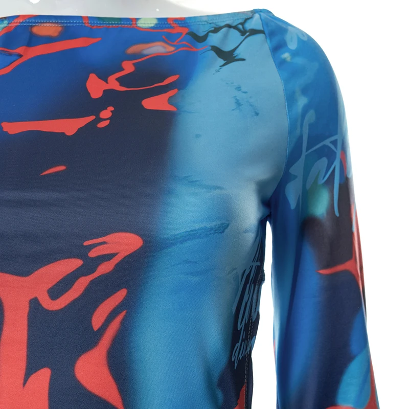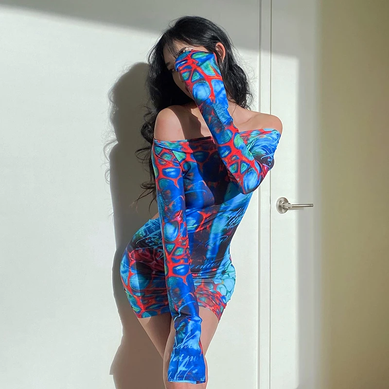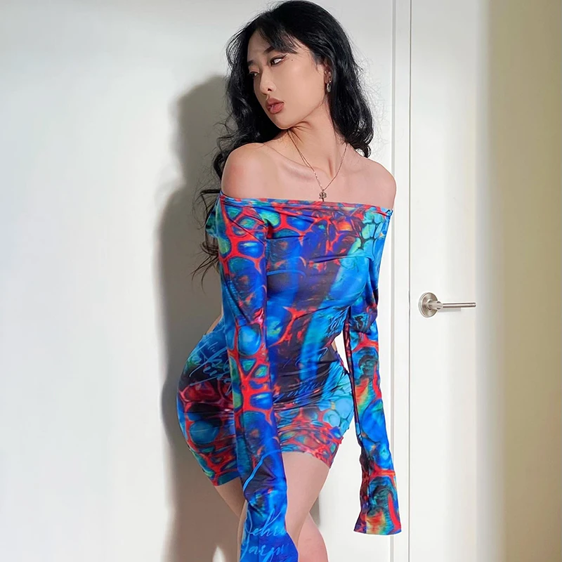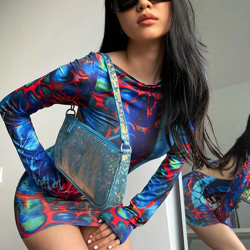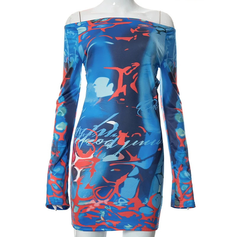 victoria’s vogue INS Open Back Long Sleeve Multicolor Printed Mini Dress Women Casual Comfortable Y2K