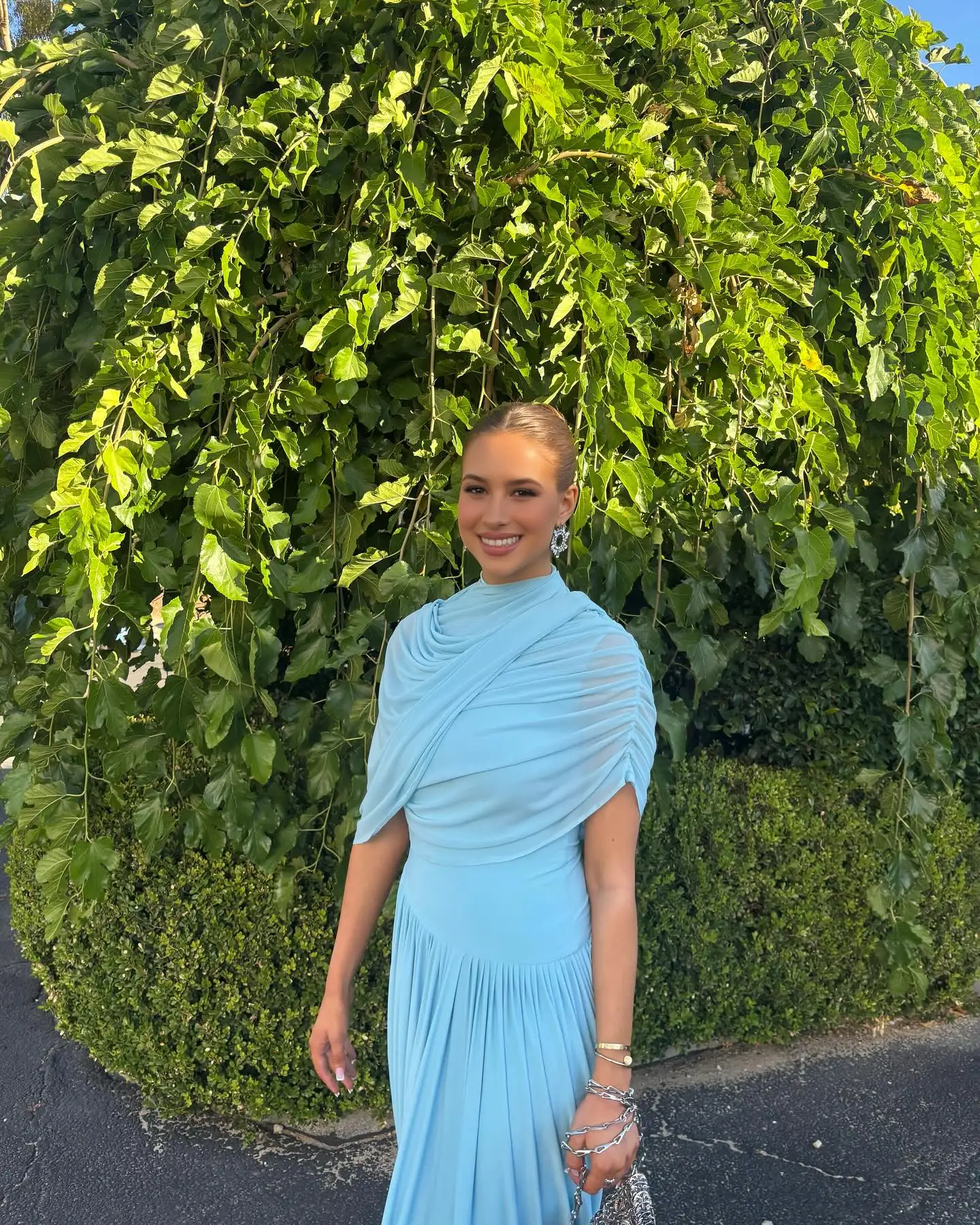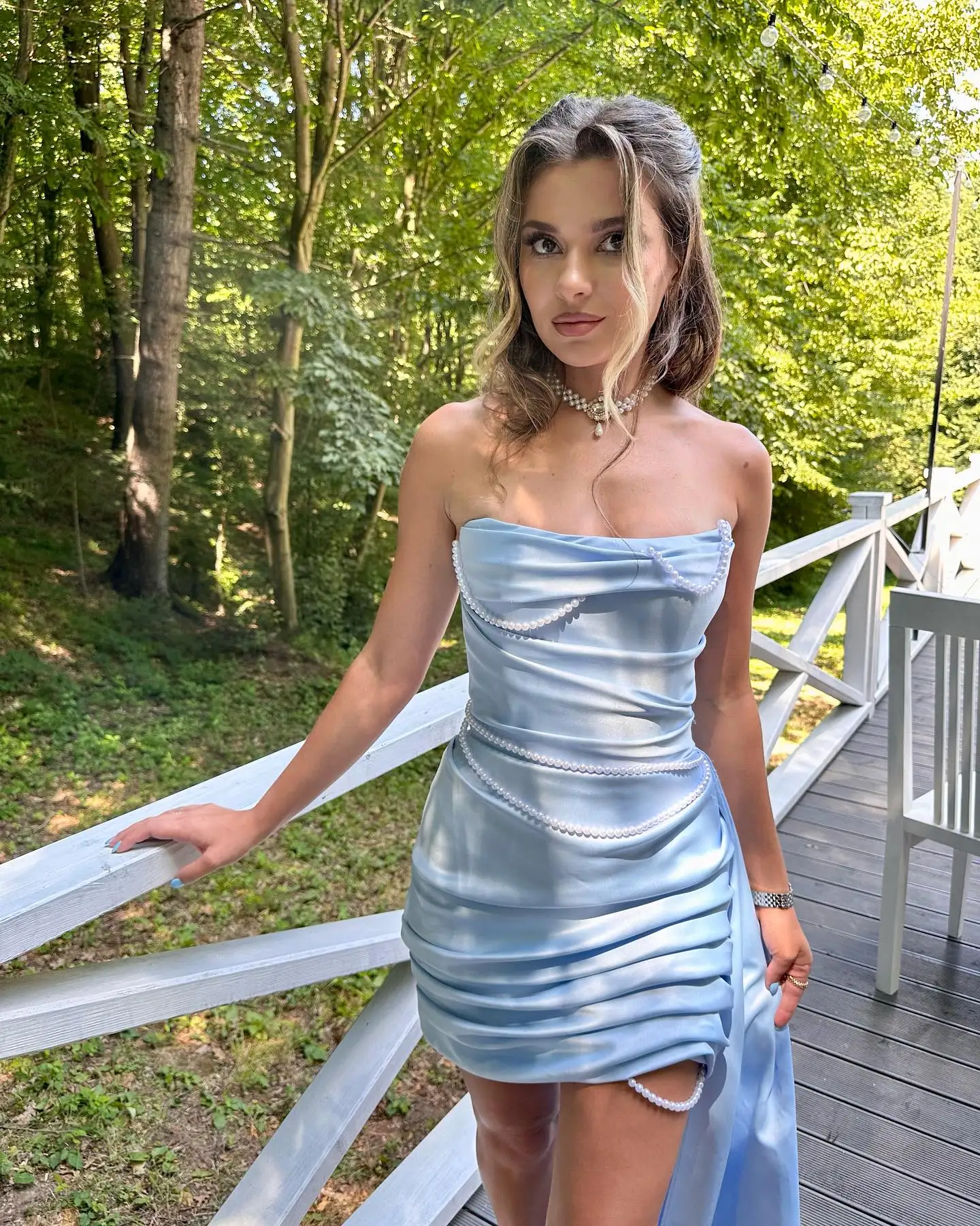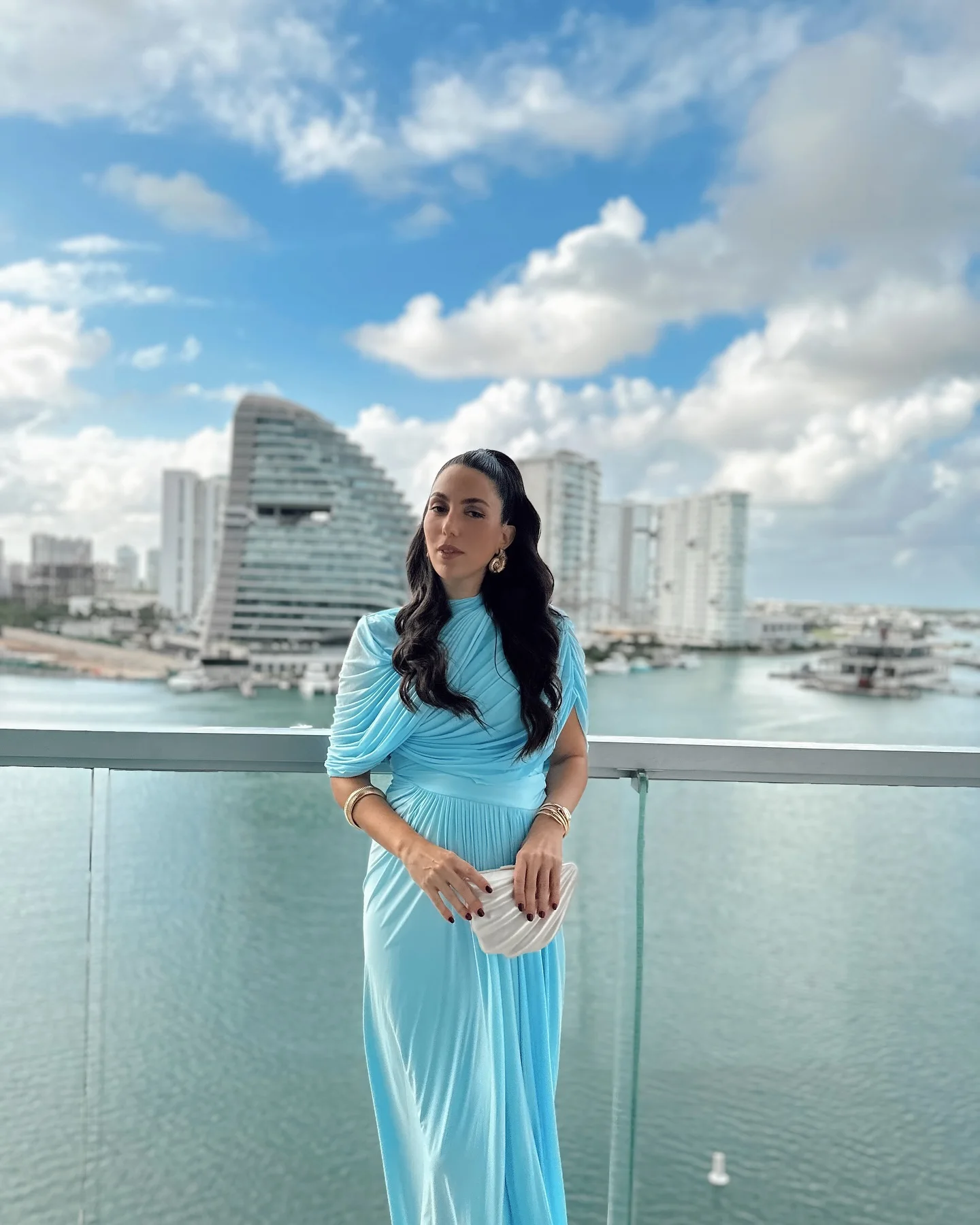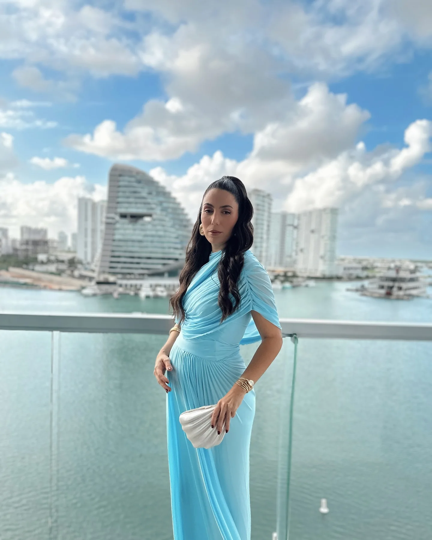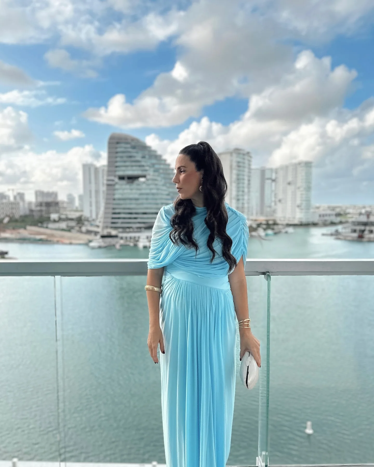 Victoria’s Vogue Irregular Shawl Blue Maxi Dress Women’s Fashion Turtleneck Slim Fit Pleated Vestidos 2025 New Lady Evening Party Robes Summer
