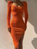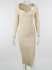 victoria’s vogue Knit Knee Length Dresses For Women Sexy Square Collar Elegant Long Sleeve Bodycon Side Split Chic Fall Fashion Dressi
