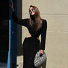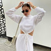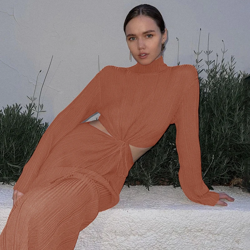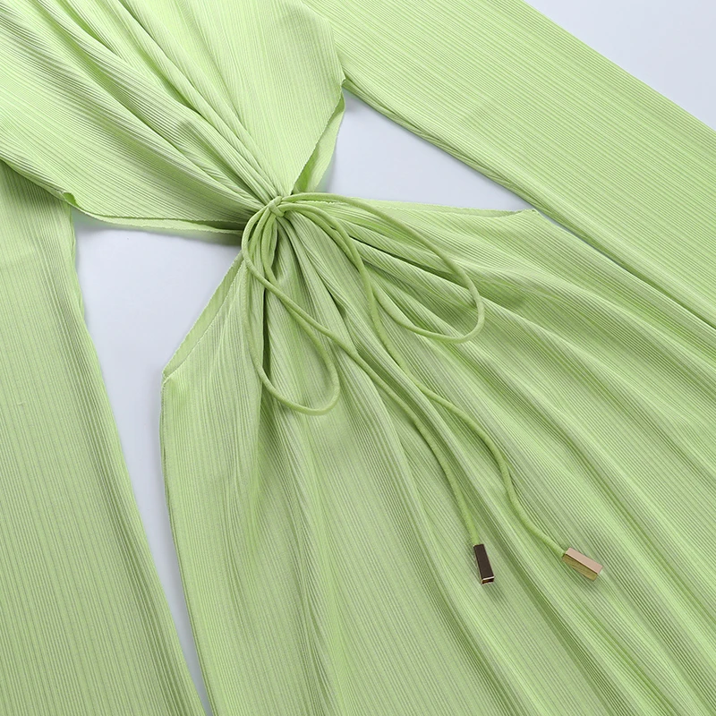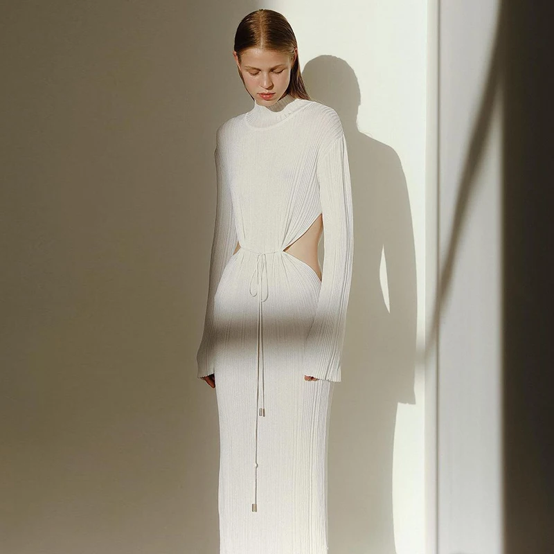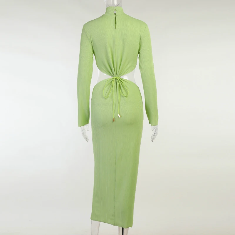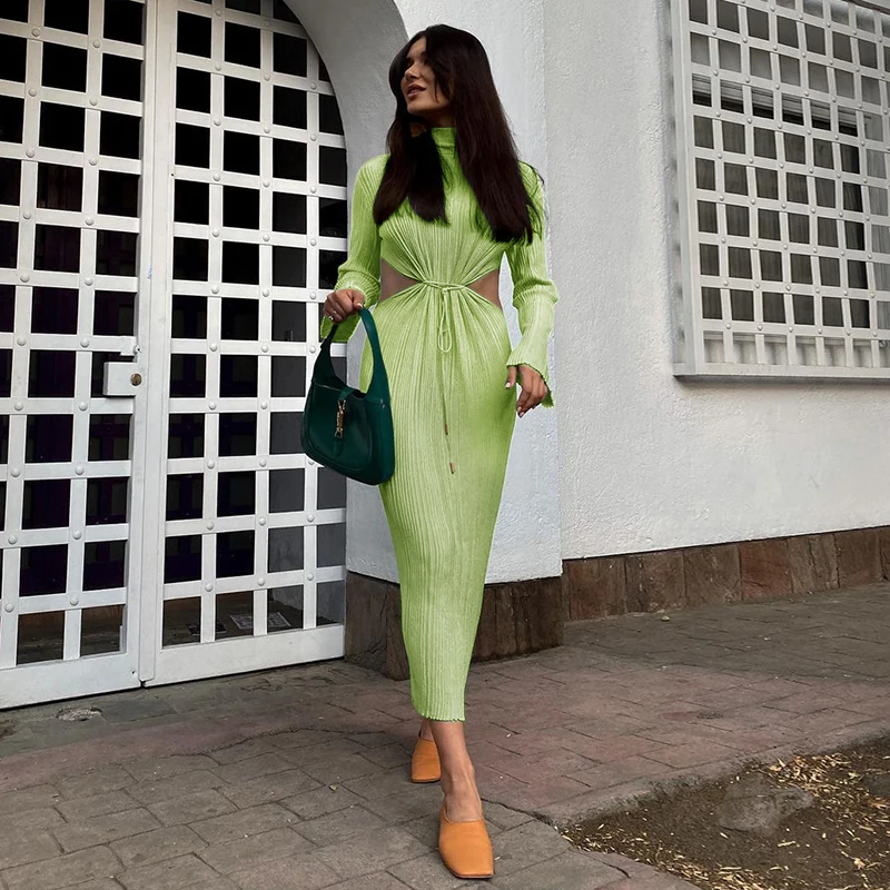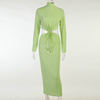 victoria’s vogue Knit Midi Woman Dresses Long Sleeve Cut Out Elegant Office Lady Twist Lace Up Turtleneck Sexy Dresses For Women