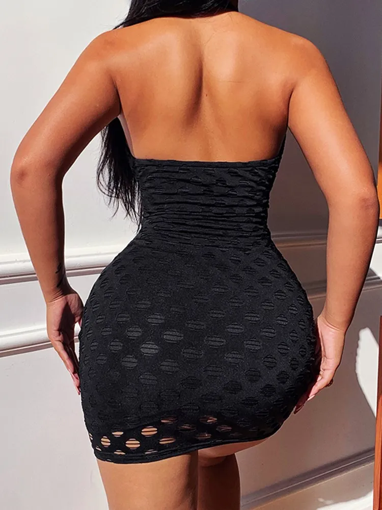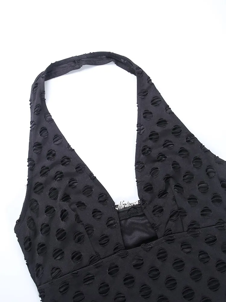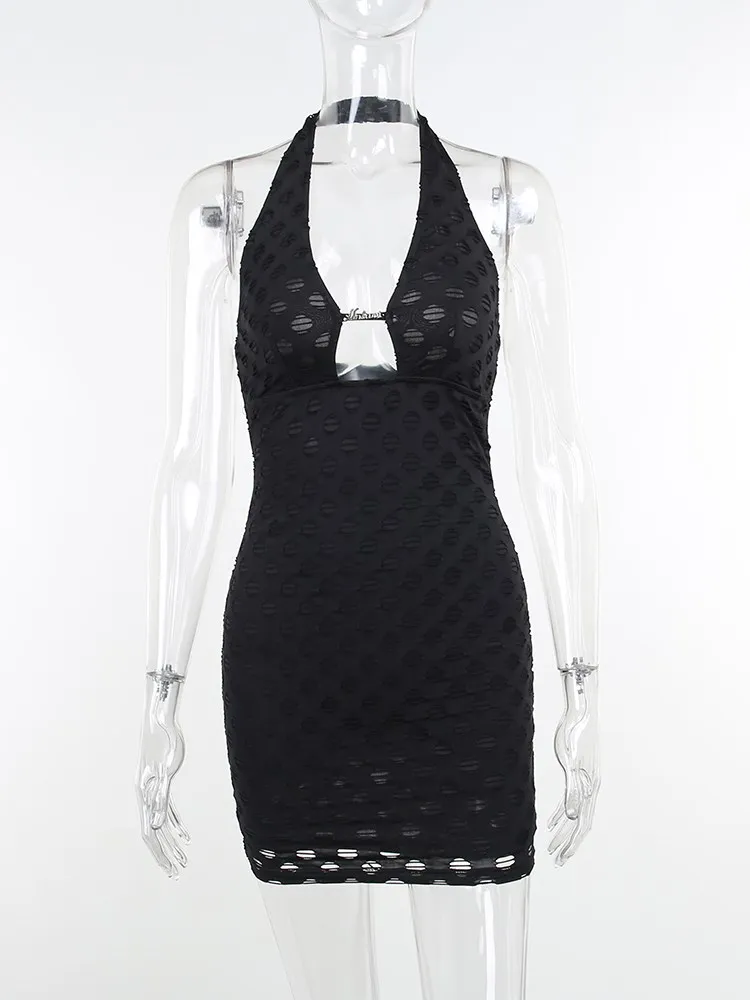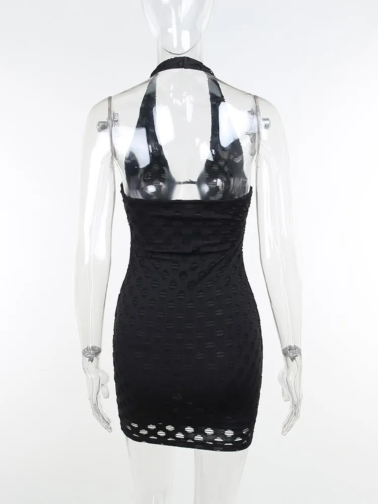 victoria’s vogue Knit Mini Dress Elegant Women Hollow Out Sleeveless Summer Bodycon Halter Sexy Fashion Backless Clubwear Fashion