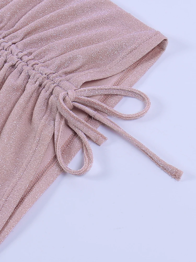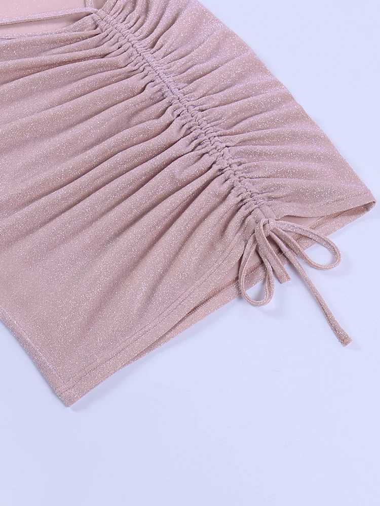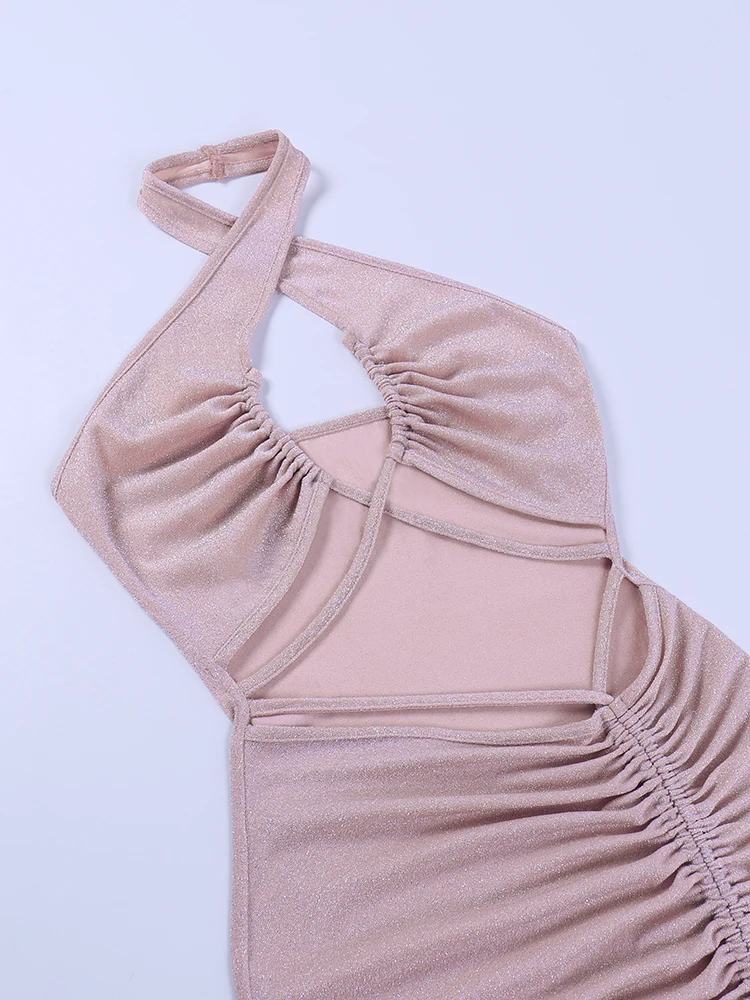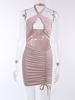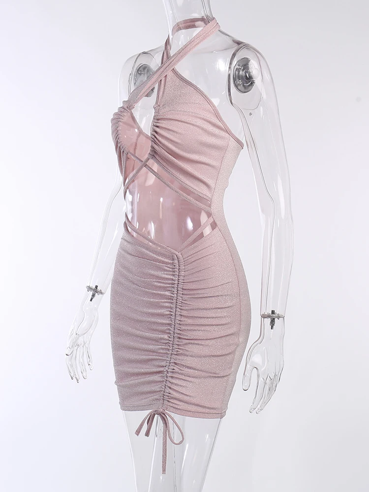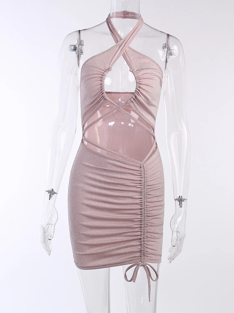 victoria’s vogue Knit Mini Dress Halter Folds Backless Sexy Hollow Out Drawstring Sleeveless Bodycon Party Fashion Clubwear Dress 2022