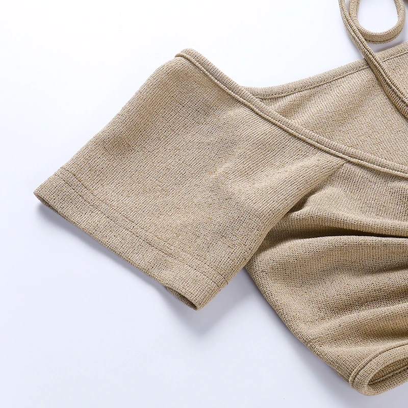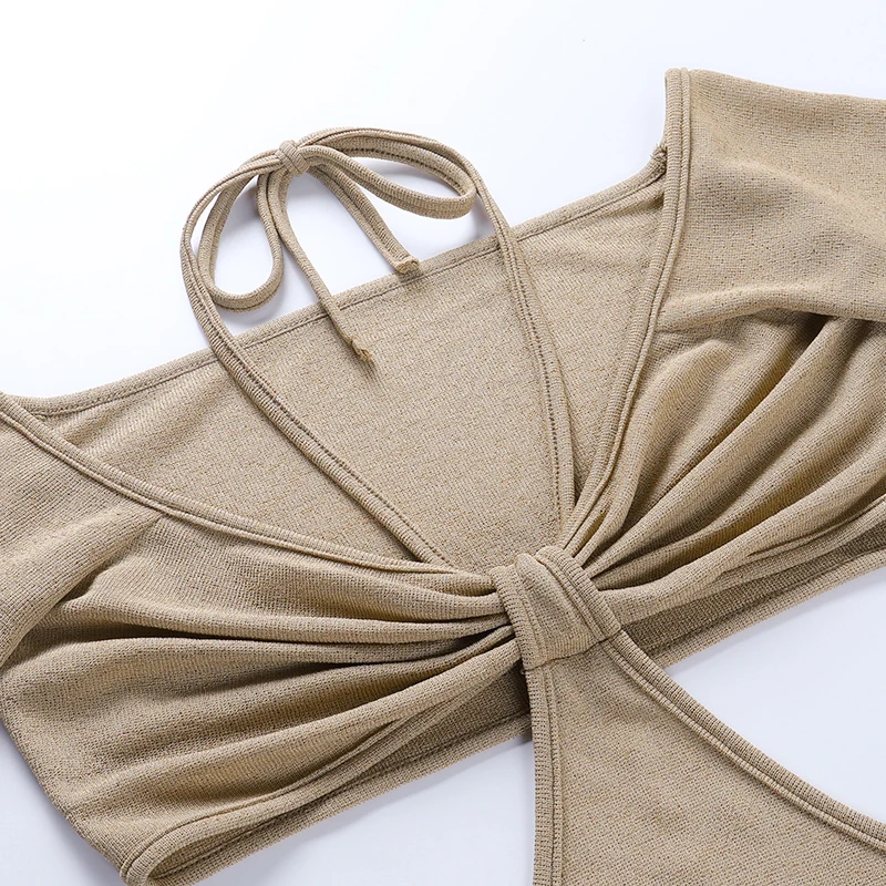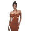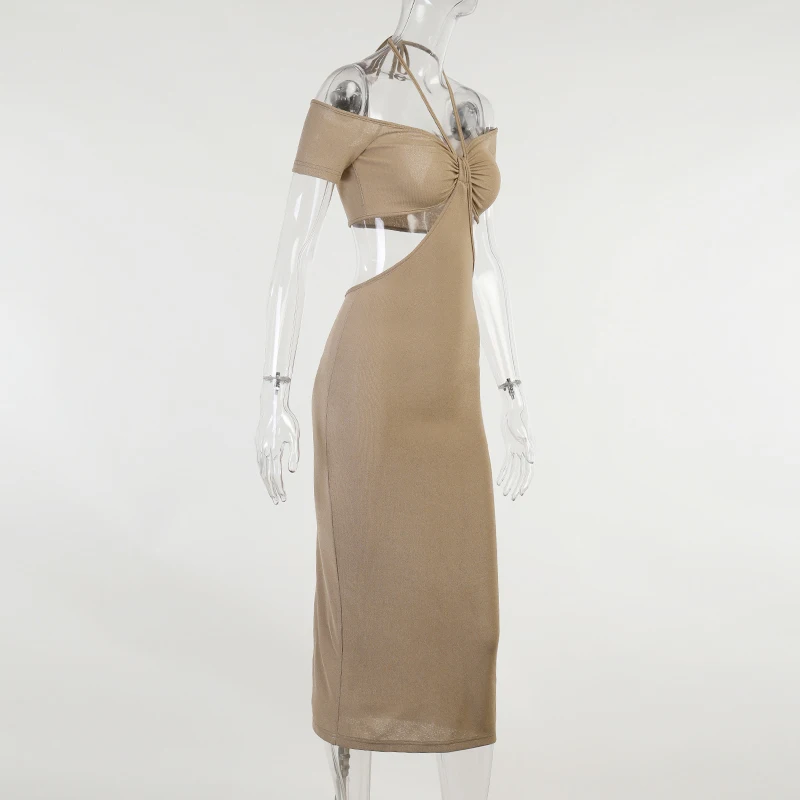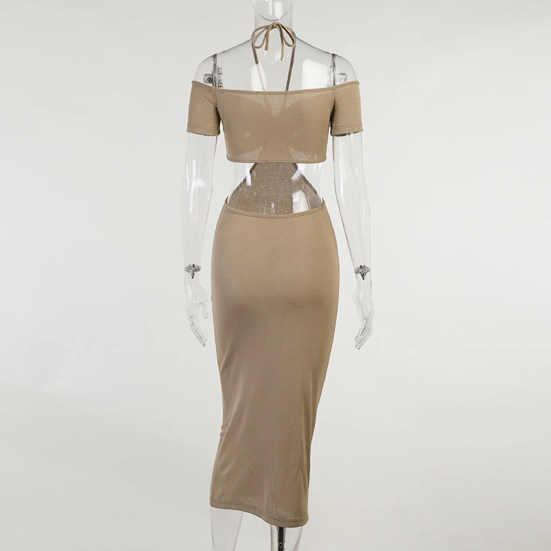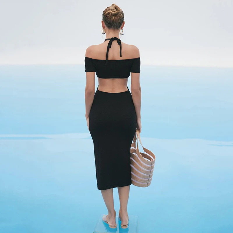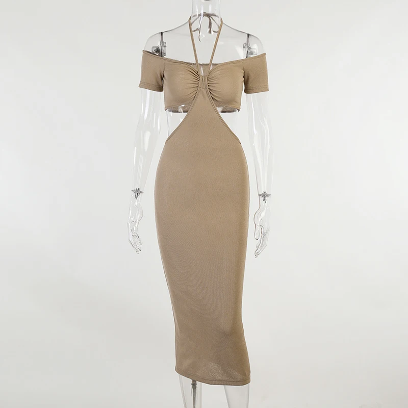 victoria’s vogue Knitted Hollow Out Short Sleeve Cami Dress Women Halter Sexy Dress Women Off Shulder Backless Midi Summer Dress 2021