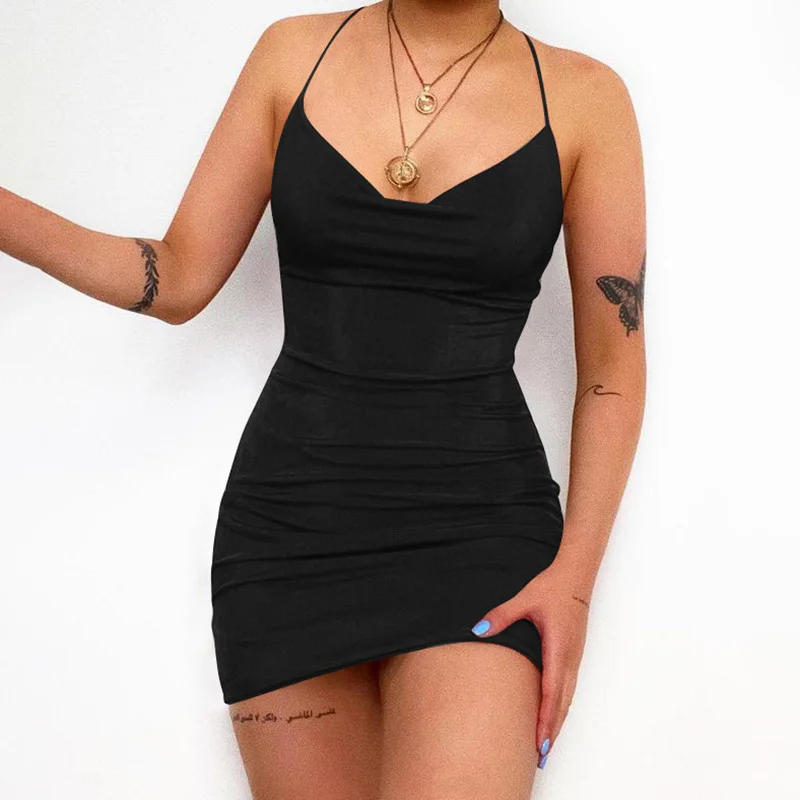 victoria’s vogue Knitted Sleeveless Cami Mini Dress For Women Solid V-Neck Criss Backless 2021 Summer Retro Sexy Basis Grils Dress 2021