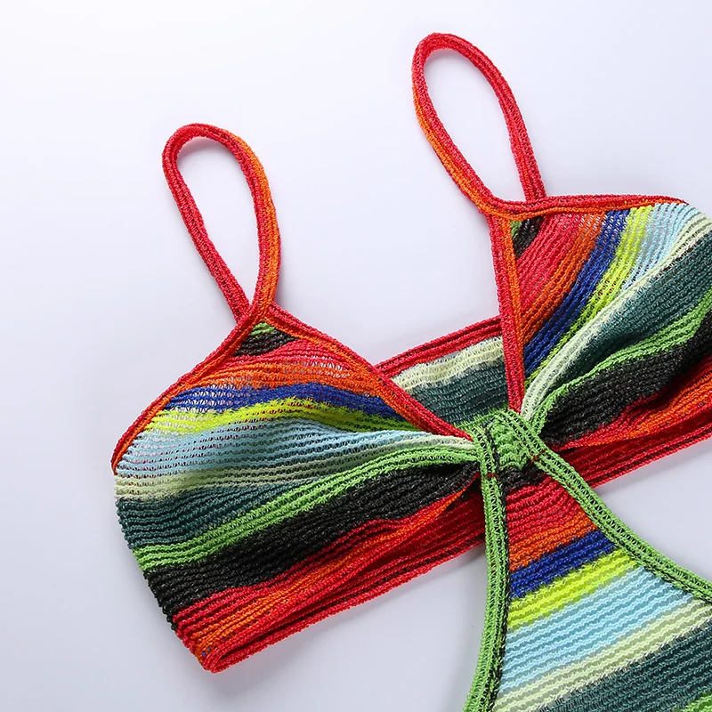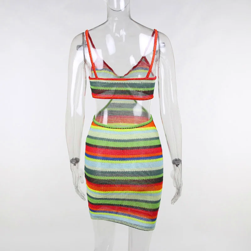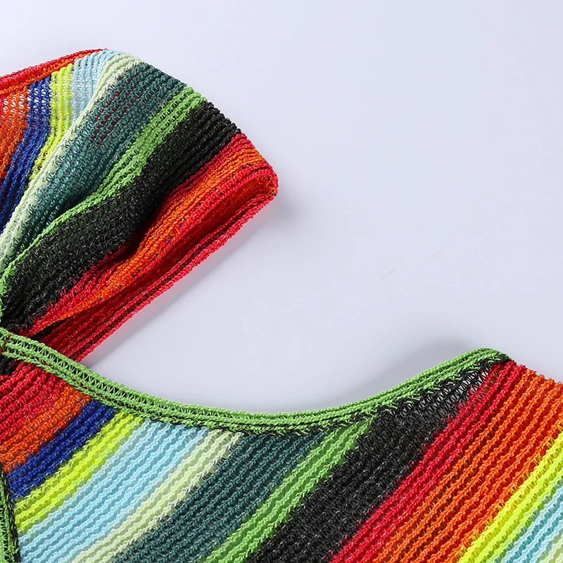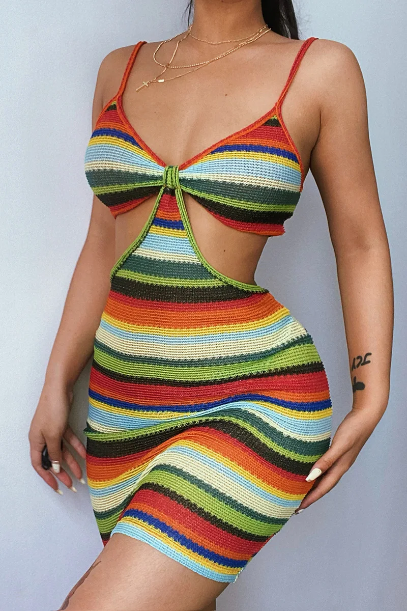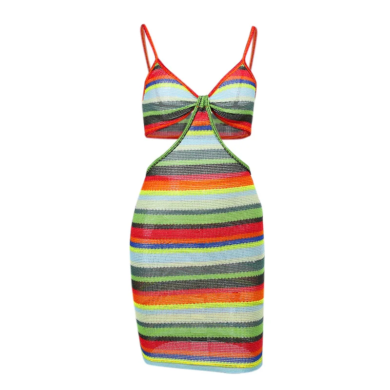 victoria’s vogue Knitted V-Neck Summer Strapdress For Women Sleeveless Hollow Out Sexy Summer Party Dress Women Stripe Mini Dresses2021