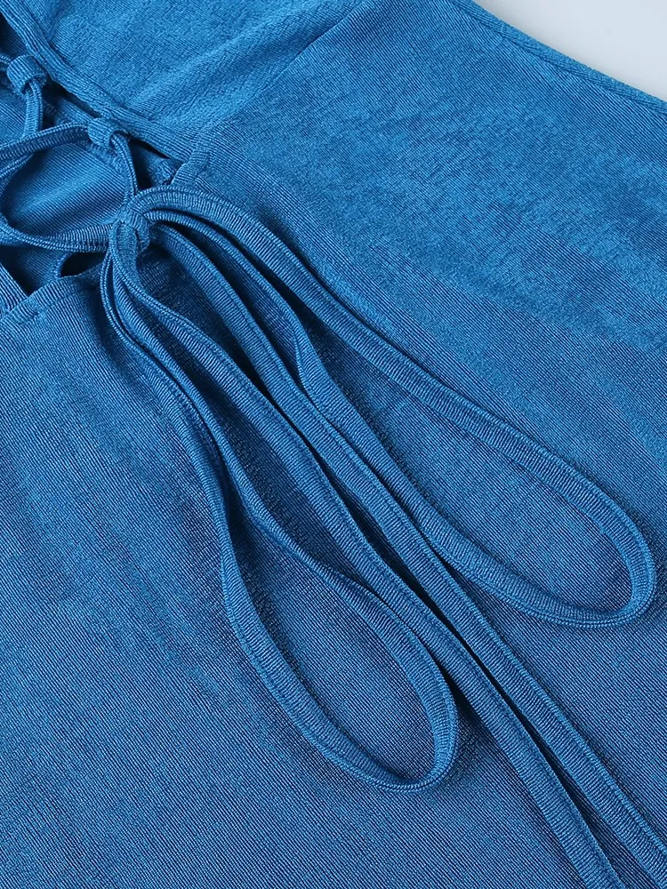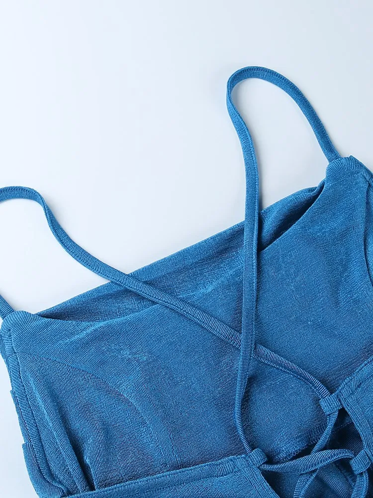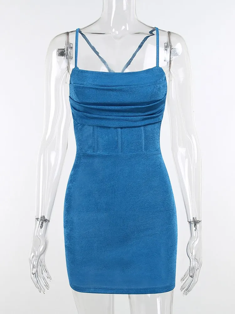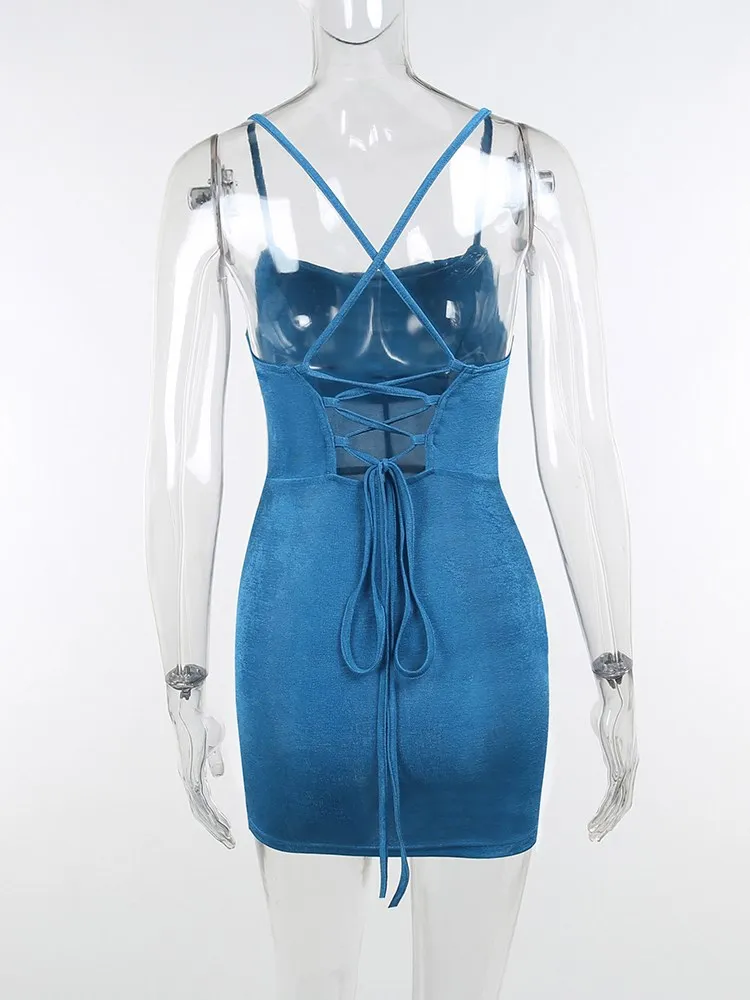 victoria’s vogue Knitted Women Folds Cami Mini Dress Backless Lace Up Bodycon Sexy Birthday Dress For Women Party Club Female Clothing