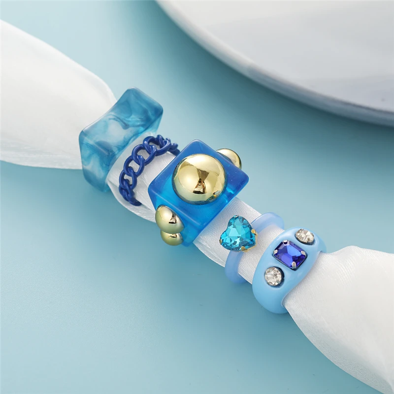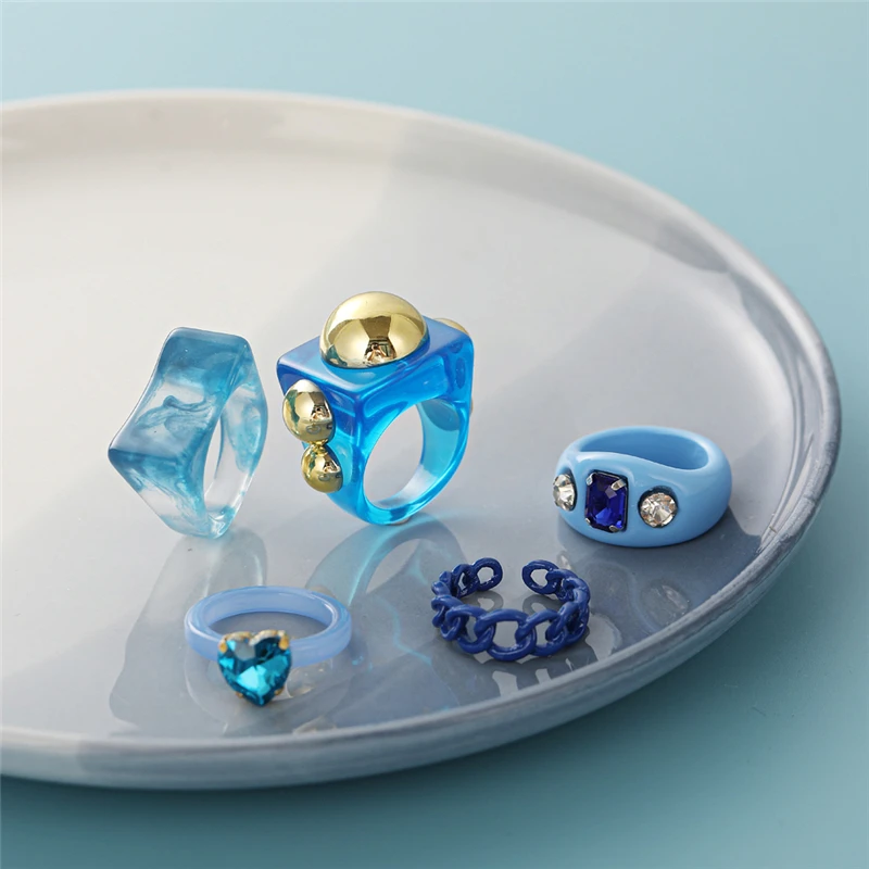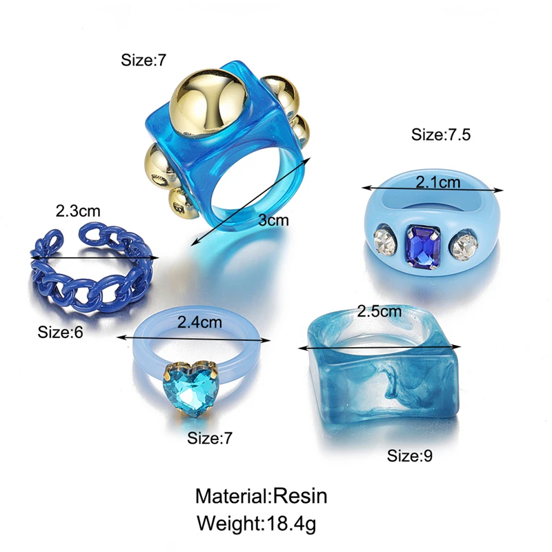 victoria’s vogue Korean Colorful Transparent Resin Acrylic Rings Set for Women Trendy Geometric Square Round Ring Wedding Jewelry