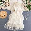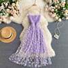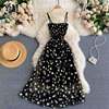 Victoria’s Vogue Korean Fashion Daisy Flower Print Mesh Party Dress Summer Two Layers Spaghetti Strap Vacation Midi Dress Beach Vestidos