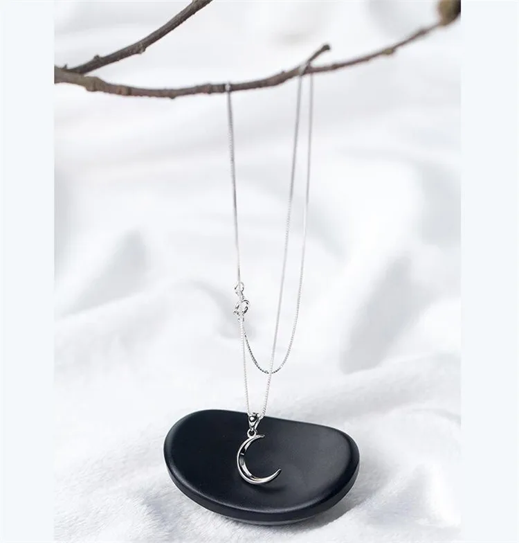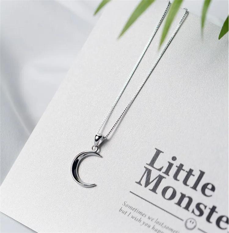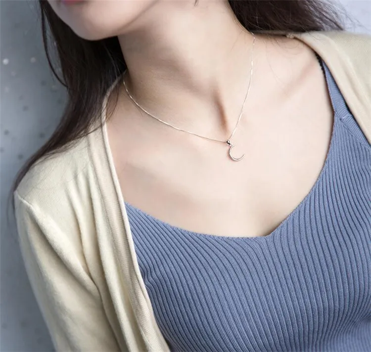 victoria’s vogue Korean Style New Fashion Sweet Moon 925 Sterling Silver Jewelry Temperament Crescent Clavicle Chain Pendant Necklaces