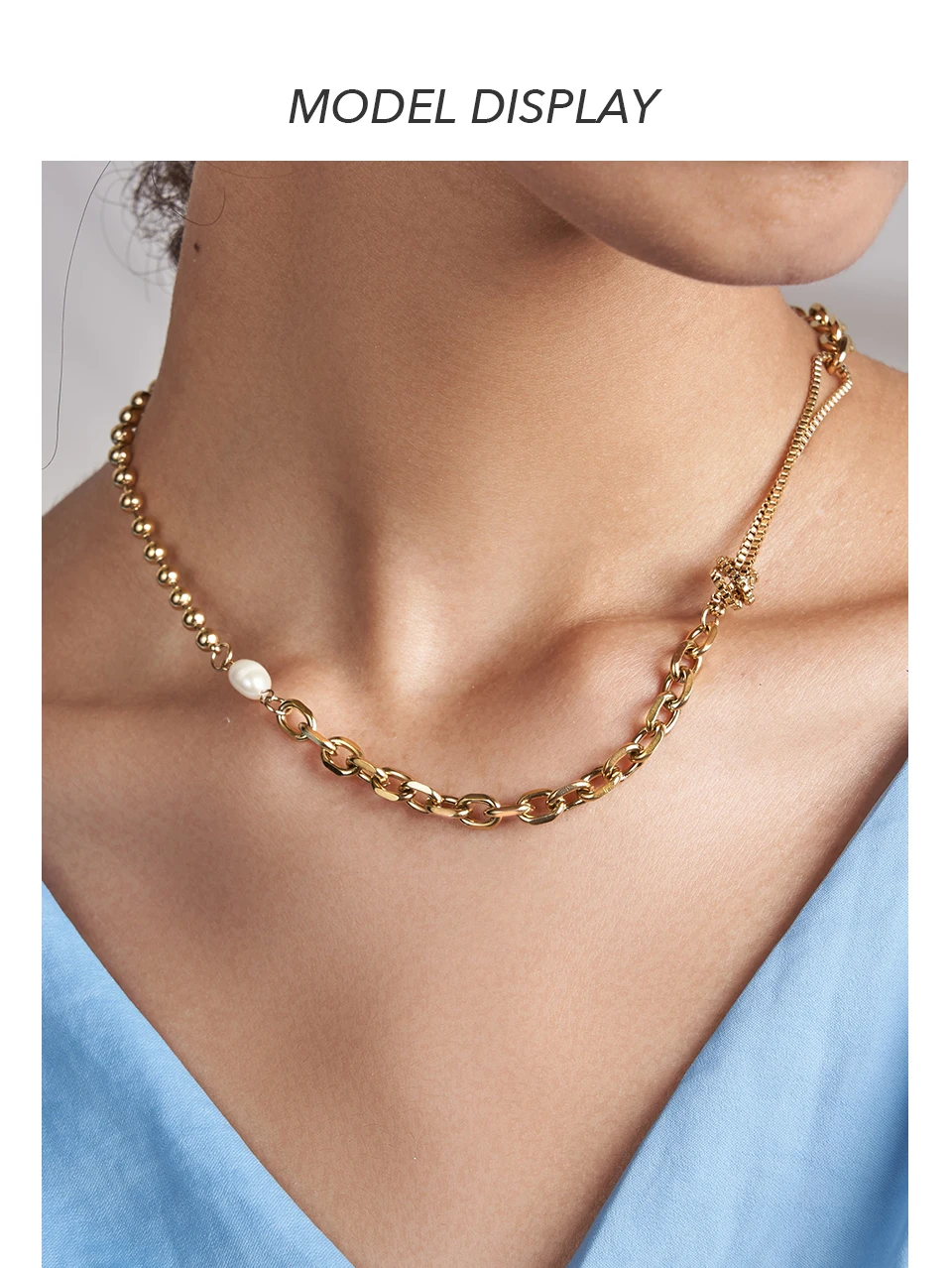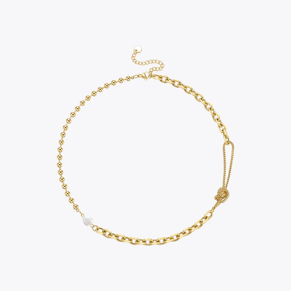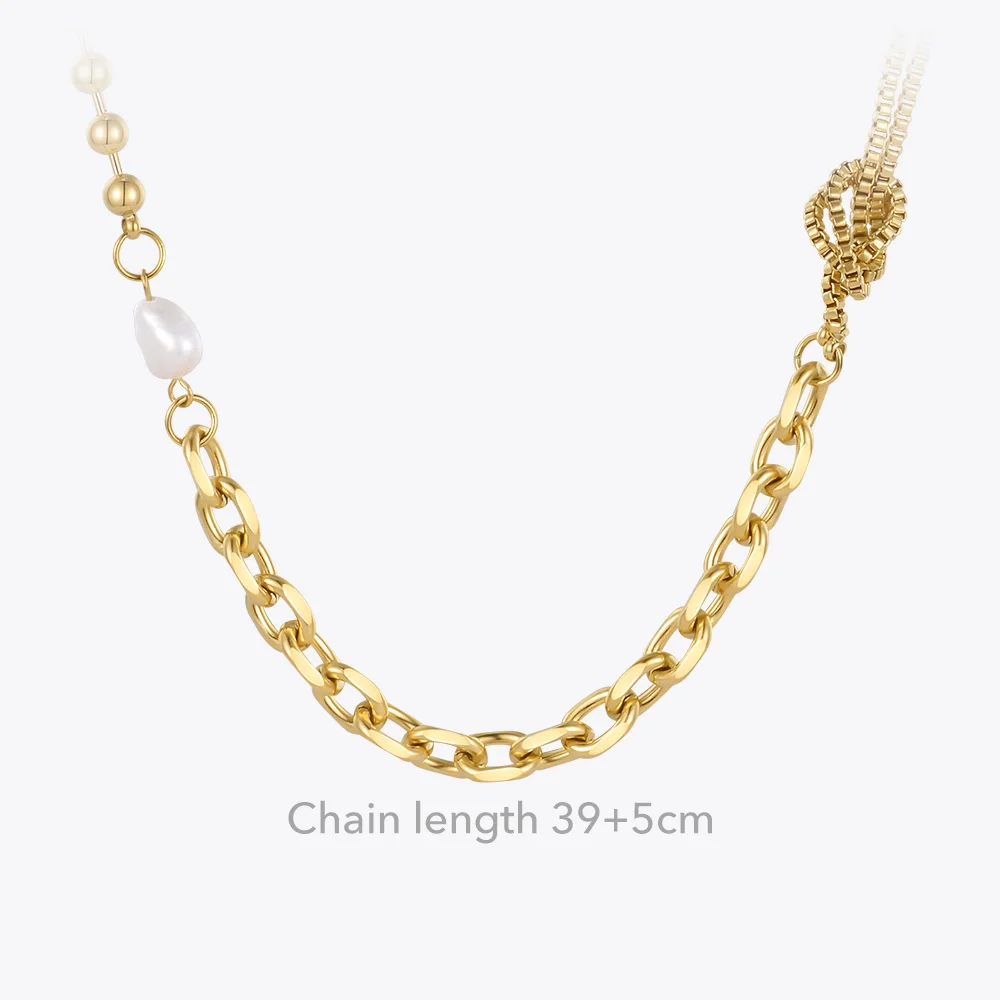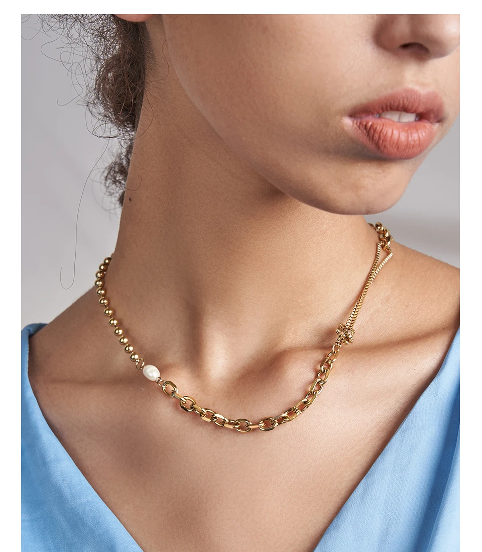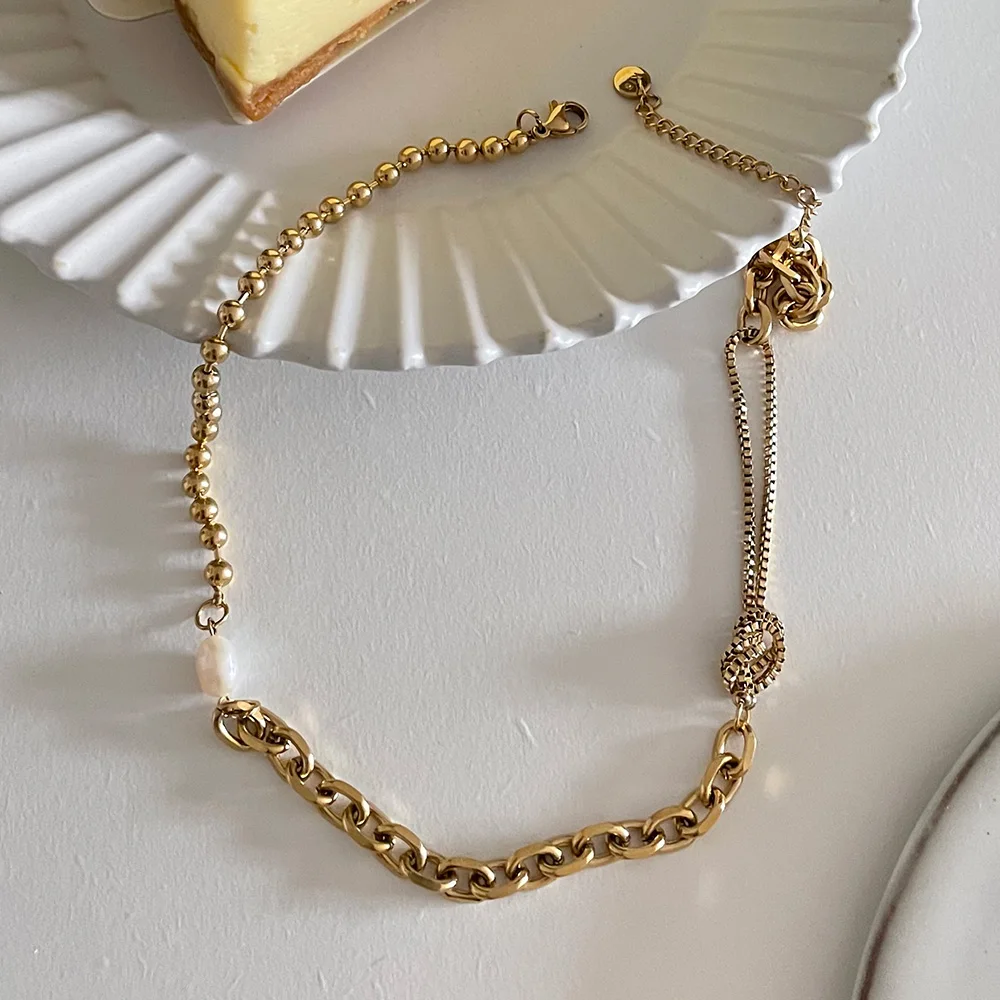 victoria’s vogue Kpop Beads Natural Pearl Necklace For Women Gold Color Link Chain Choker Stainless Steel Collier Fashion Jewelry