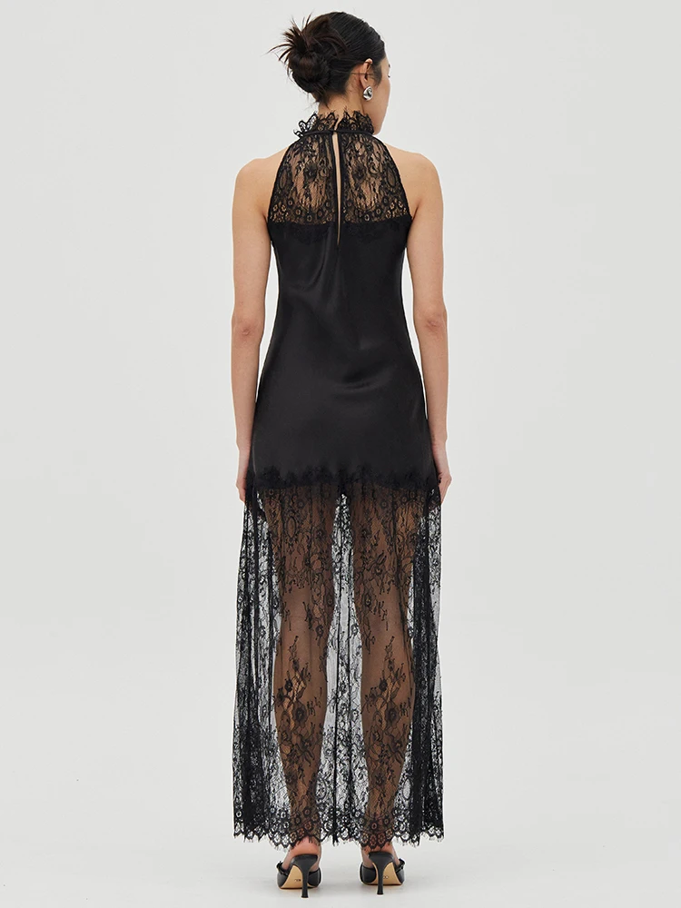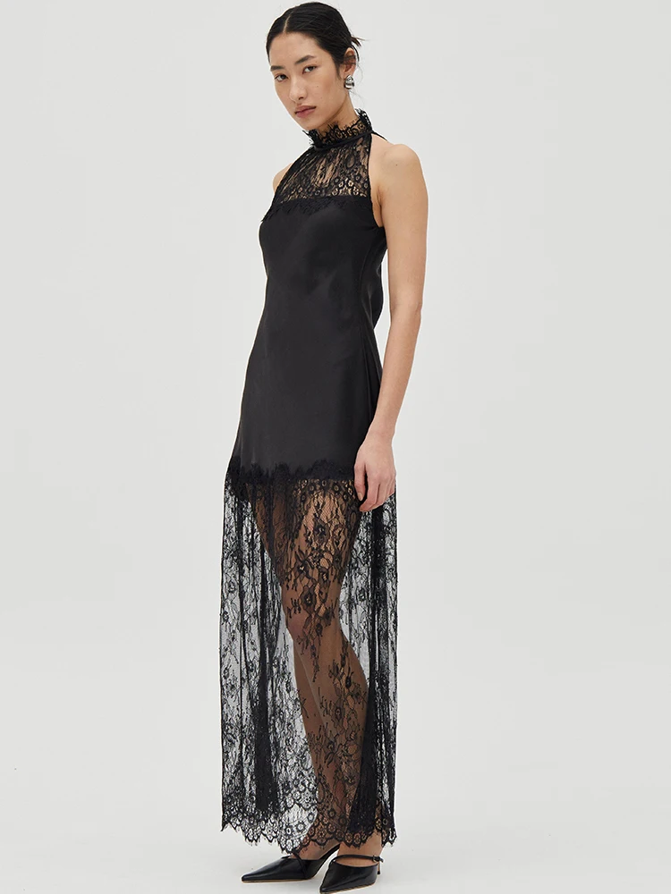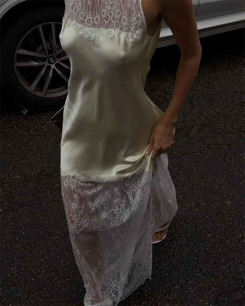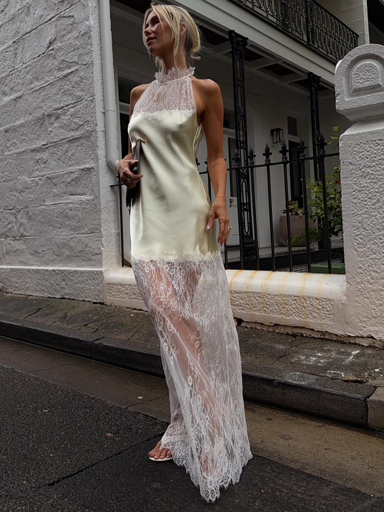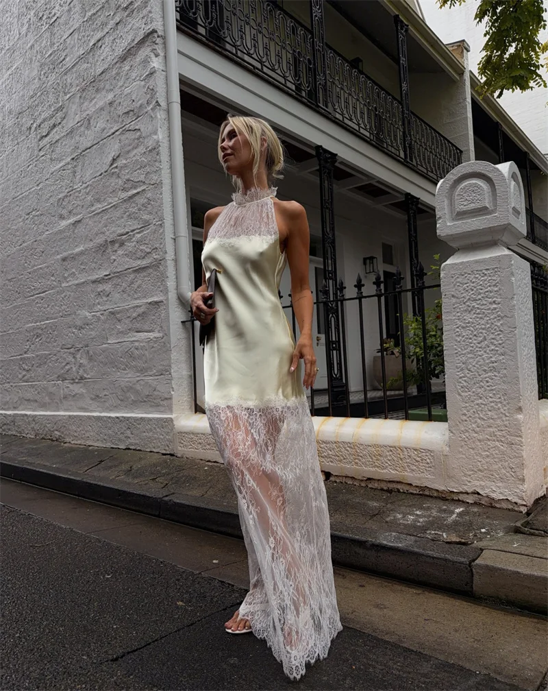 Victoria’s Vogue Lace Patchwork Sexy Maxi Dress Women Elegant Halter Off-shoulder Sleeveless Bodycon Club Party Long Dress Female
