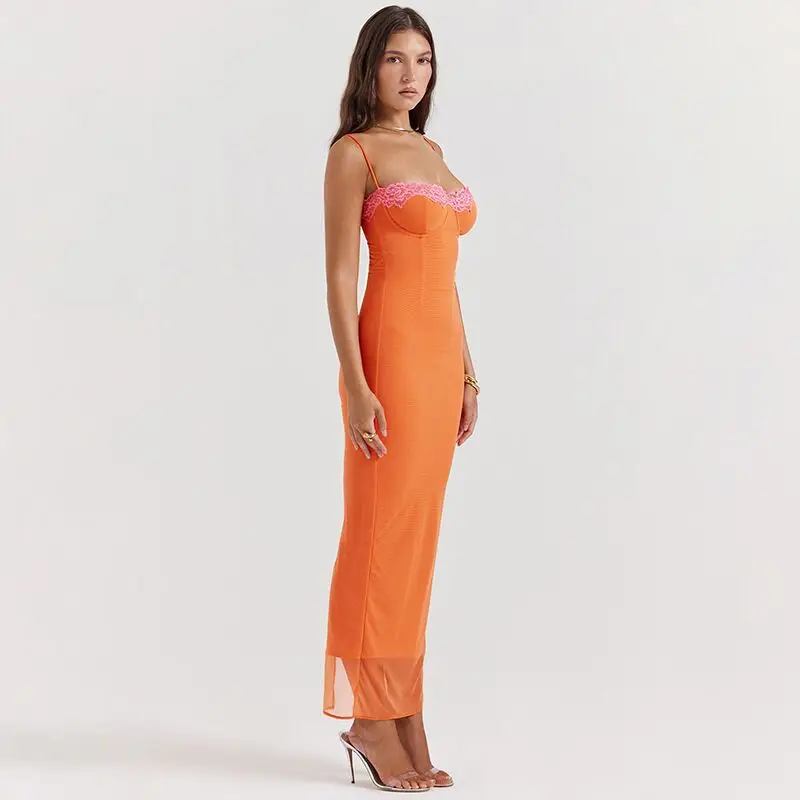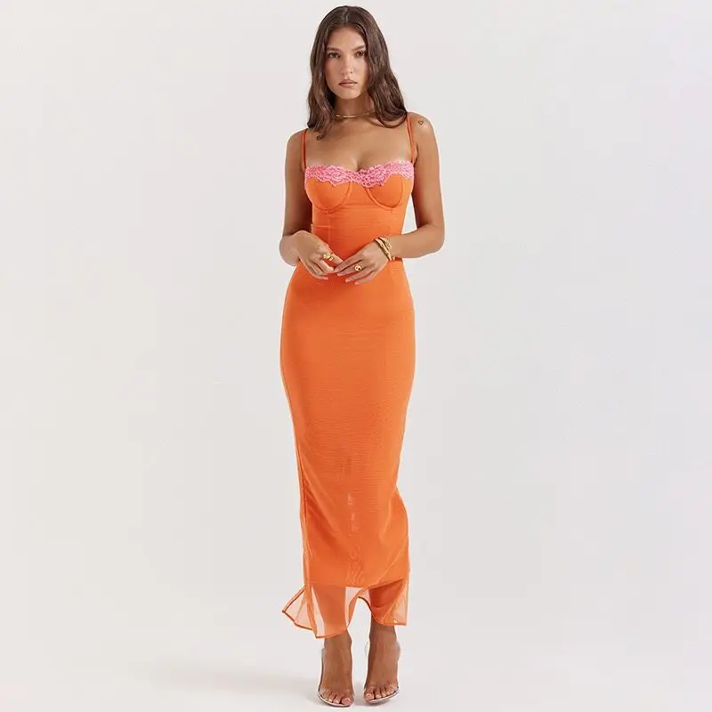 Victoria’s Vogue Lace Spaghetti Strap Bodycon Maxi Dress Women Robe New Patchwork Strapless Sleeveless Backless Sexy Club Party Dress