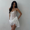 Victoria’s Vogue Lace Strapless Ruched Sexy Mini Dress For Women Fashion Fishbone Off-shoulder Sleeveless Backless Club Party Dress