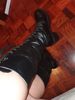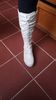 Boots near look simple and somewhat cheap because of the material. However, comfortable and quite interesting from afar. During the shipment, one boot crumpled in the area of the sock and does not straighten. Judging by the photo, the white version looks better. The size 5,5 indicated here, or 23 cm on the insole, approached the Russian 34 size, stop 21,5 cm.