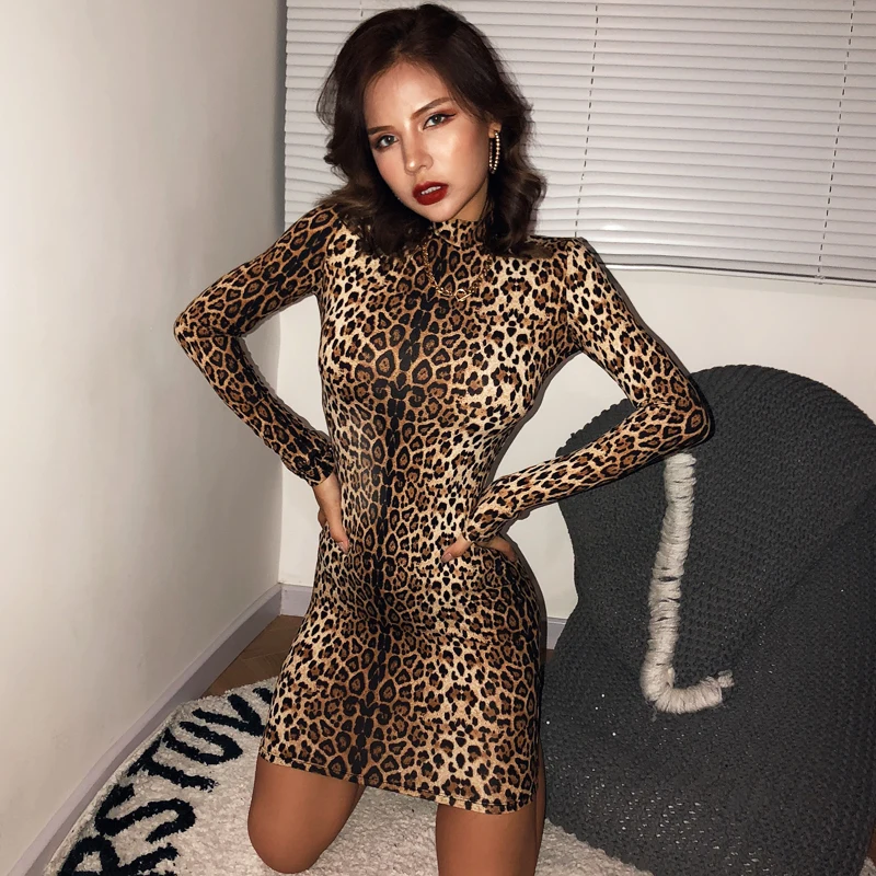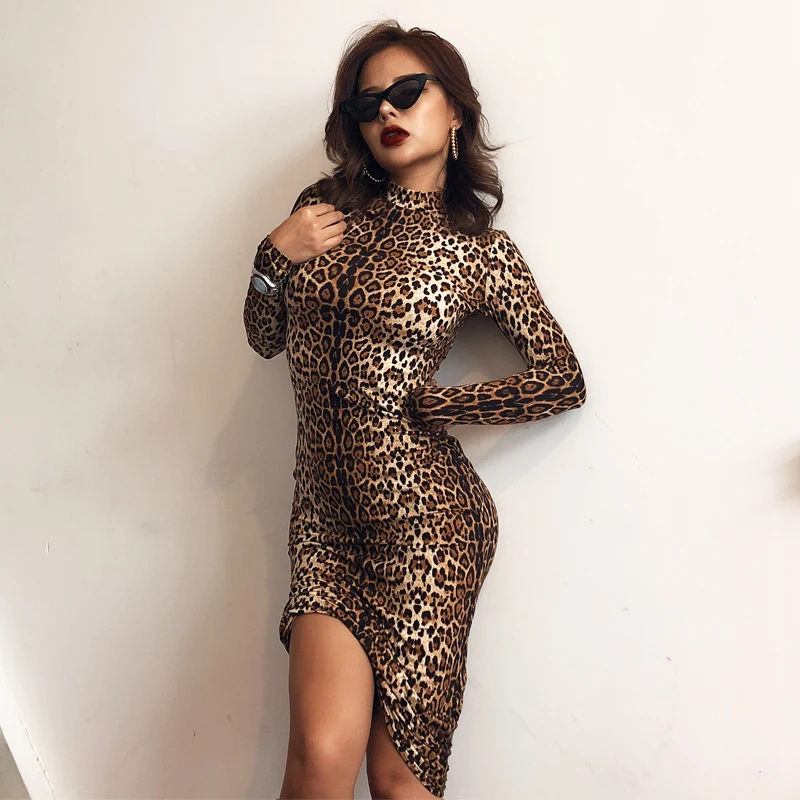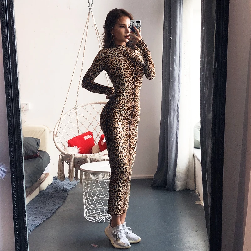 victoria’s vogue leopard print long sleeve slim bodycon sexy dress 2021 autumn winter women streetwear party festival dresses outfits