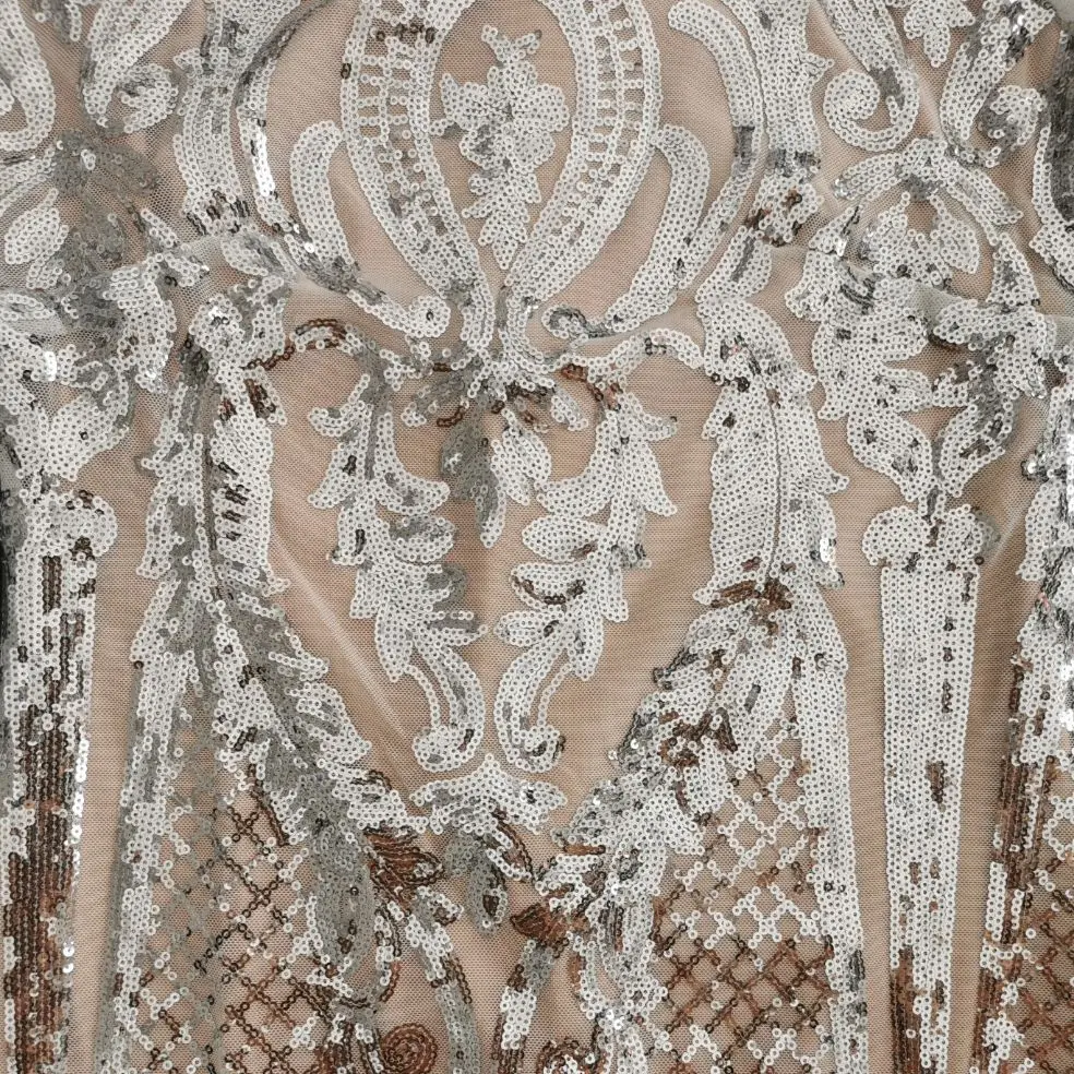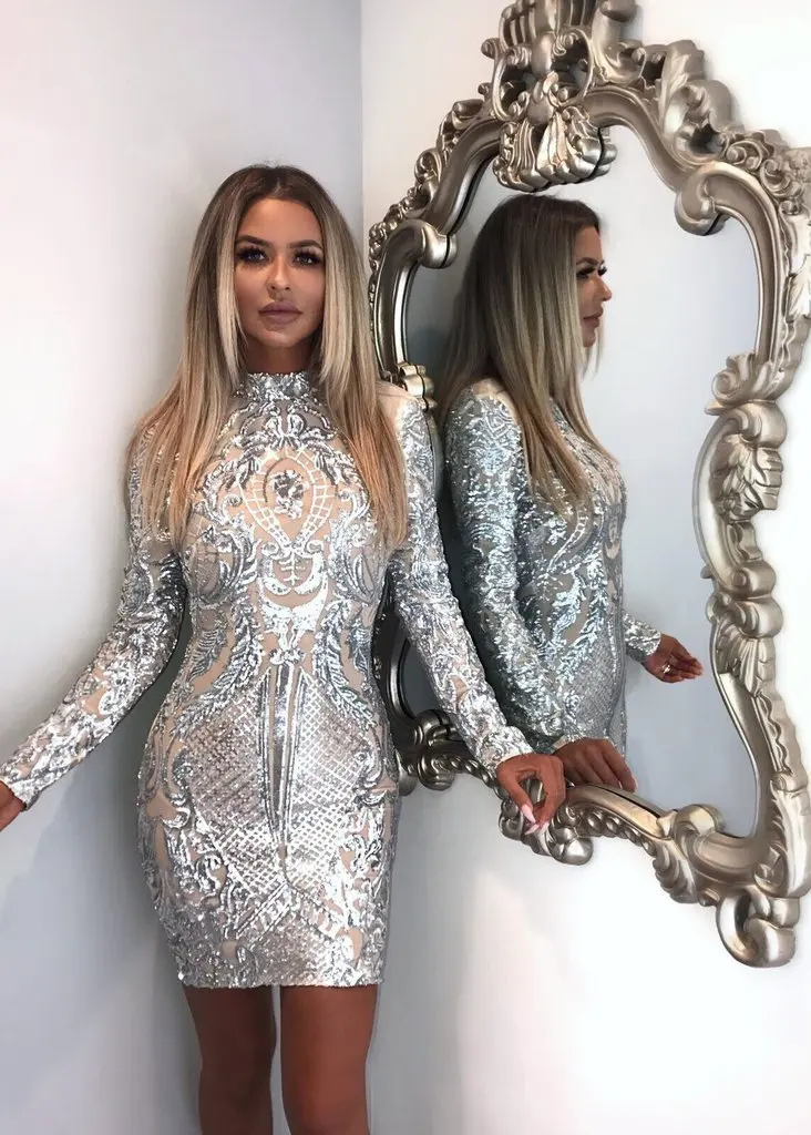 victoria’s vogue Long Sleeve Dress White Sequin Evening Dress Elegant Party Bodycon Dress With Champagne Lining