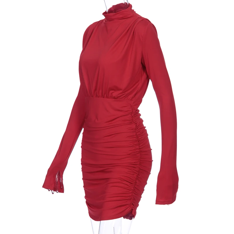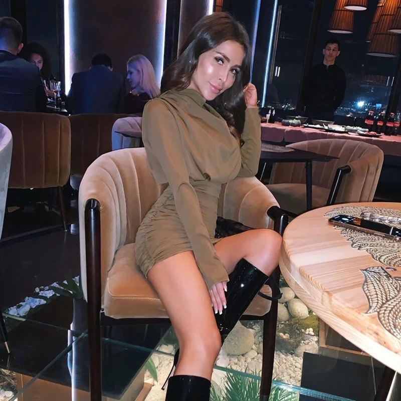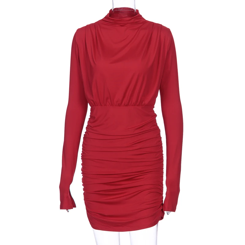victoria’s vogue long sleeve ruched pure sexy mini dress 2021 autumn winter women streetwear party outfits clubwear
