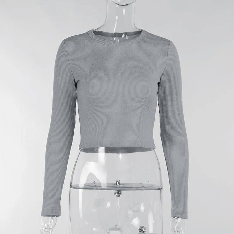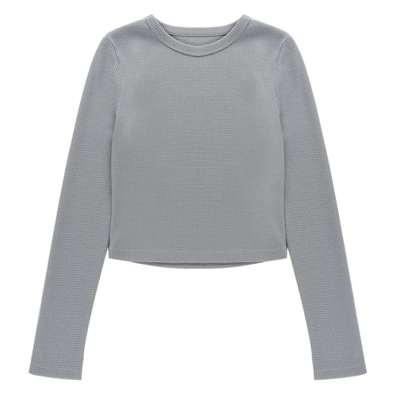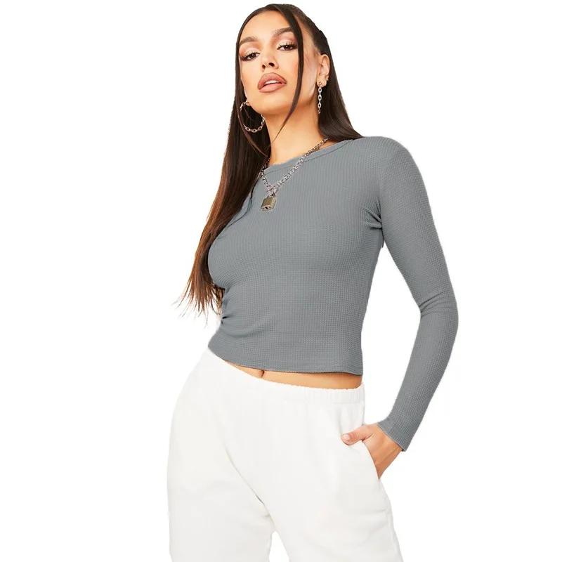 victoria’s vogue Long Sleeve Women T-Shirt O Neck Skinny Sexy Base Tees Waffle Pattern Autumn Office Lady Fashion Fitness New Tops 2021