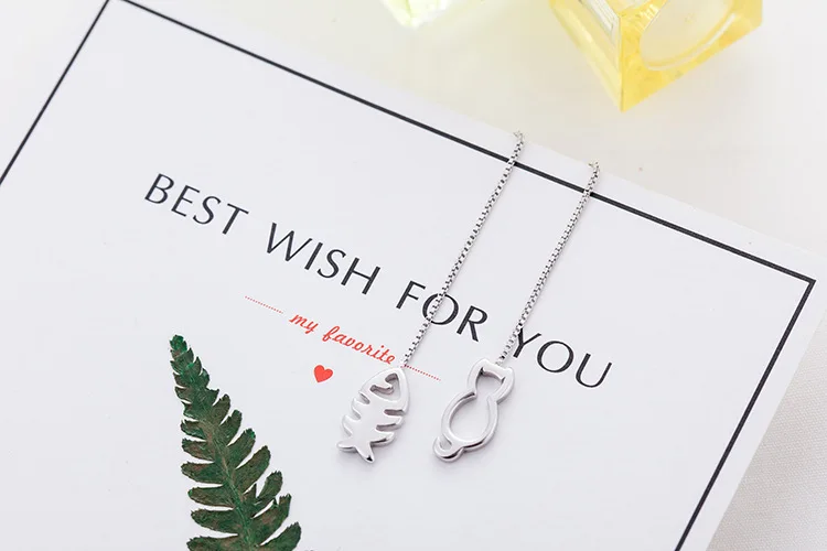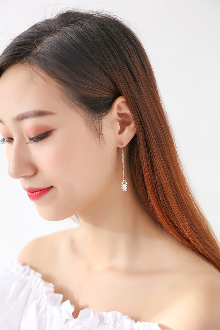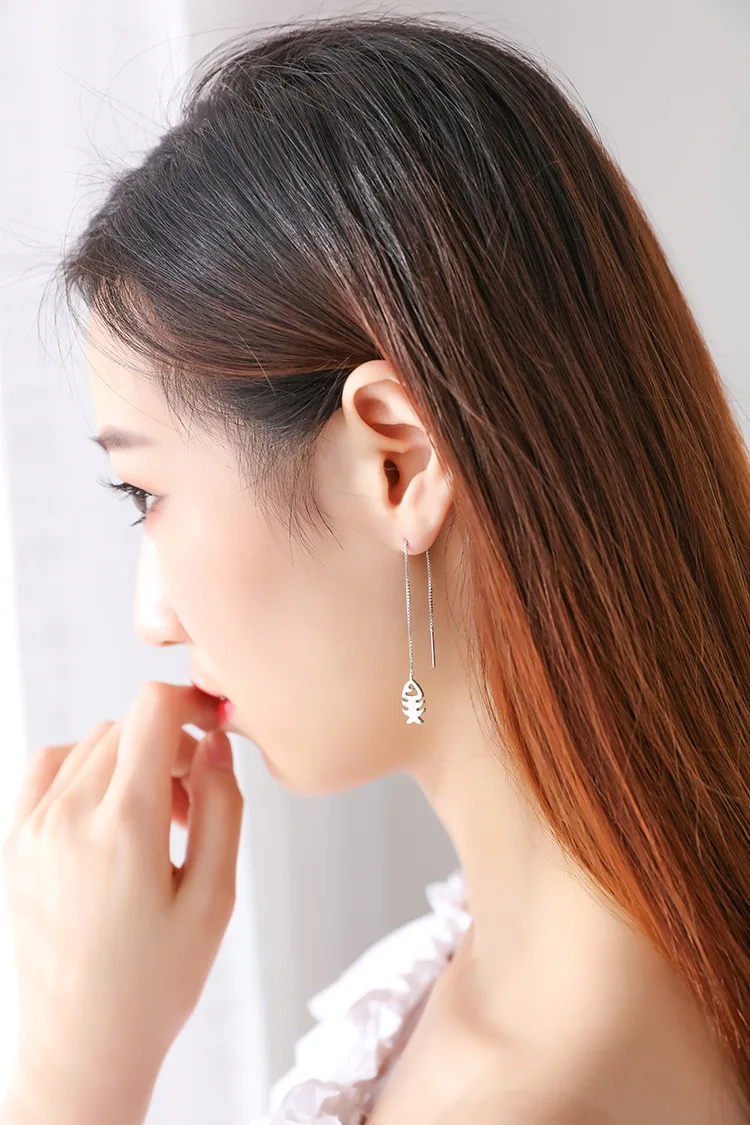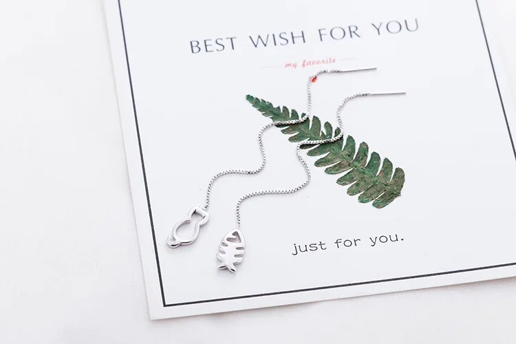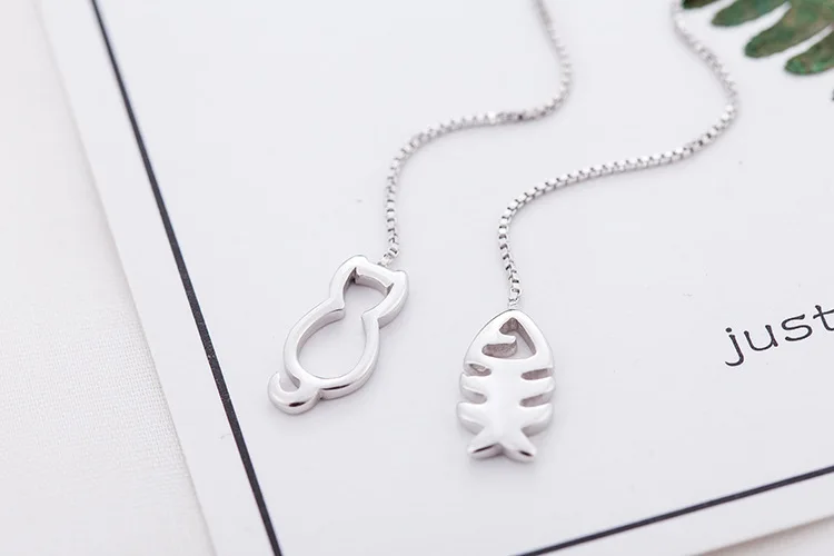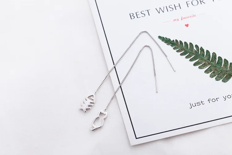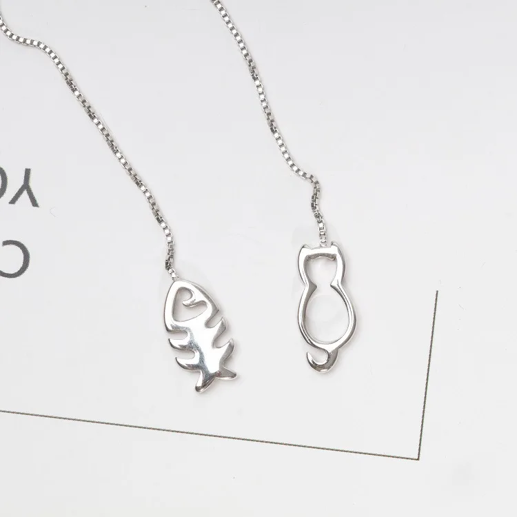 Victoria’s Vogue Long Tassel Ear Line Asymmetry 925 Sterling Silver Jewelry Fashion Personality Hollow Simple Cat And Fish Dangle Earrings