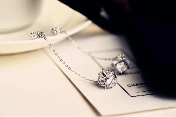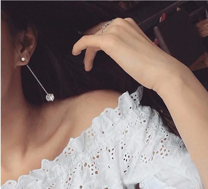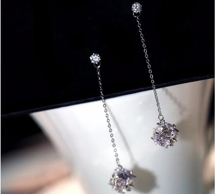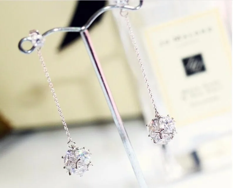 Victoria’s Vogue Long Tassel Hanging The Crystal Balls 925 Sterling Silver Jewelry Fashion Exquisite Bright Beautiful Female Earrings