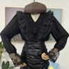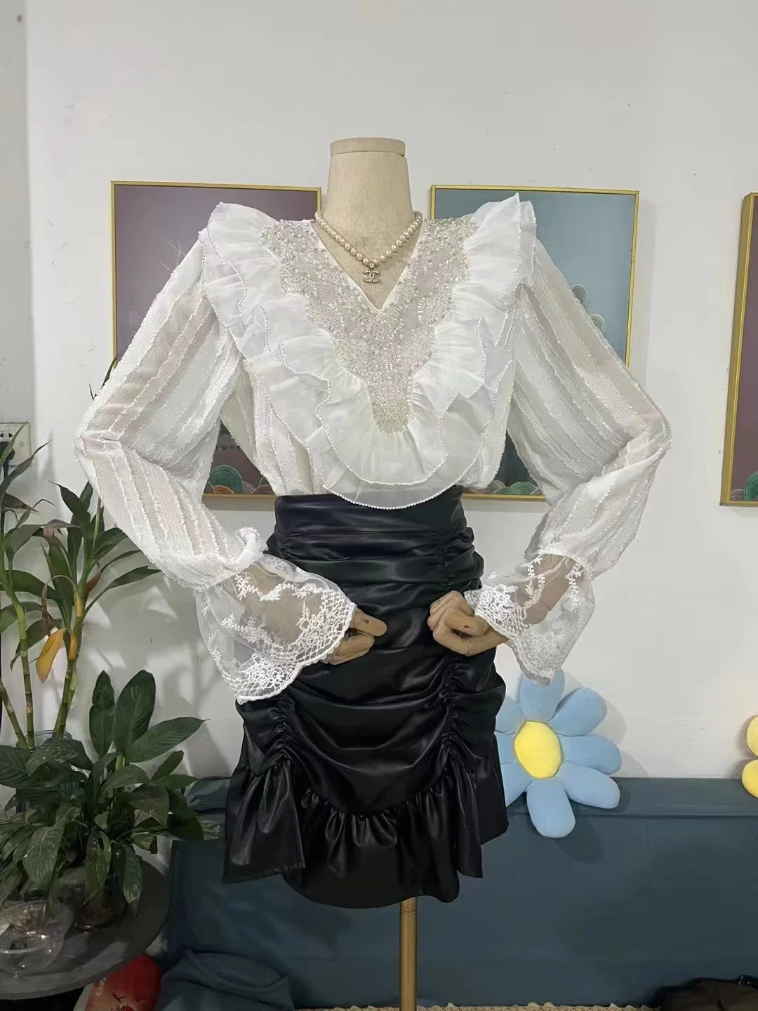 Victoria’s Vogue Luxury Beaded Sequined Stitch Lace White Black Pink Sexy Blouses Shirts For Women’s 2024 Spring Summer Long Sleeve Tops Blusas