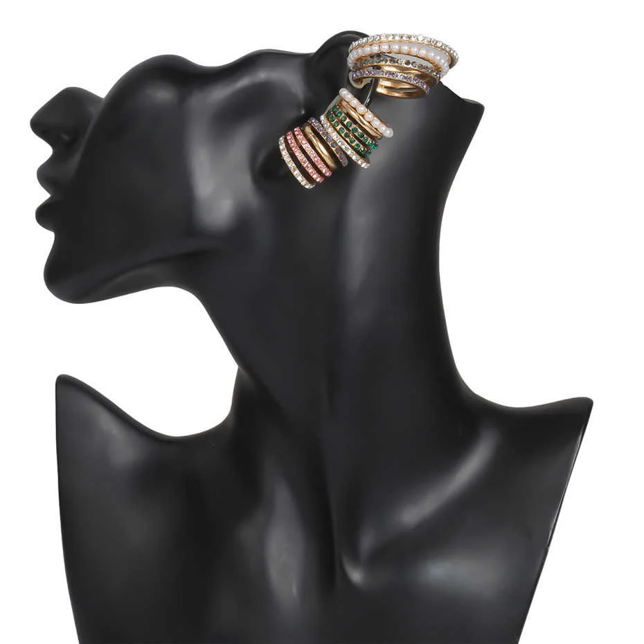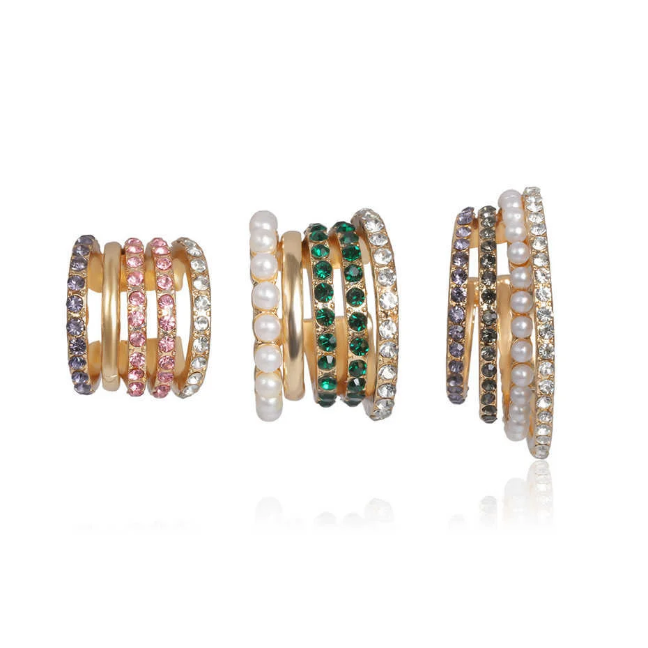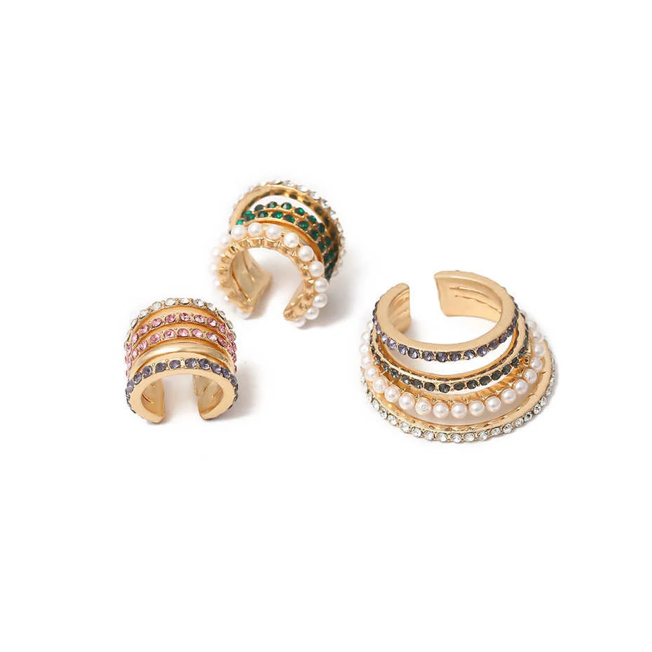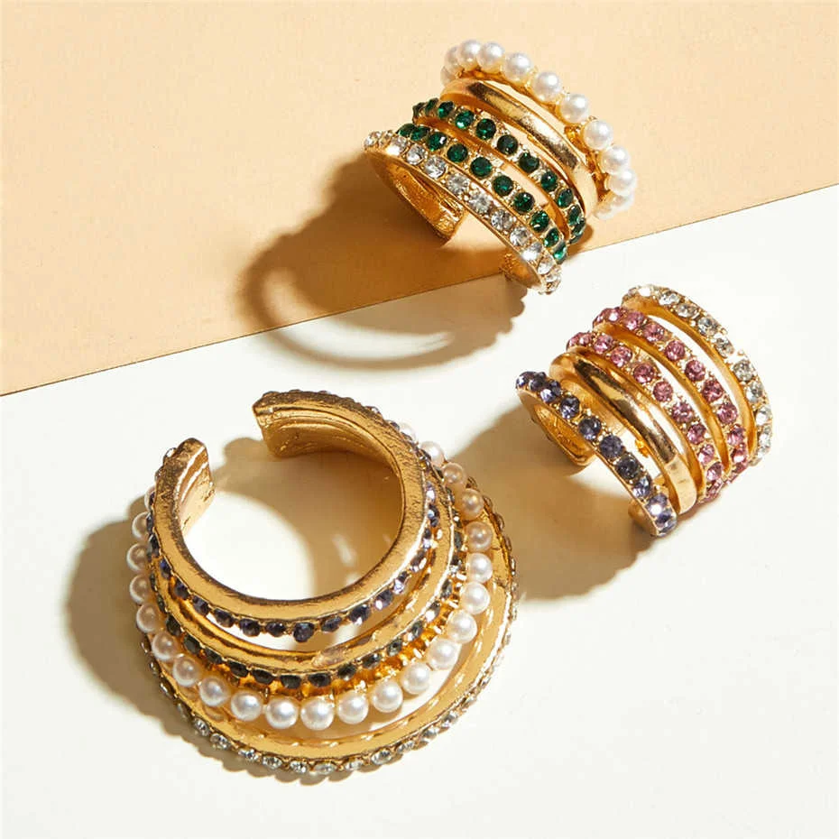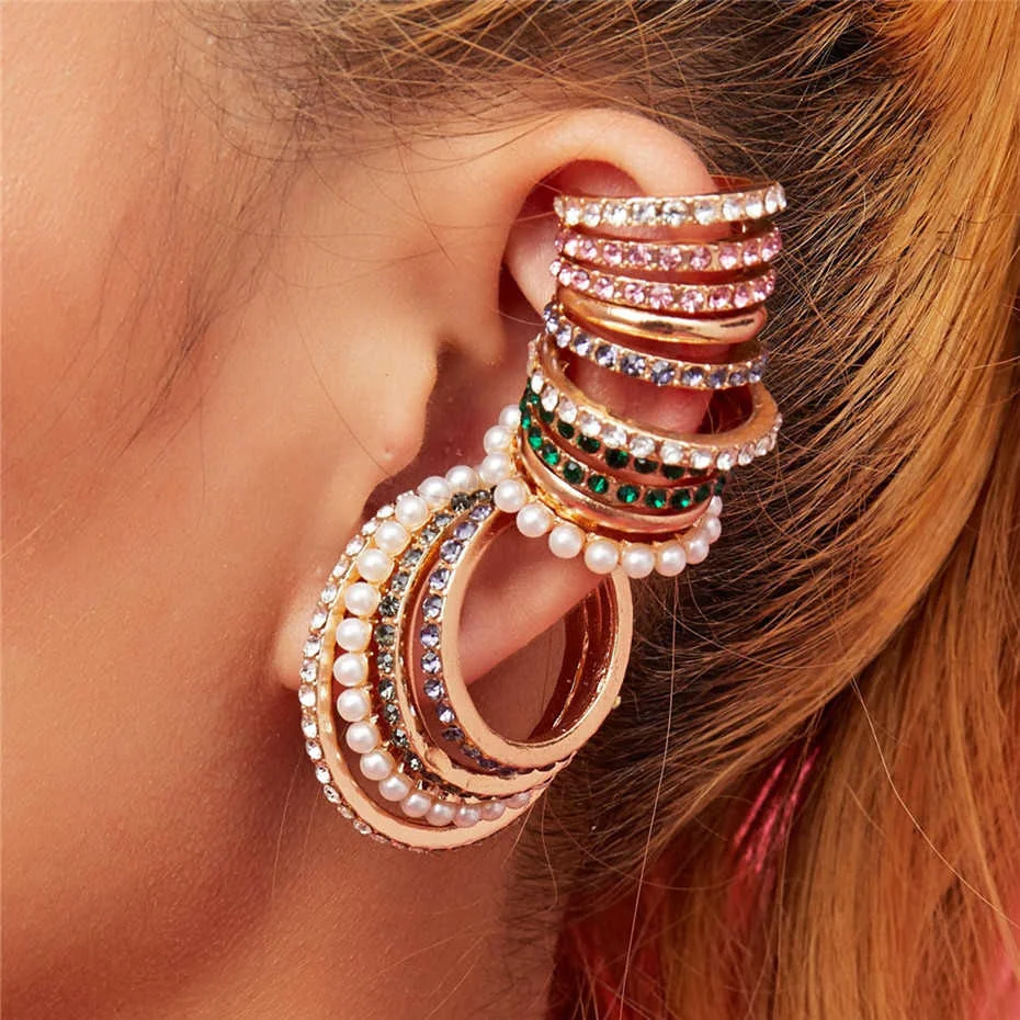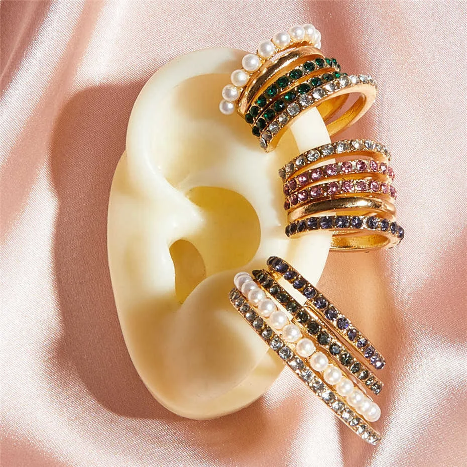 victoria’s vogue Luxury Bling Rhinestone Clip Earrings Without Piercing Punk Shiny Rainbow Crystal Cuff Earrings for Women Jewelry