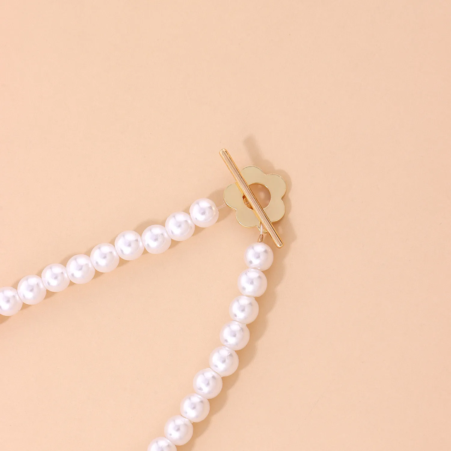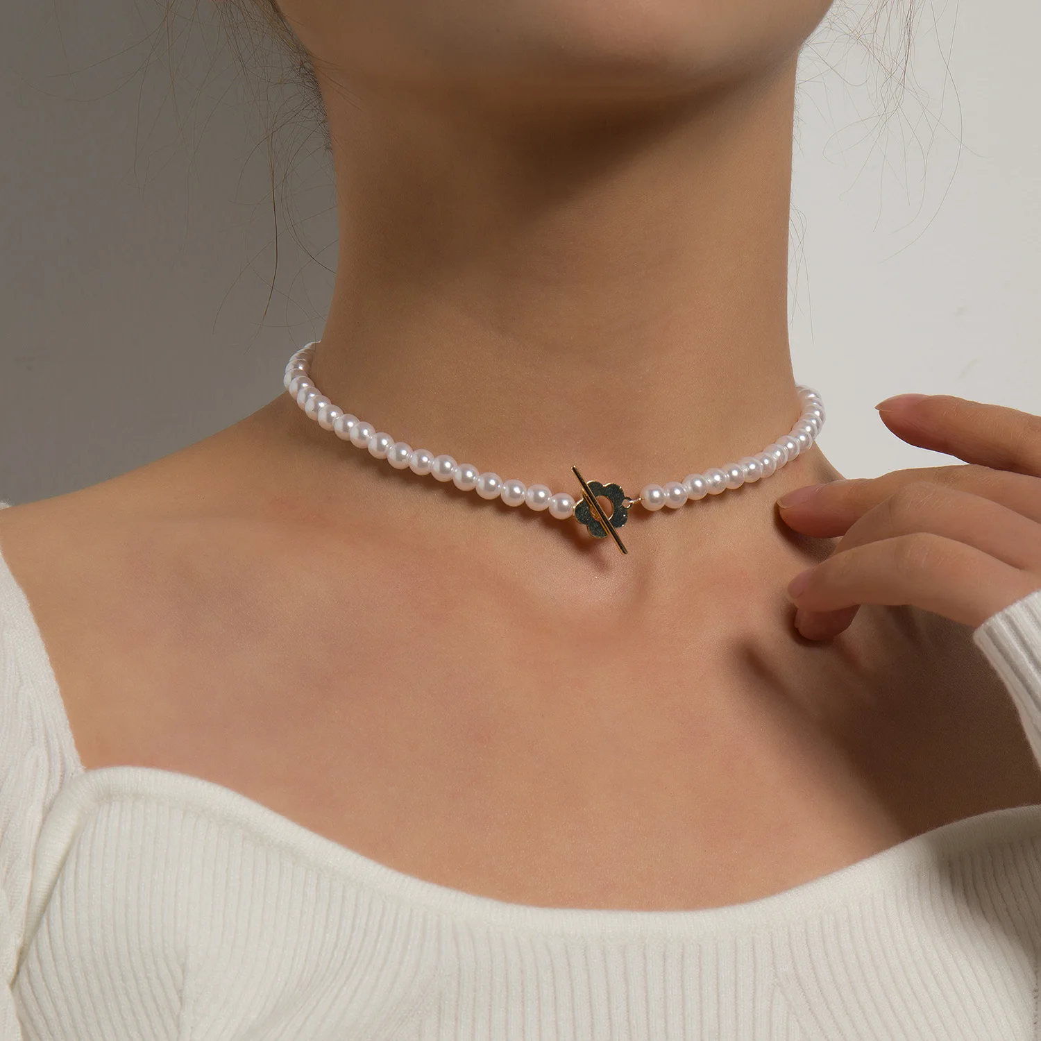 Victoria’s Vogue Luxury Crystal Glass Bead Chain Choker For Women Flower Lariat Lock Collar Imitation Pearl Charm Necklace Party Jewelry