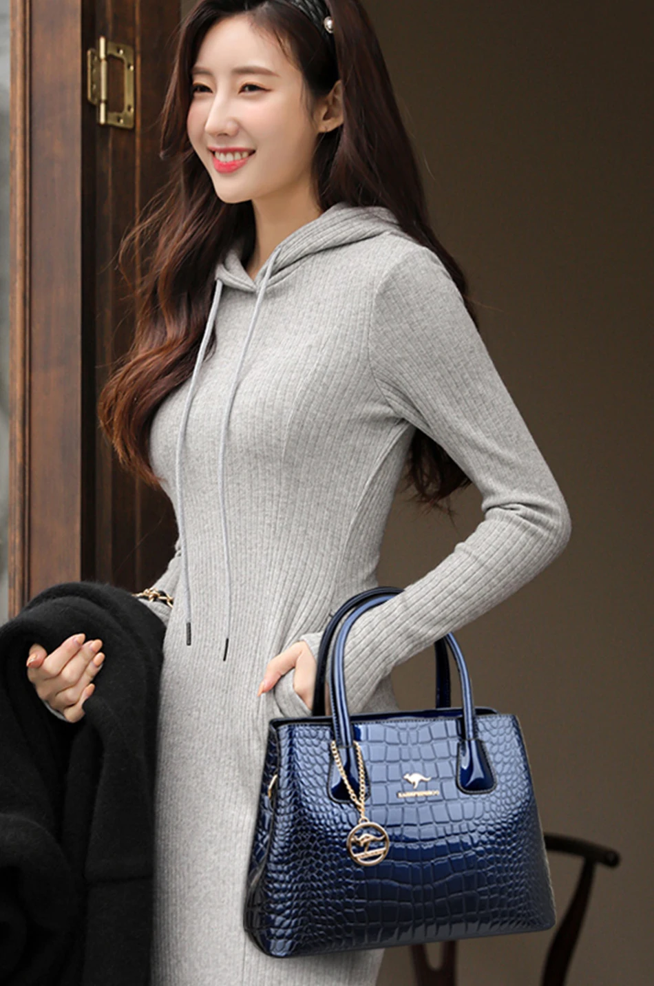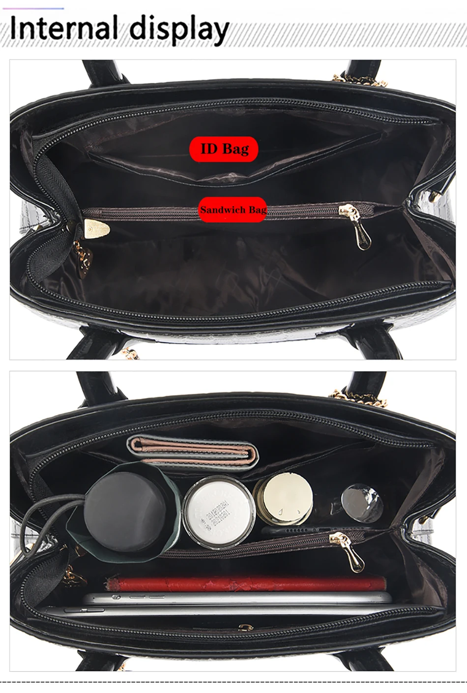 Luxury Patent Leather Crossbody Bags Women Crocodile Pattern Sac 2023 Large Capacity Ladies Shoulder Tote Bags Designer Purse