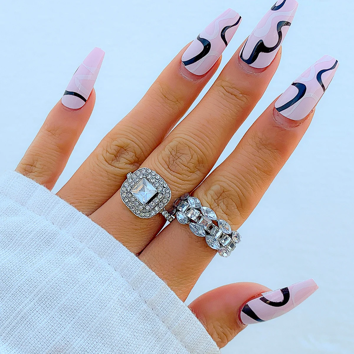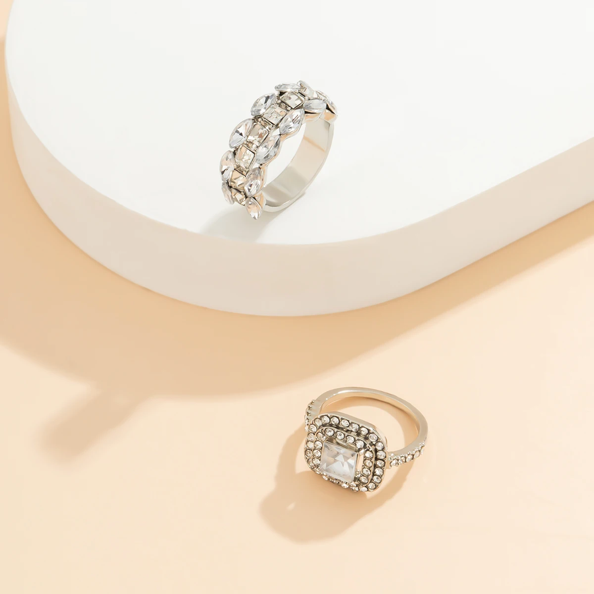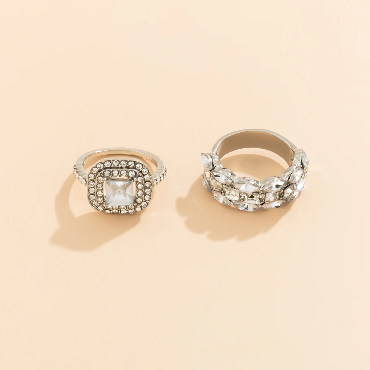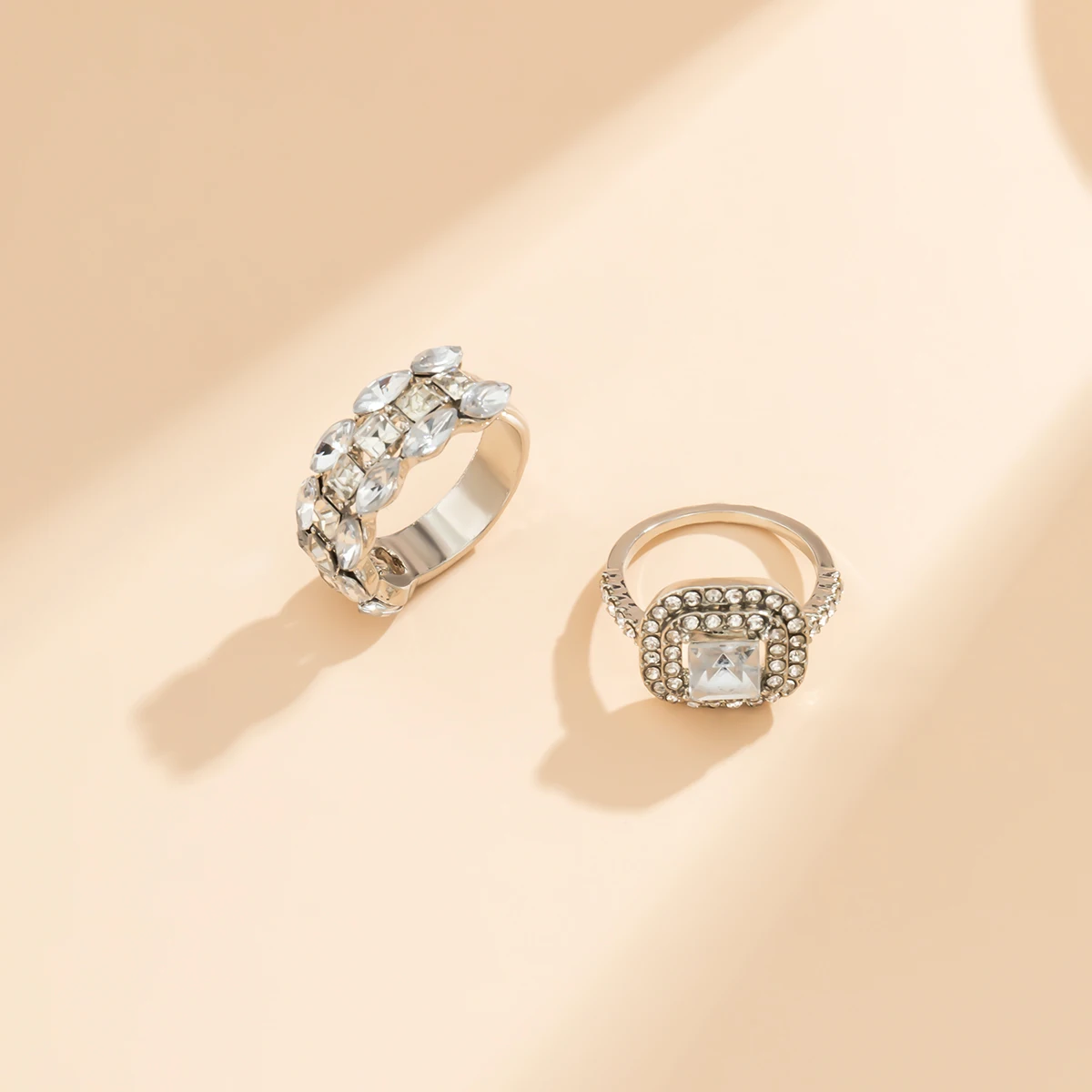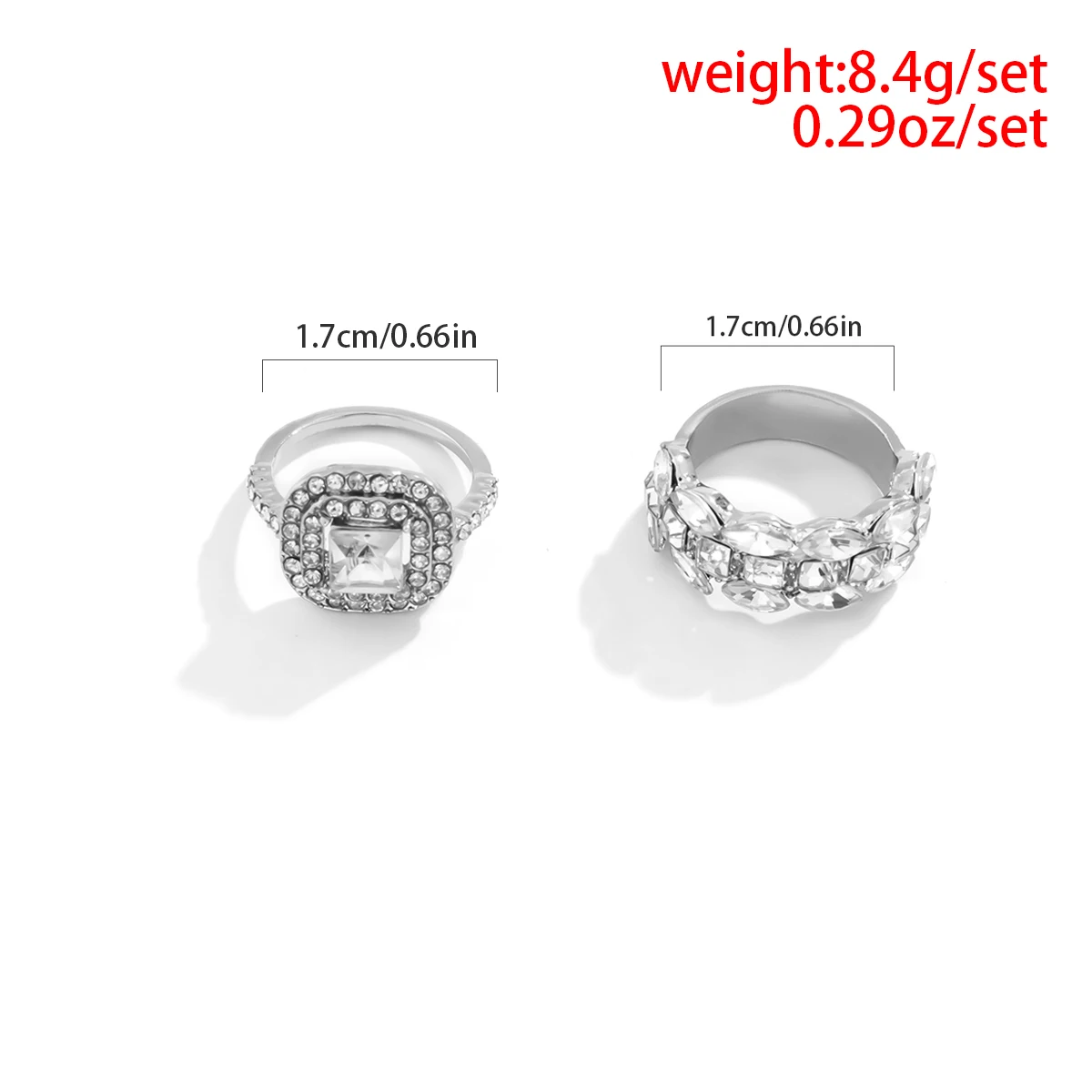 victoria’s vogue Luxury Shiny Rhinestones Crystal Knuckle Finger Rings Set for Women Geometric Square Rings Wedding Jewelry Gifts
