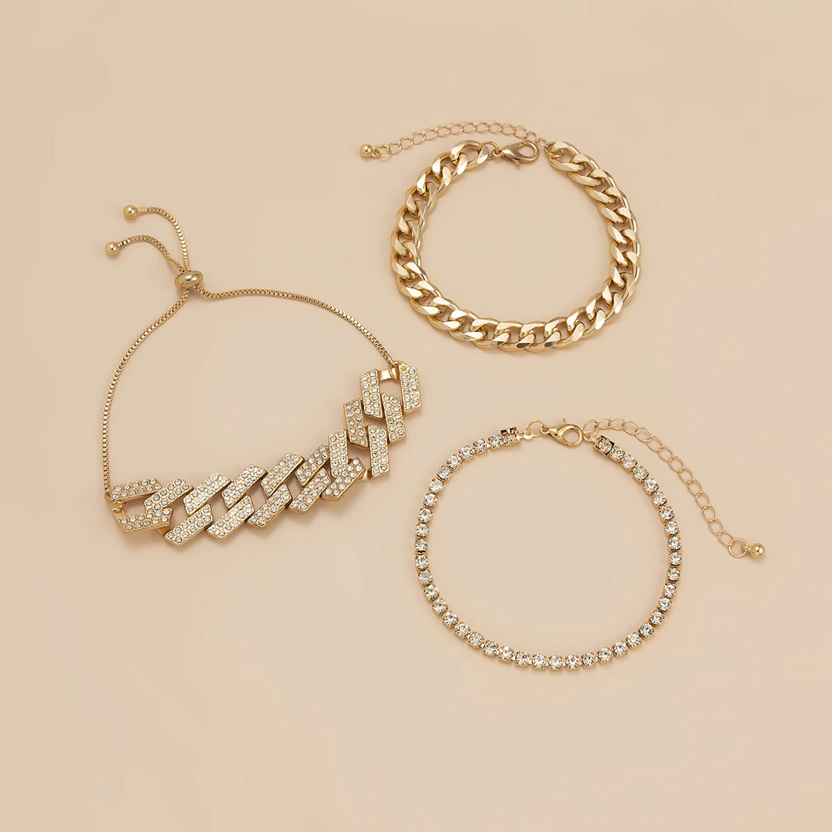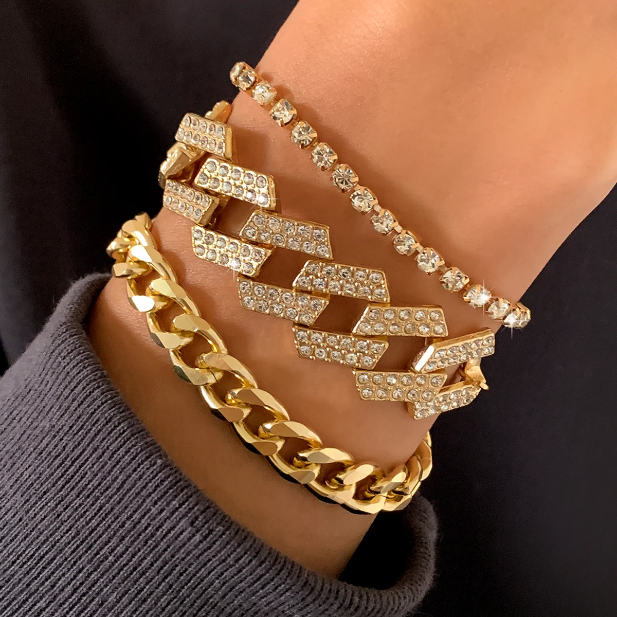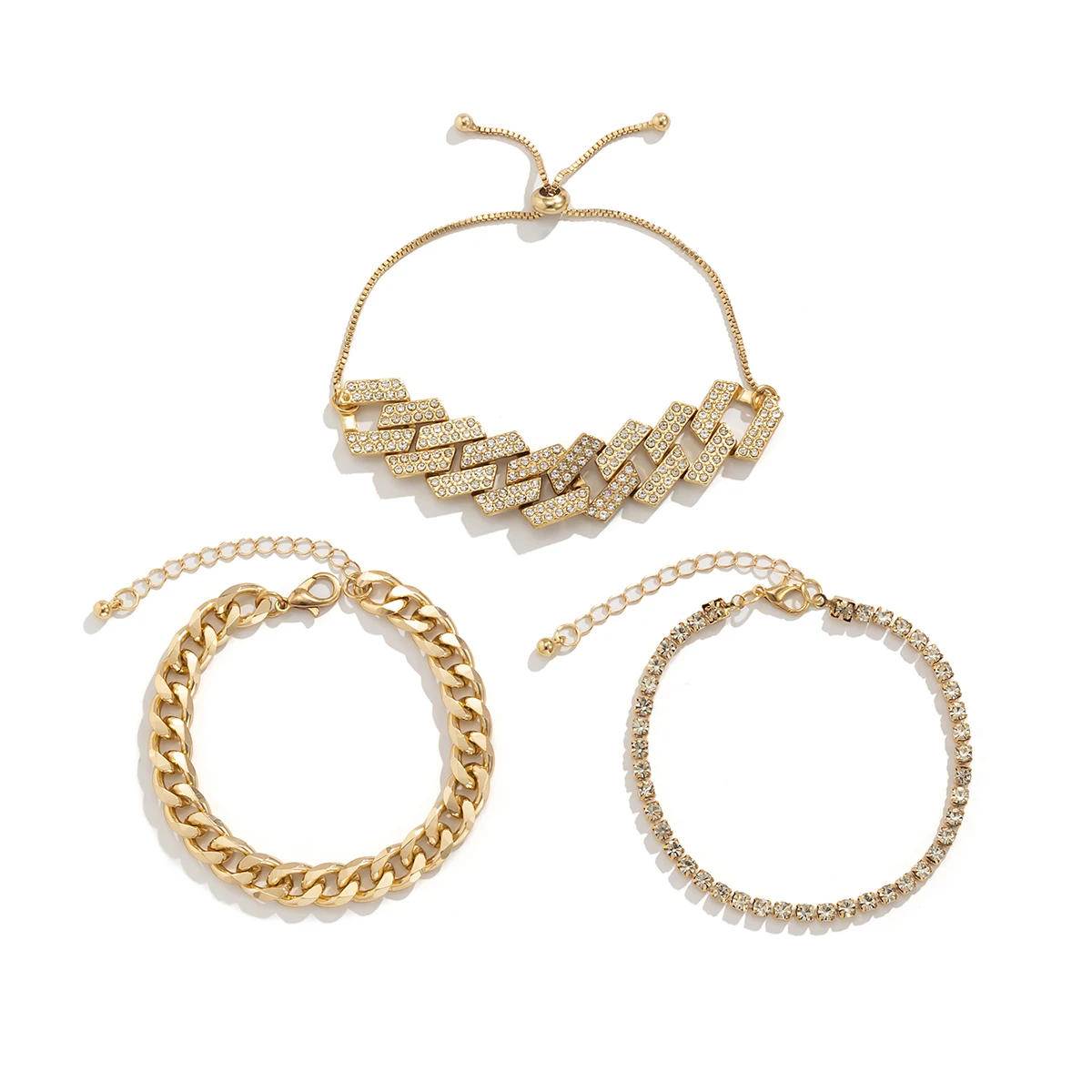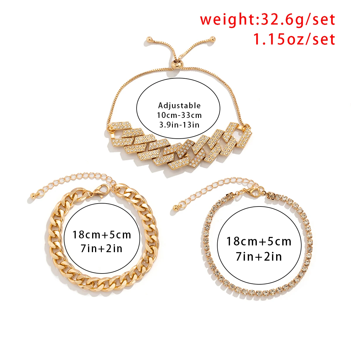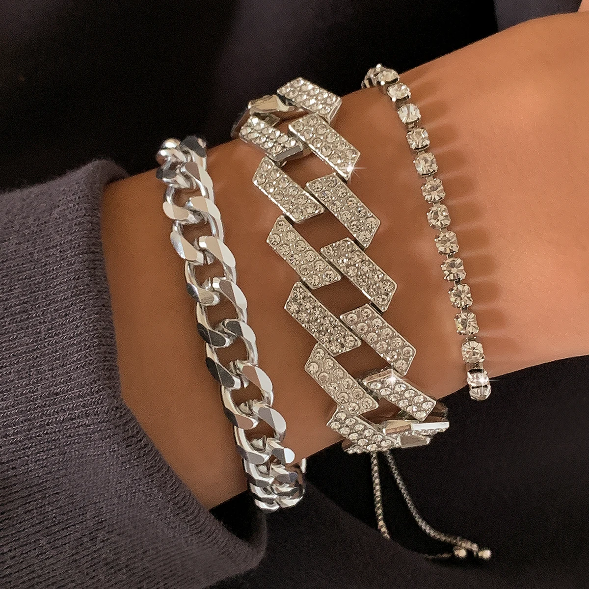 victoria’s vogue Men Hip Hop Full Iced Out Rhinestones Miami Curb Cuban Bracelets Bangles Crystal Chain Adjustable Bracelets Jewelry