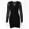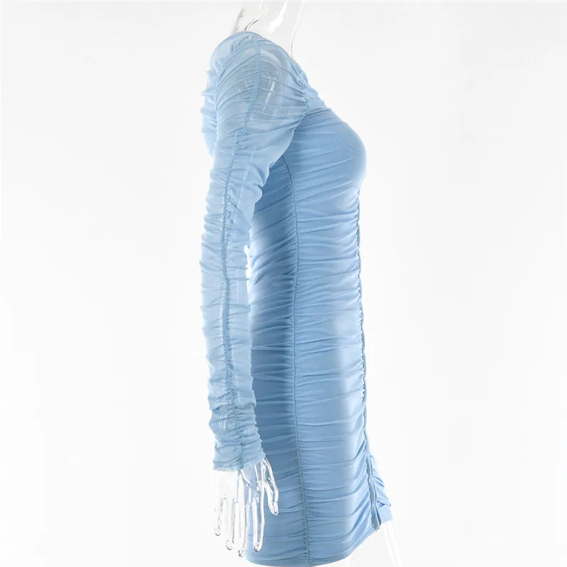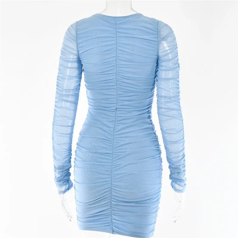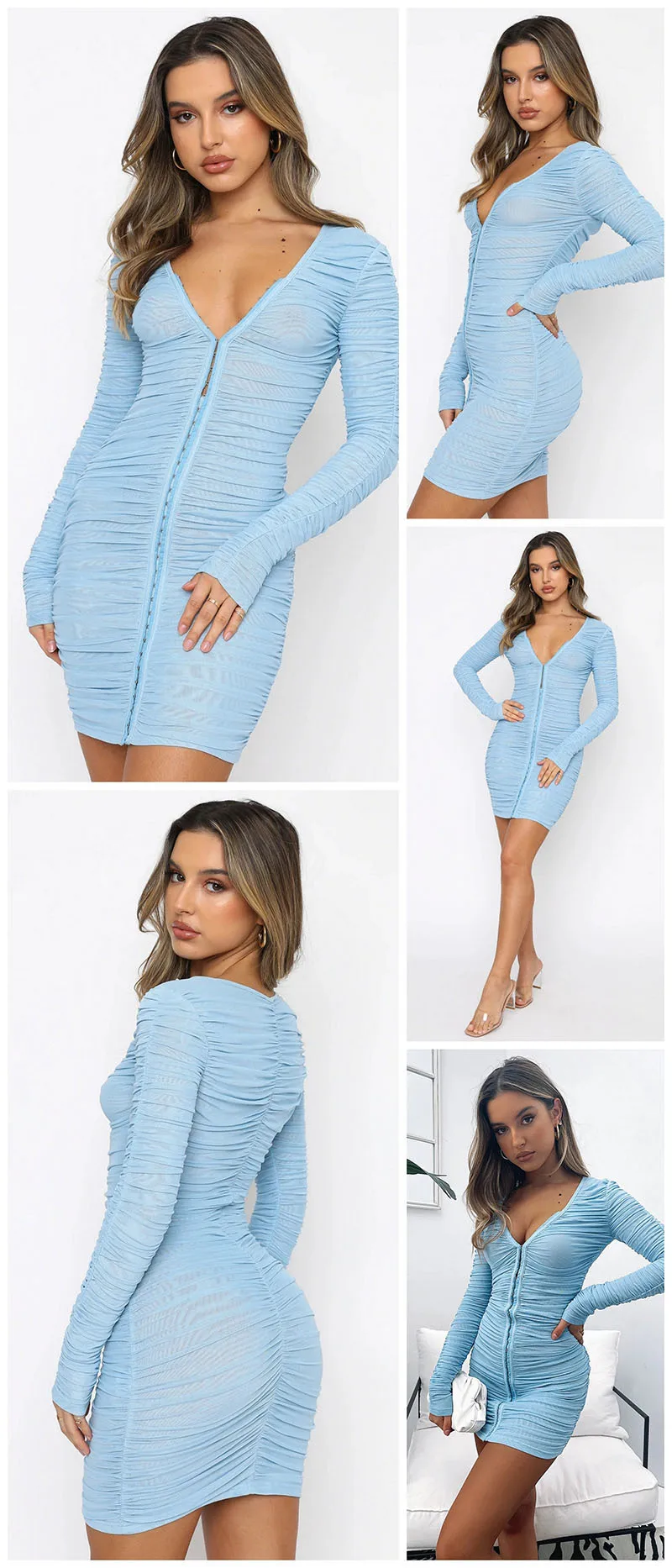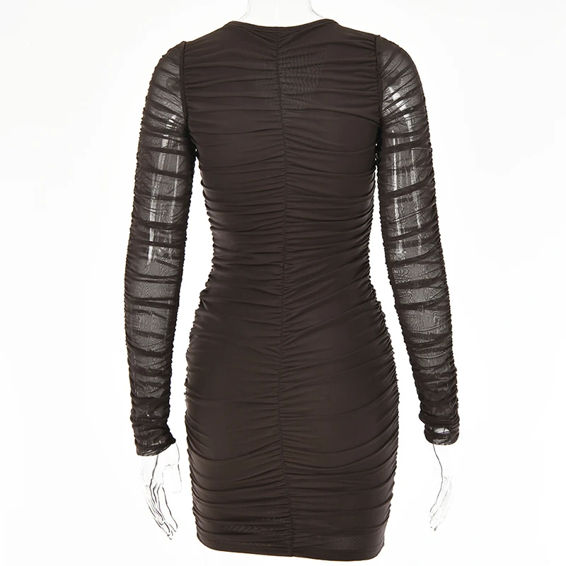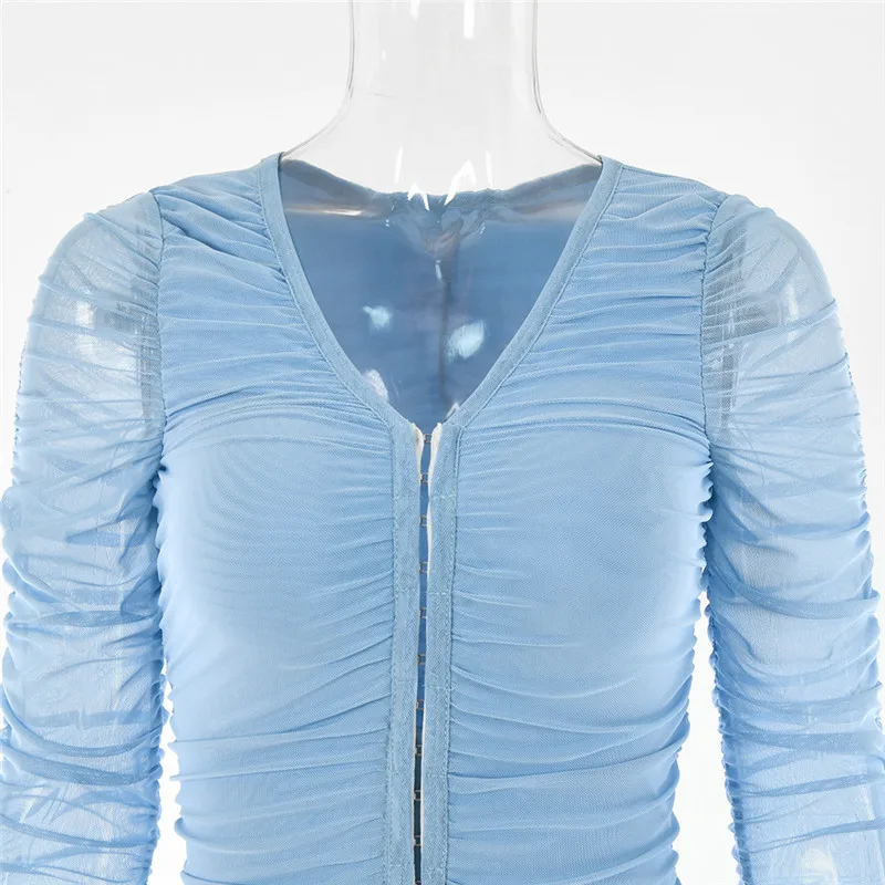 victoria’s vogue Mesh Double Layer Bodycon Mini Dress For Women Autumn V Neck Zipper Long Sleeve Skinny Draped Dress Vestidos Streetwear