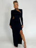 Victoria’s Vogue Mesh Patchwork Sexy Maxi Dress Women Hollow Out O Neck Long Sleeve Thigh High Split Bodycon Long Dress Femme Elegant
