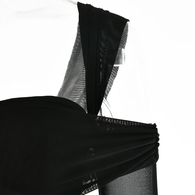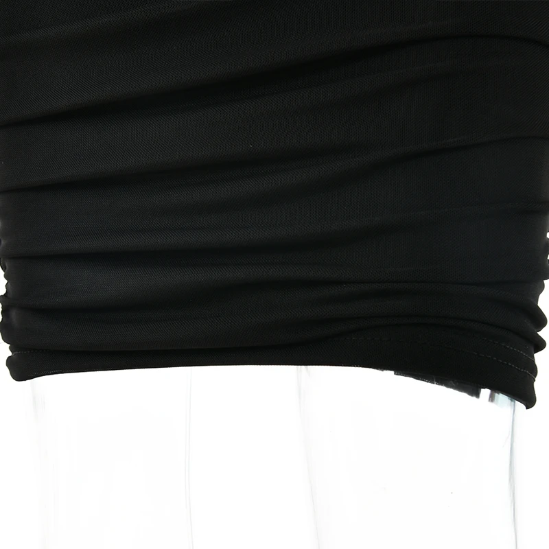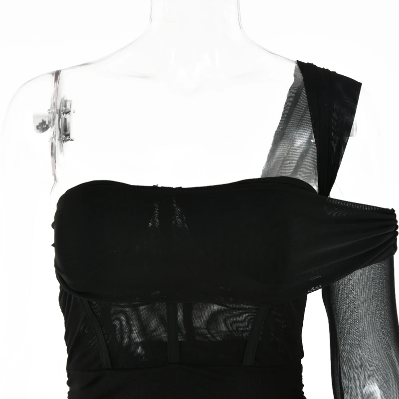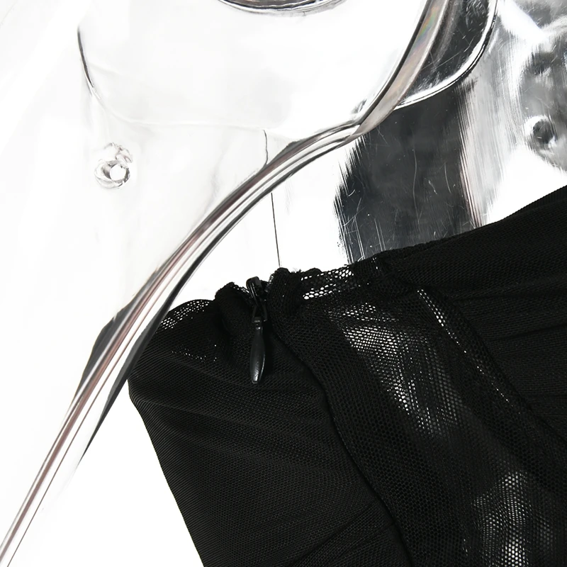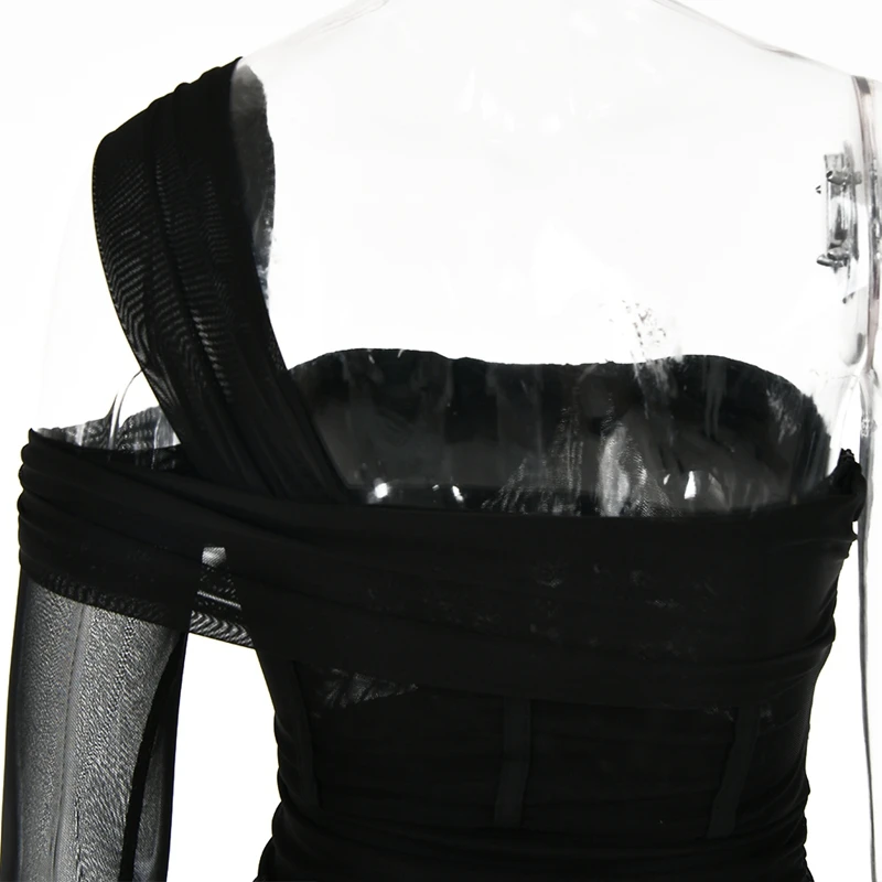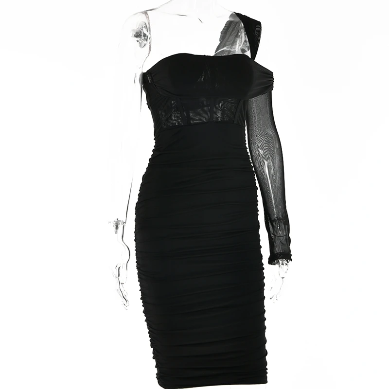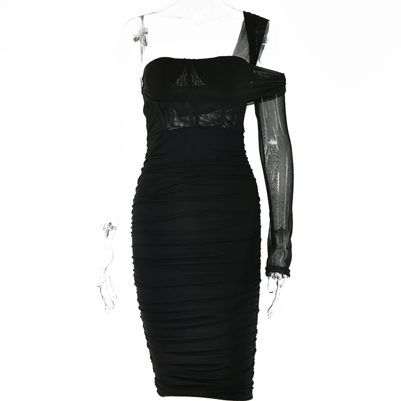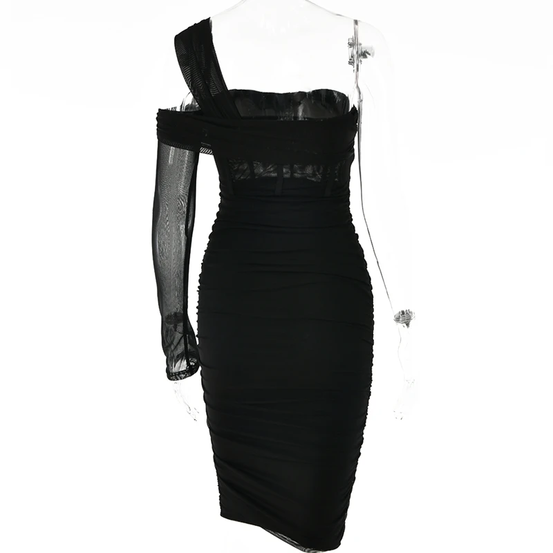 victoria’s vogue Mesh See Through Women Dresses Sexy Elegant Slim Bodycon Party Outfits One Shoulder Knee Length Pleated Evening Dress