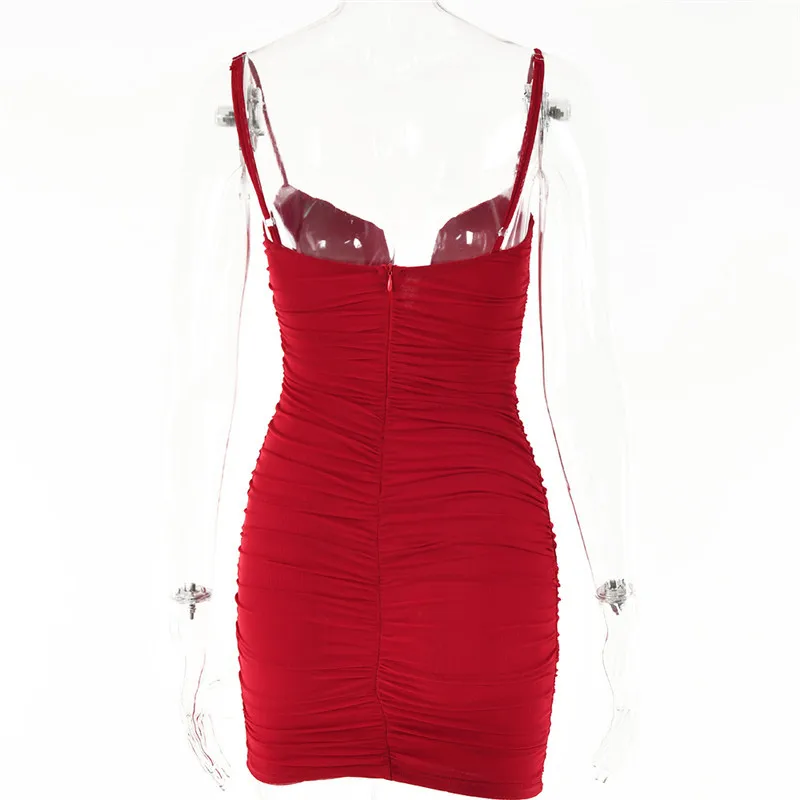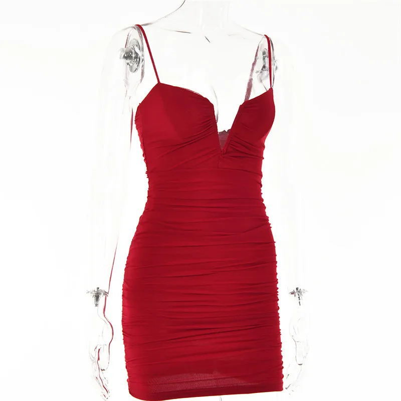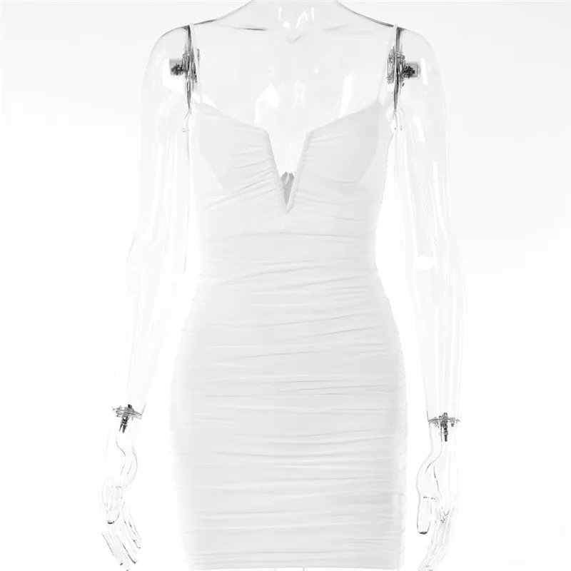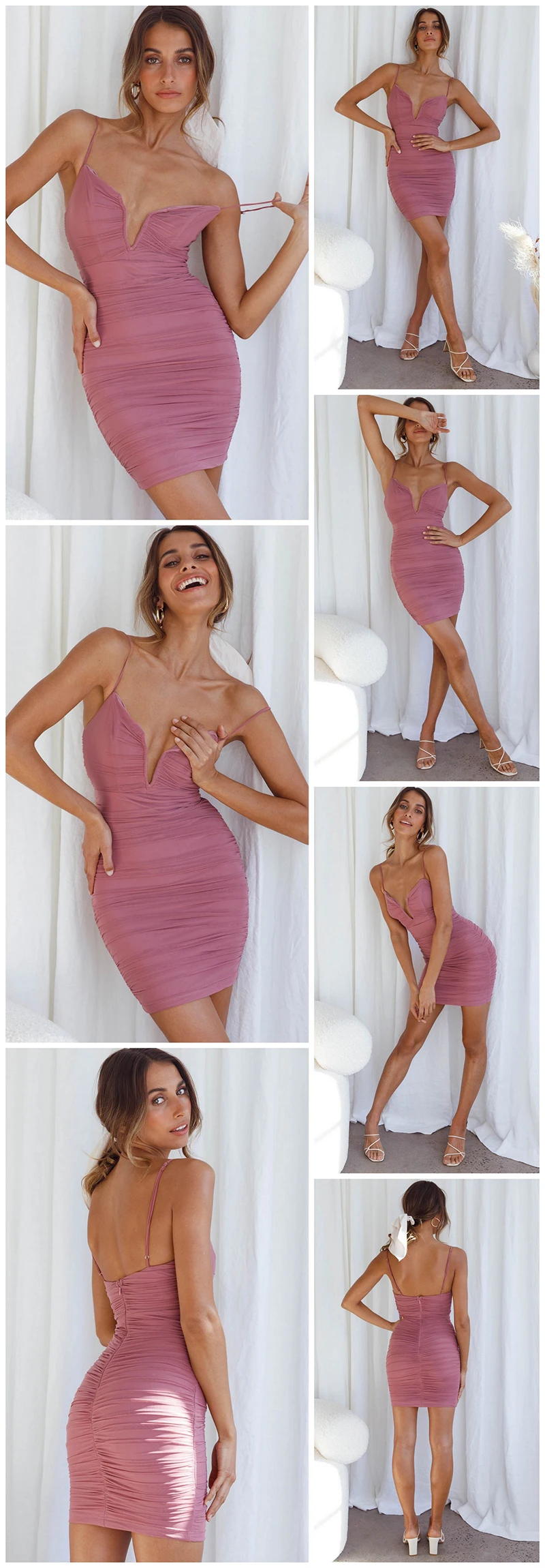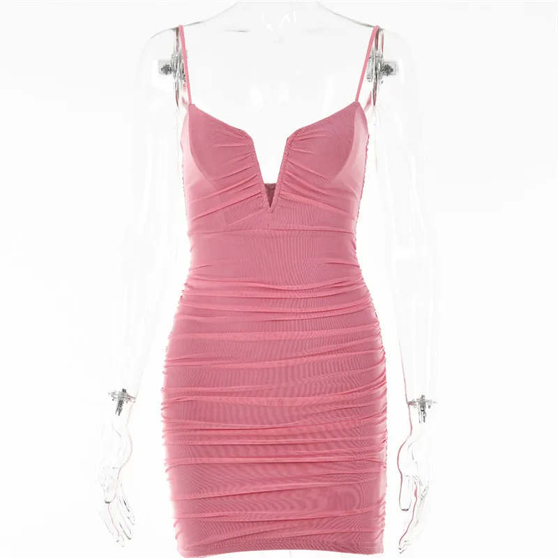 victoria’s vogue Mesh Spaghetti Strap Mini Dress For Women Summer V Neck Zipper Sleeveless Backless Bodycon Elegant Club Party Dress