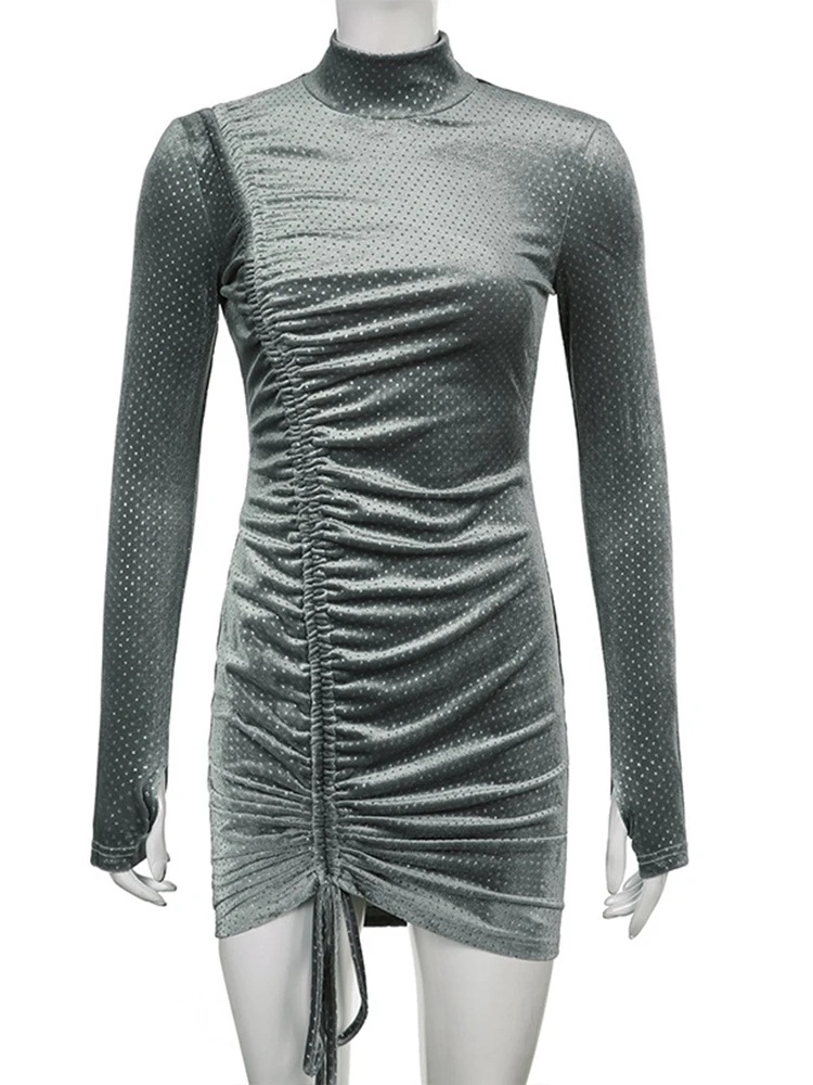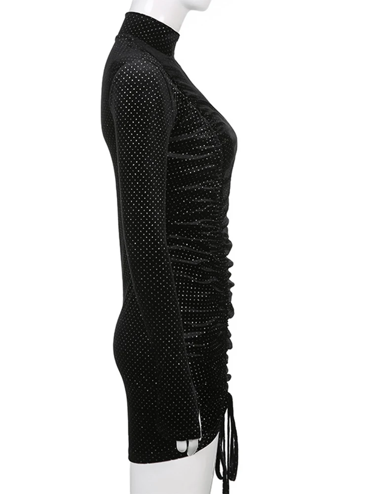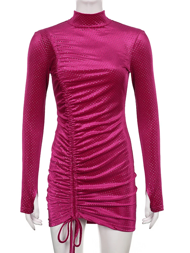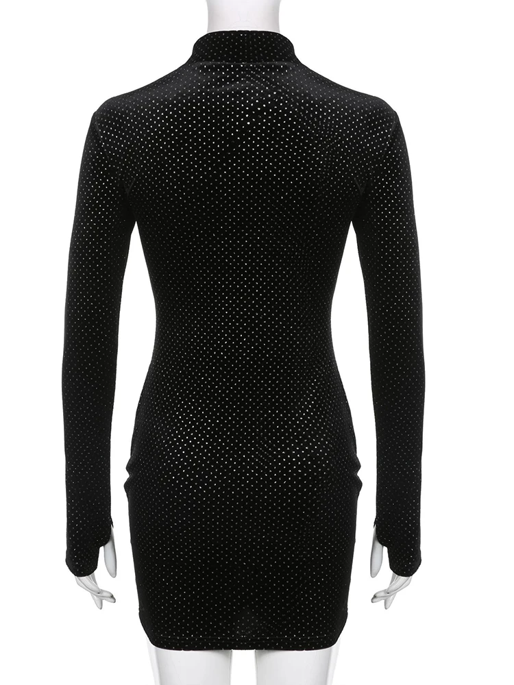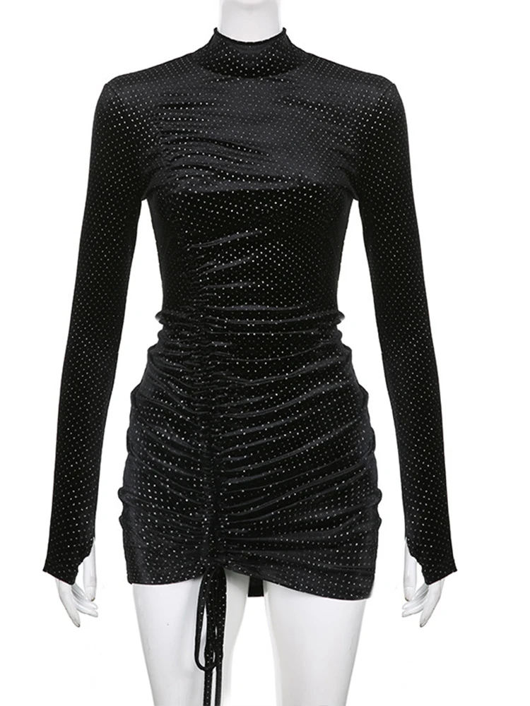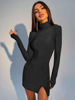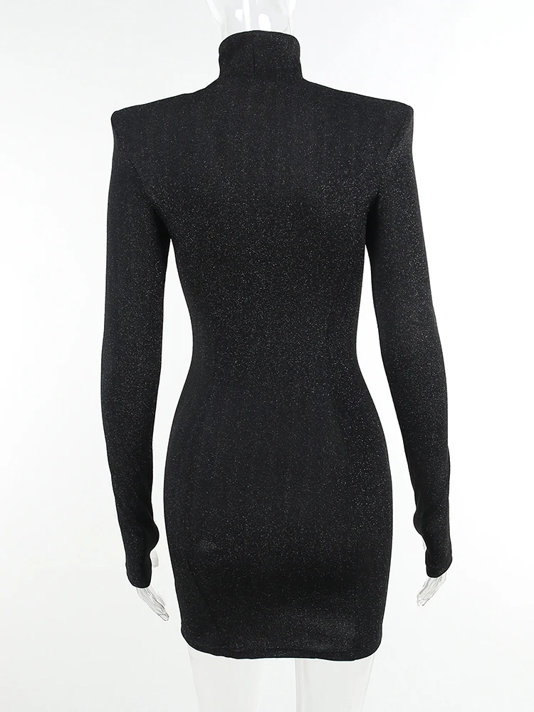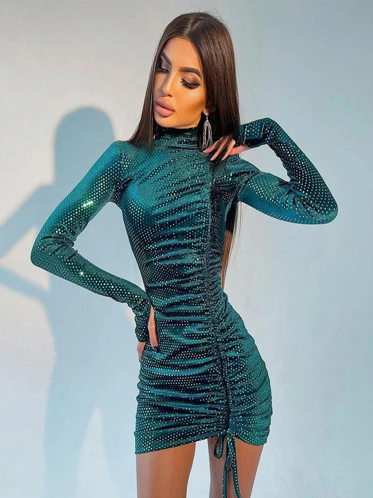 victoria’s vogue Mini Dress Women Fashion Turtleneck Sequin Casual Sexy Side Split Long Sleeve Bodycon Streetwear Party Elegant Dresses