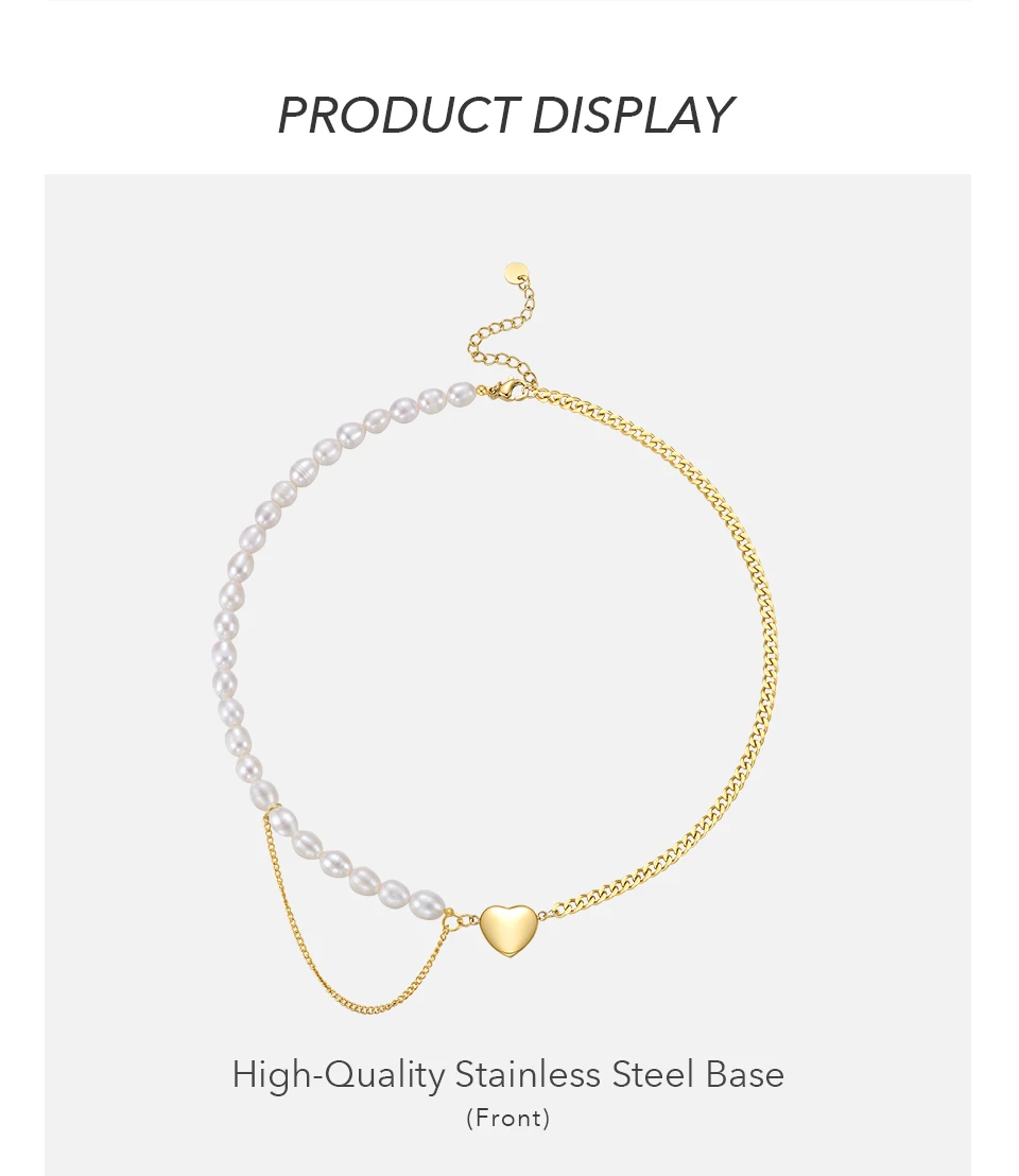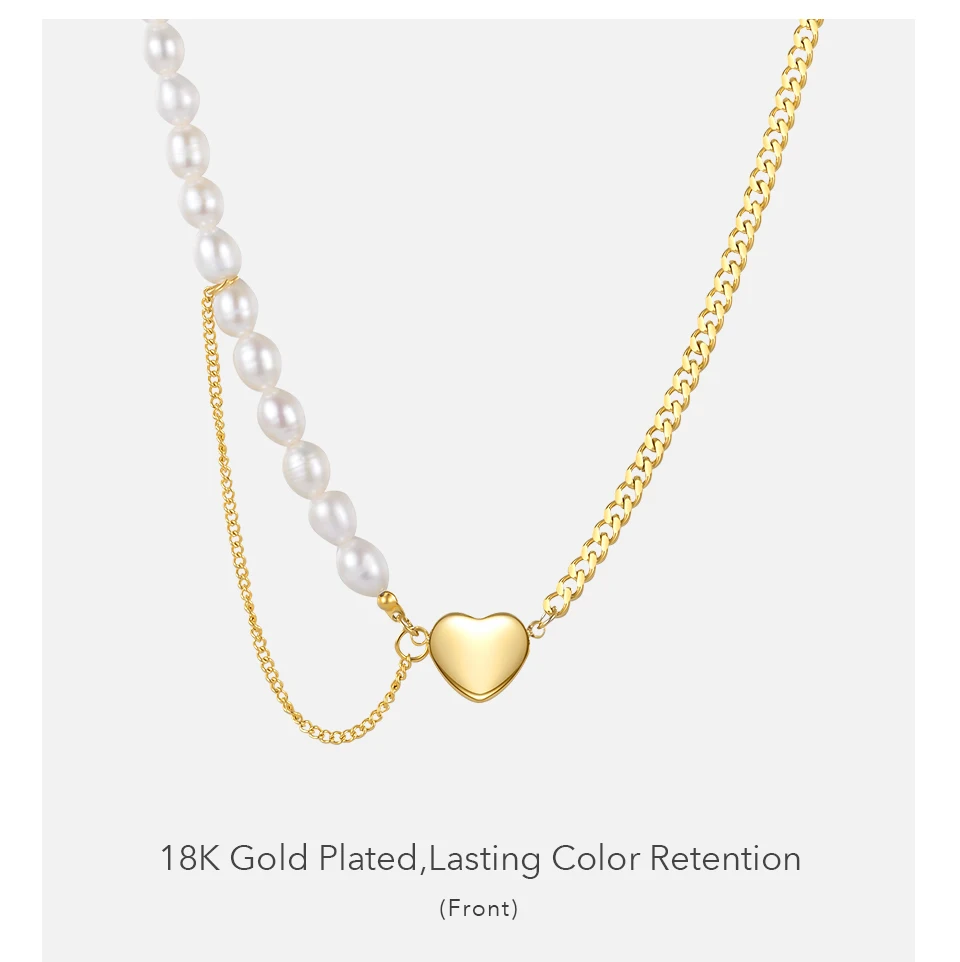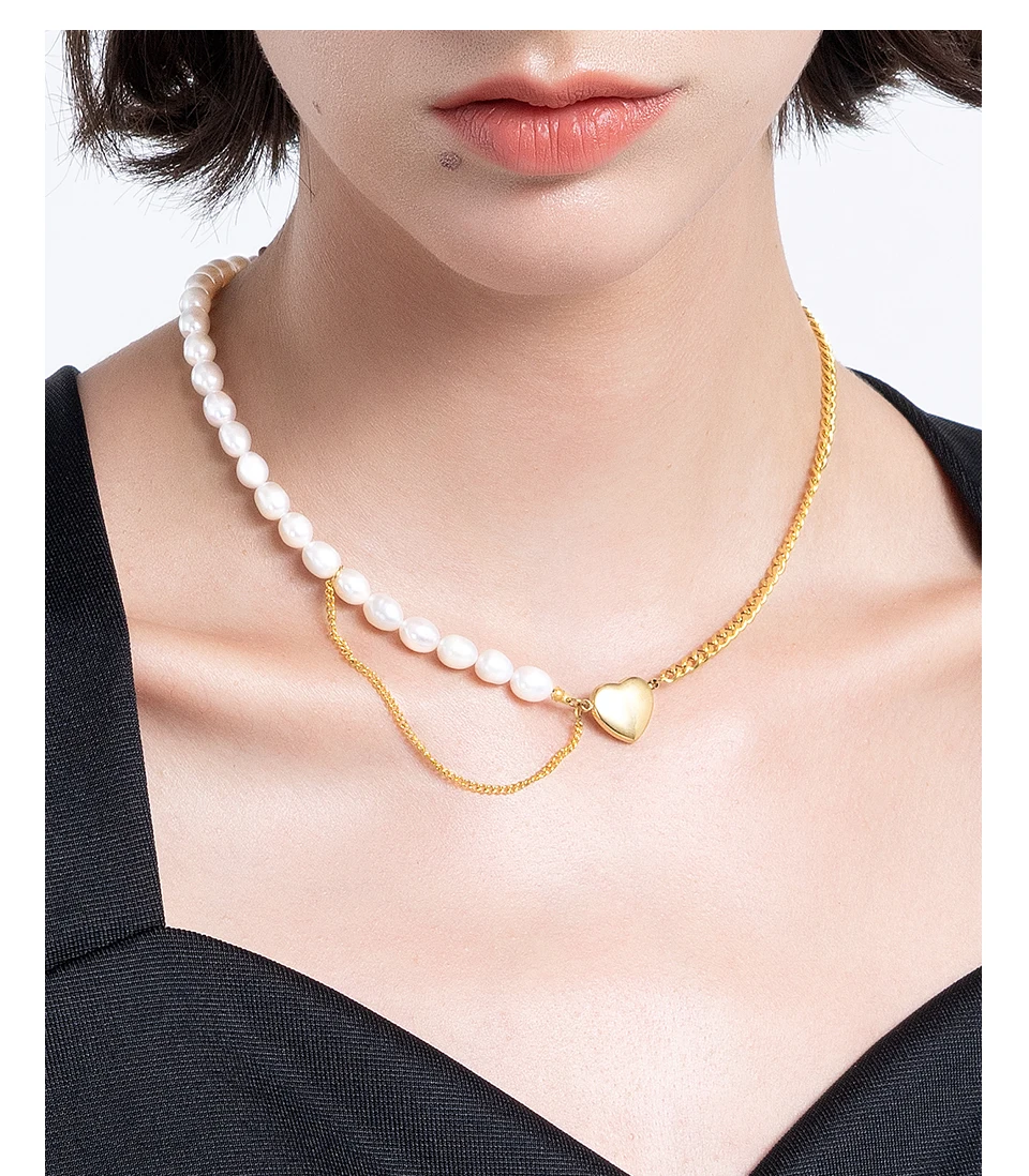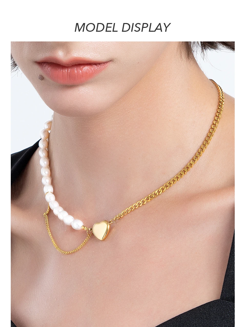 victoria’s vogue Natural Pearl Heart Necklace For Women Fashion Jewelry Gold Color Necklaces Stainless Steel Collier Wedding